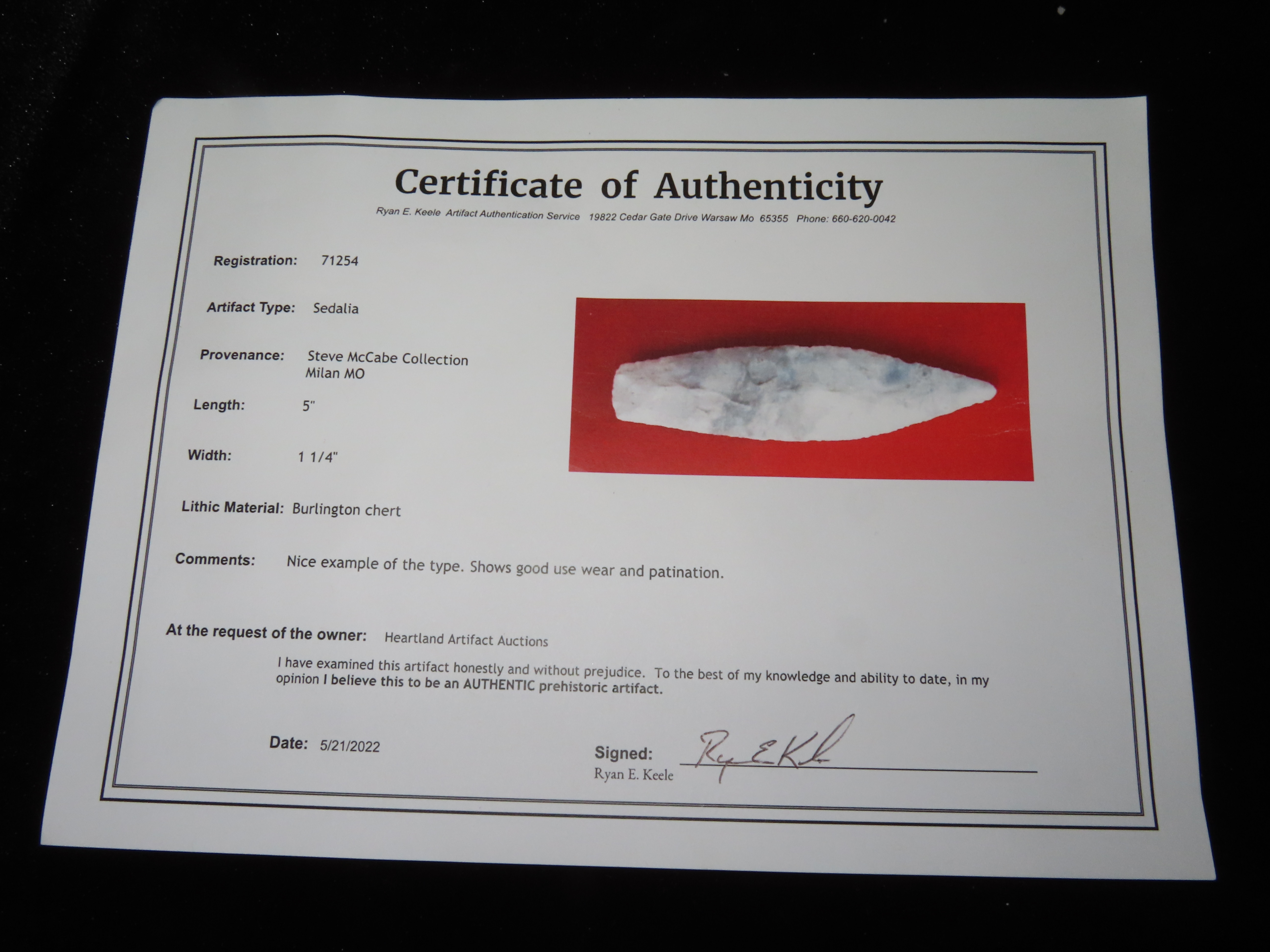 5″ Sedalia, Keele COA, Milan Co. MO, Ex Steve McCabe