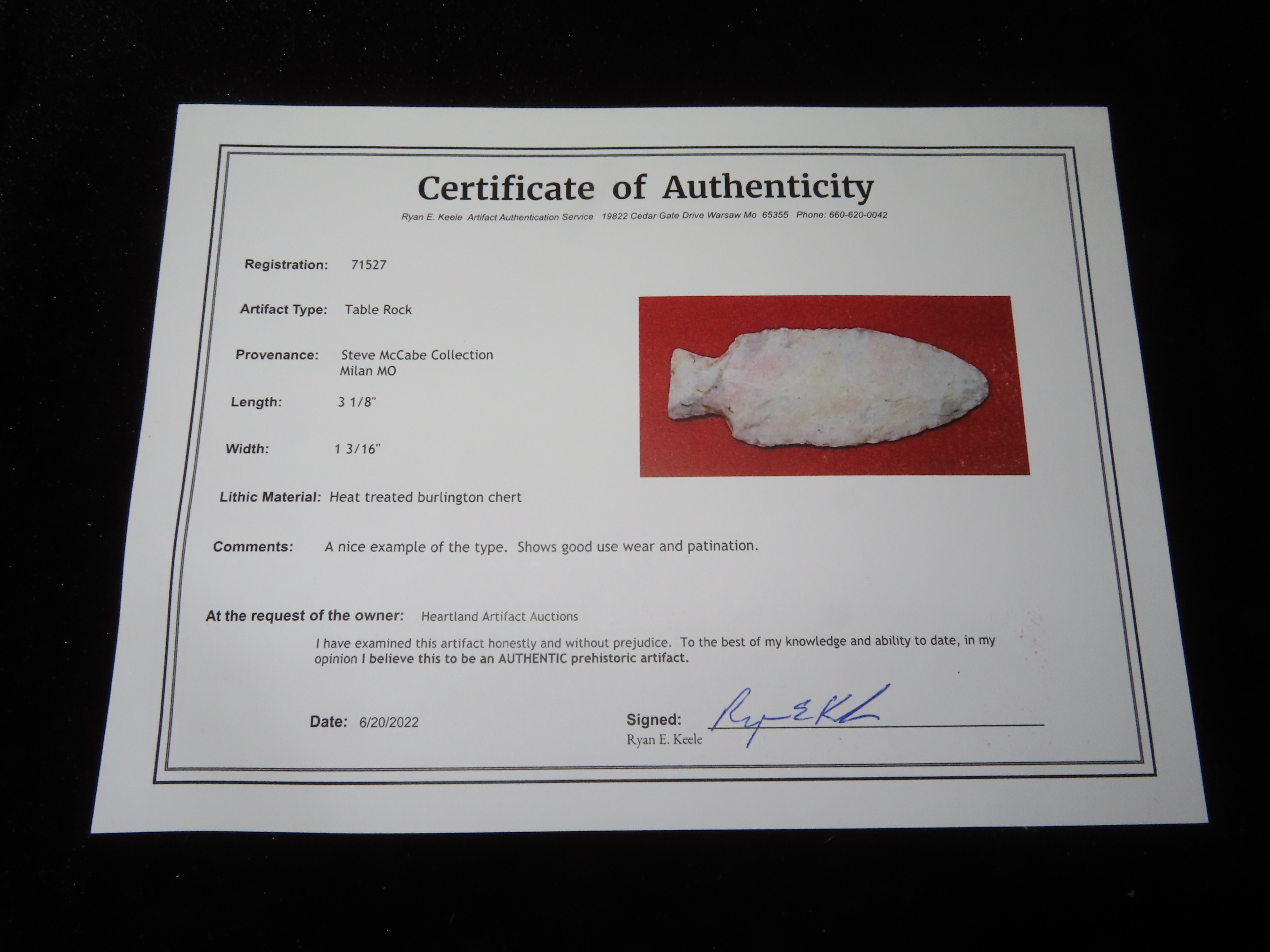 3 1/8″ Table Rock, Keele COA, Milan Co. MO, Ex Steve McCabe