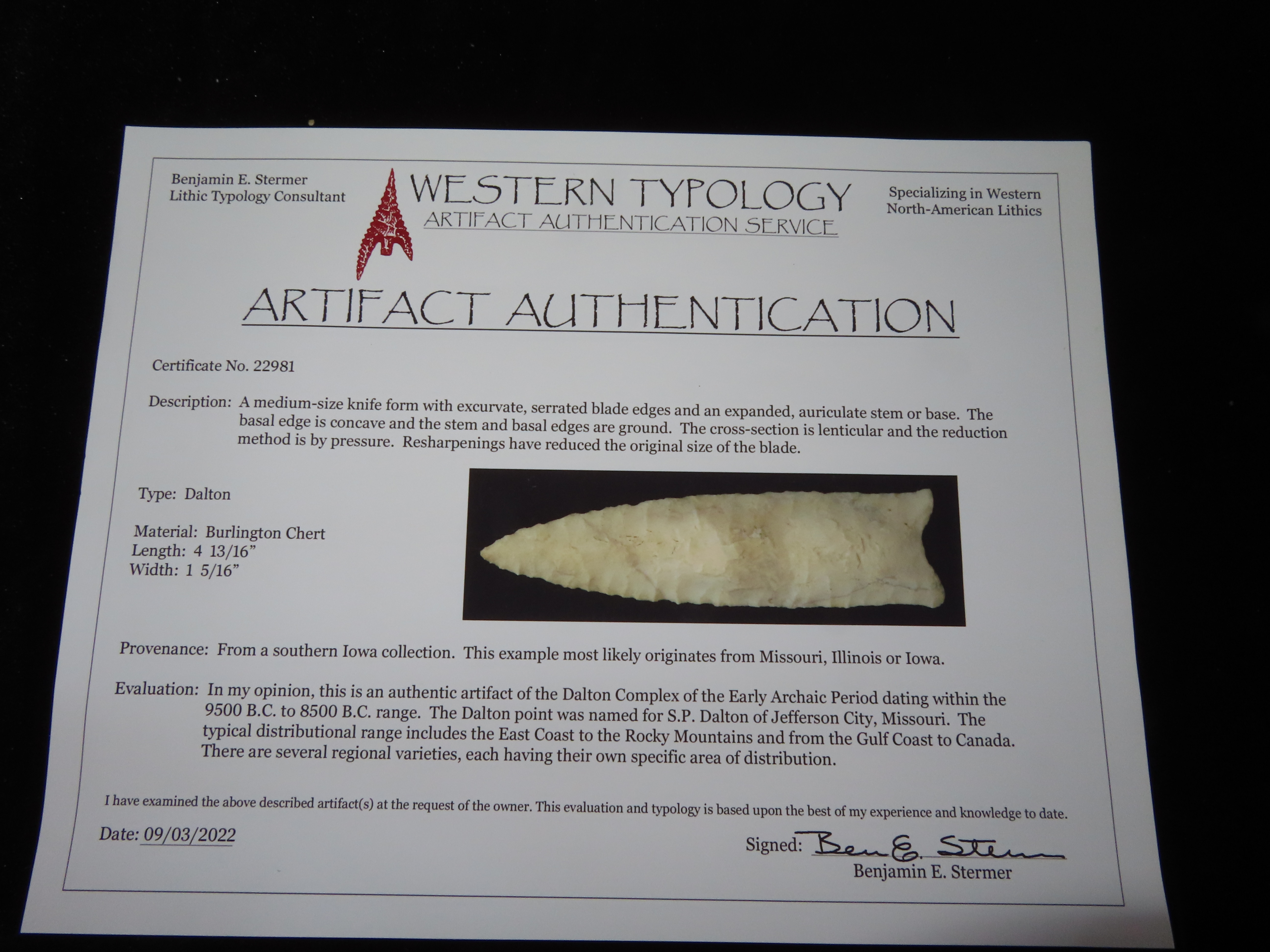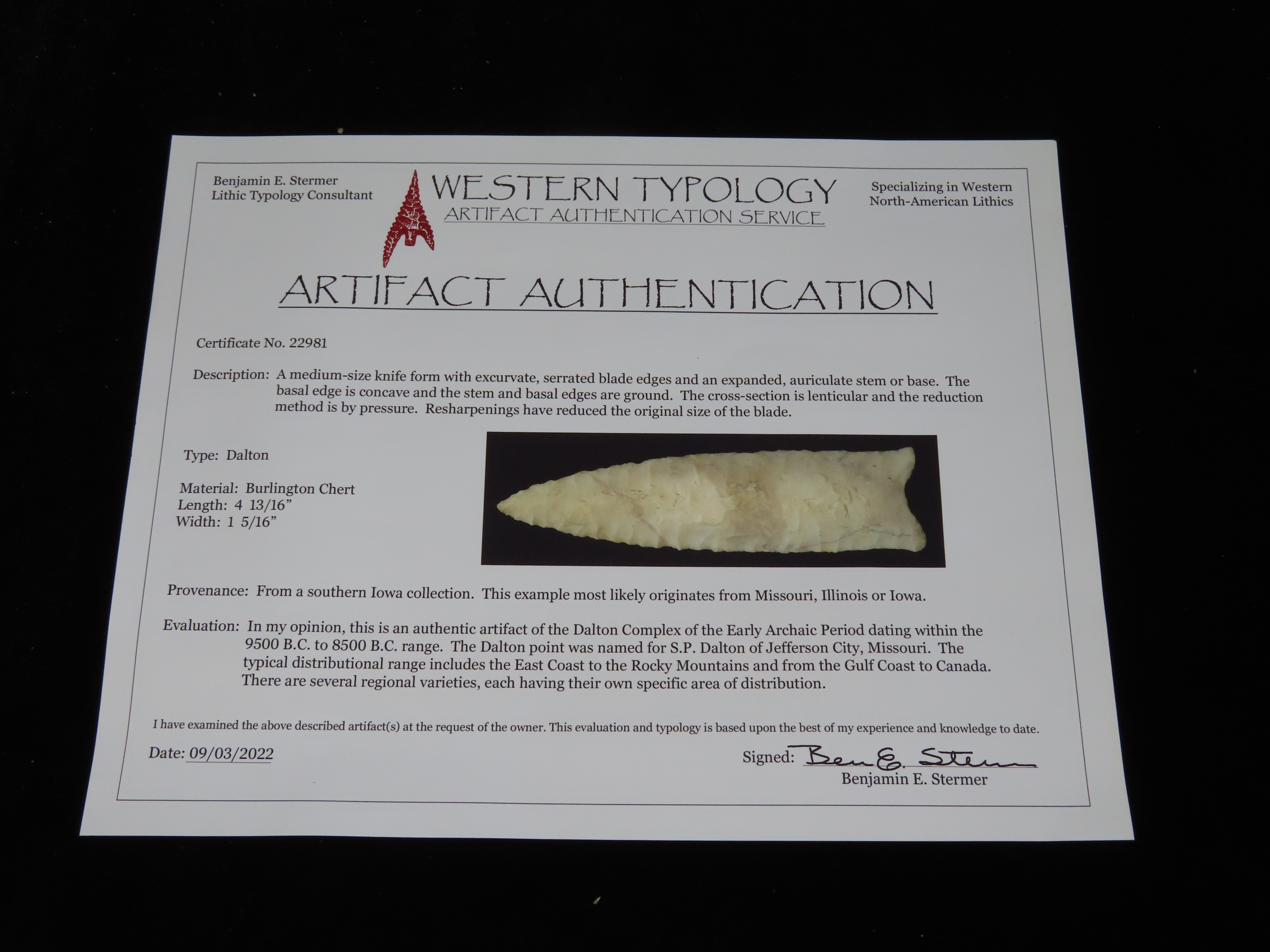4 13/16″ Dalton, Stermer COA, South IA