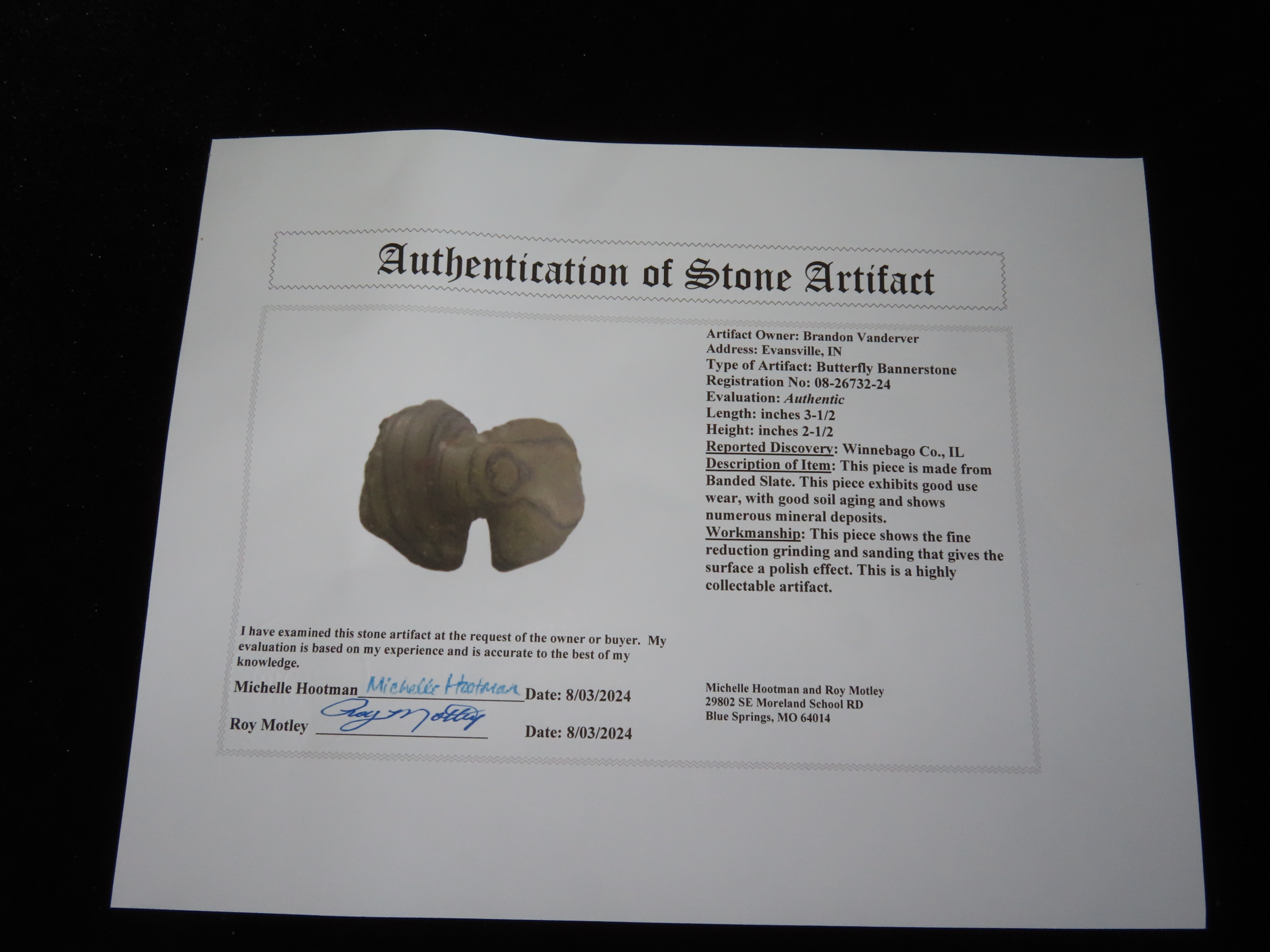 3 1/2" Butterfly Bannerstone, Motley COA, IN
