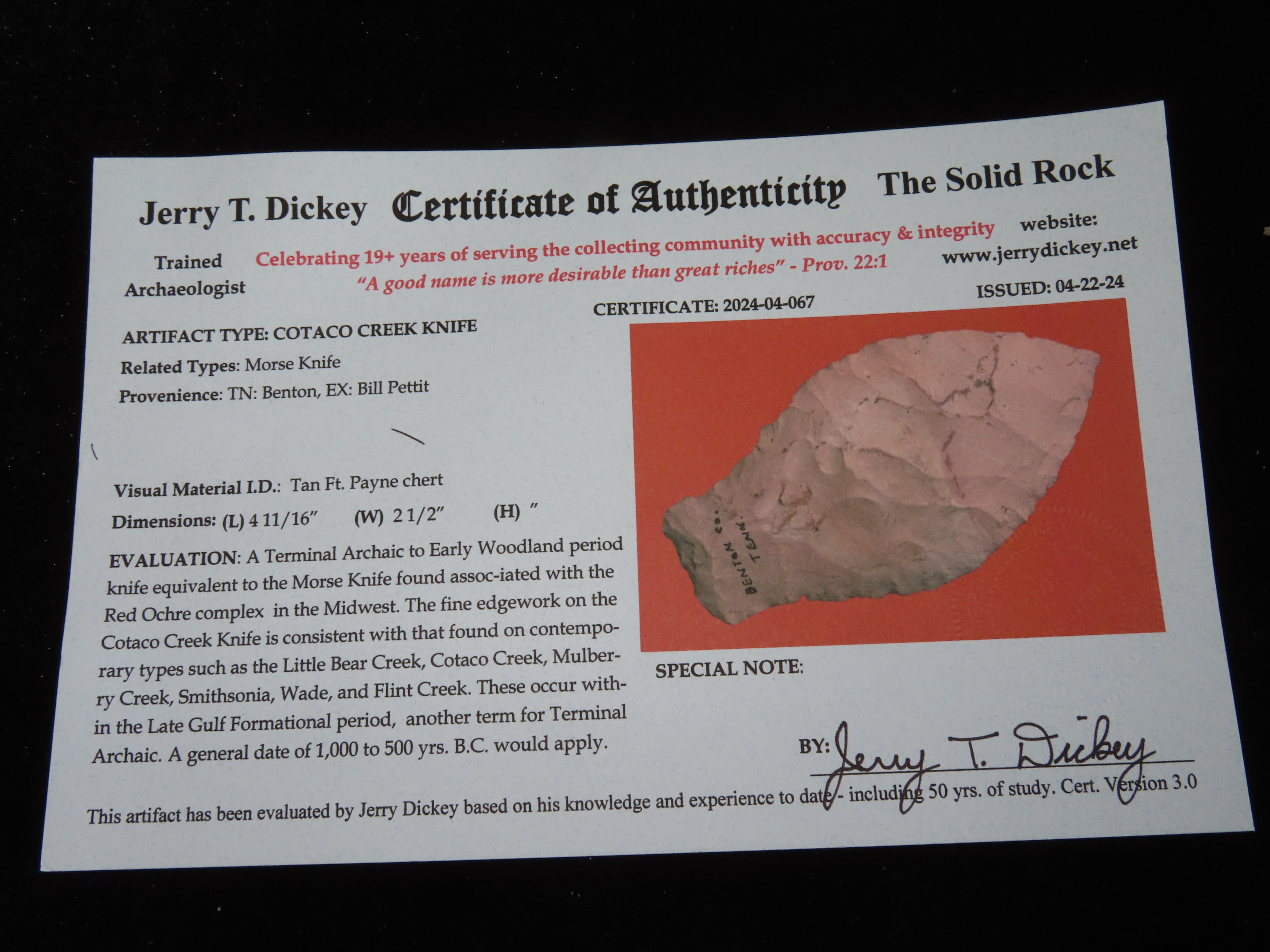 4 11/16″ Cotaco Creek Knife or Morse Knife, Dickey COA, Benton TN