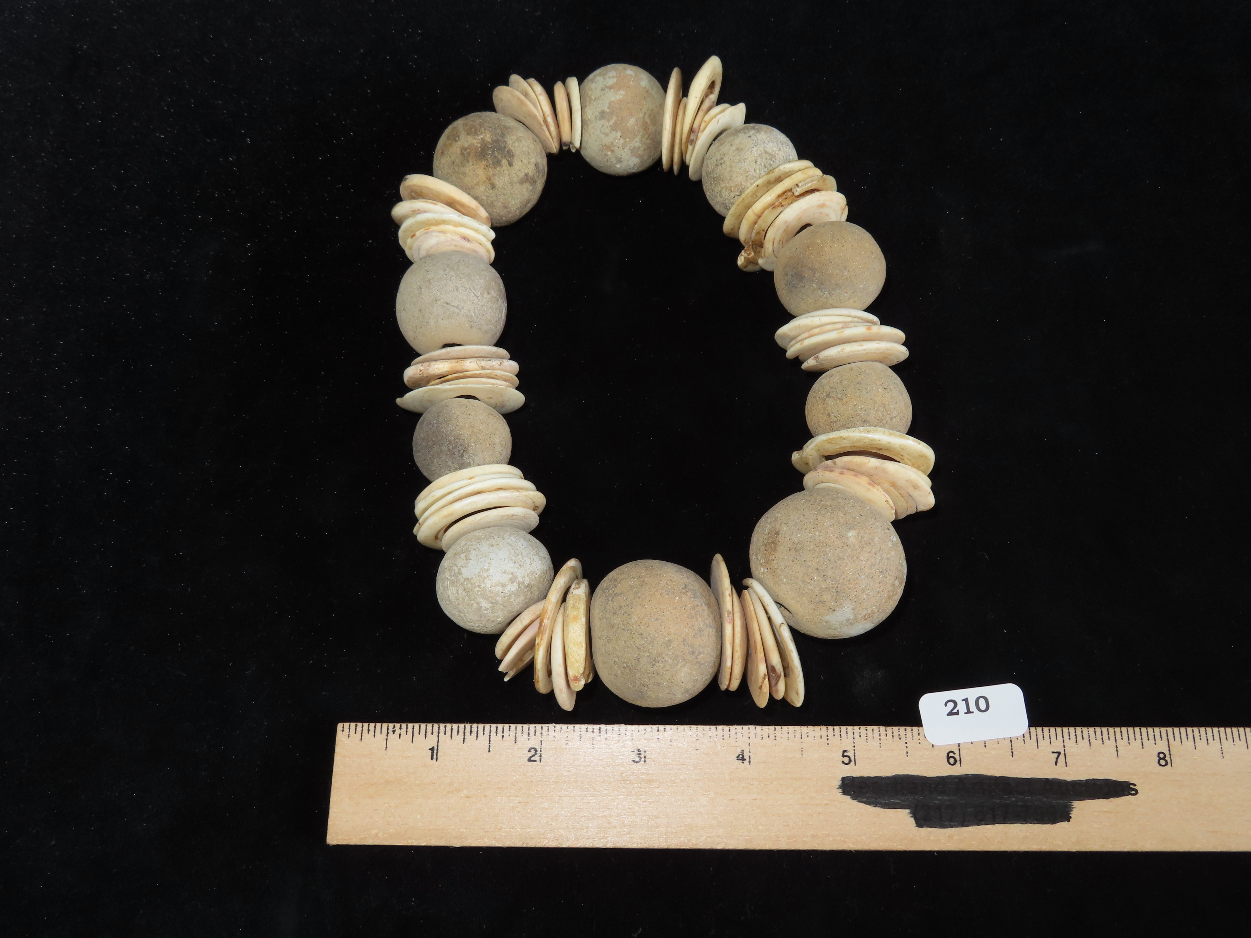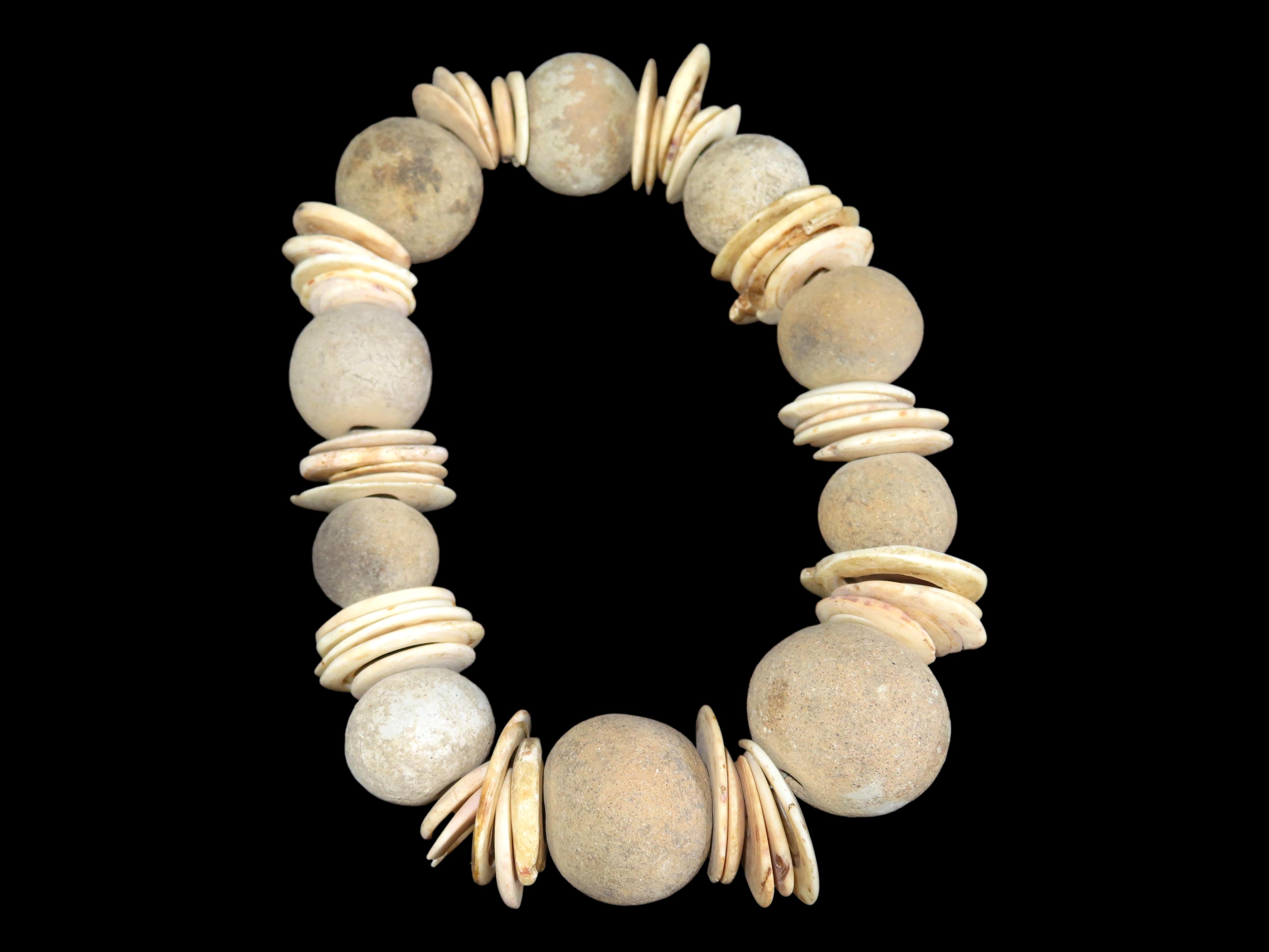 16″ Strand of Pre Columbian Pottery Schell Beads Necklace, Guatemala