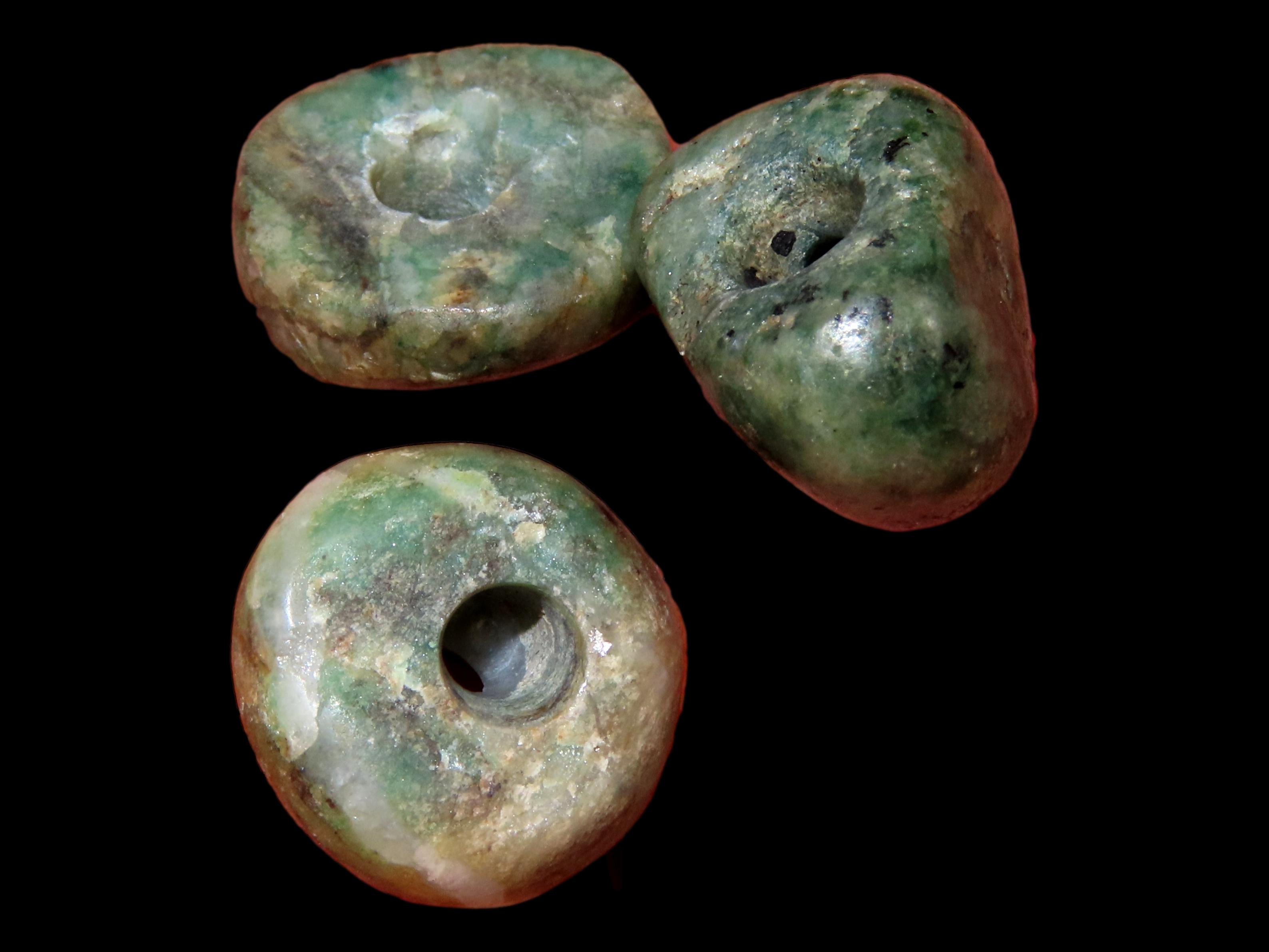 Lot of 3 Pre-Columbian Jade Beads, Guatemala
