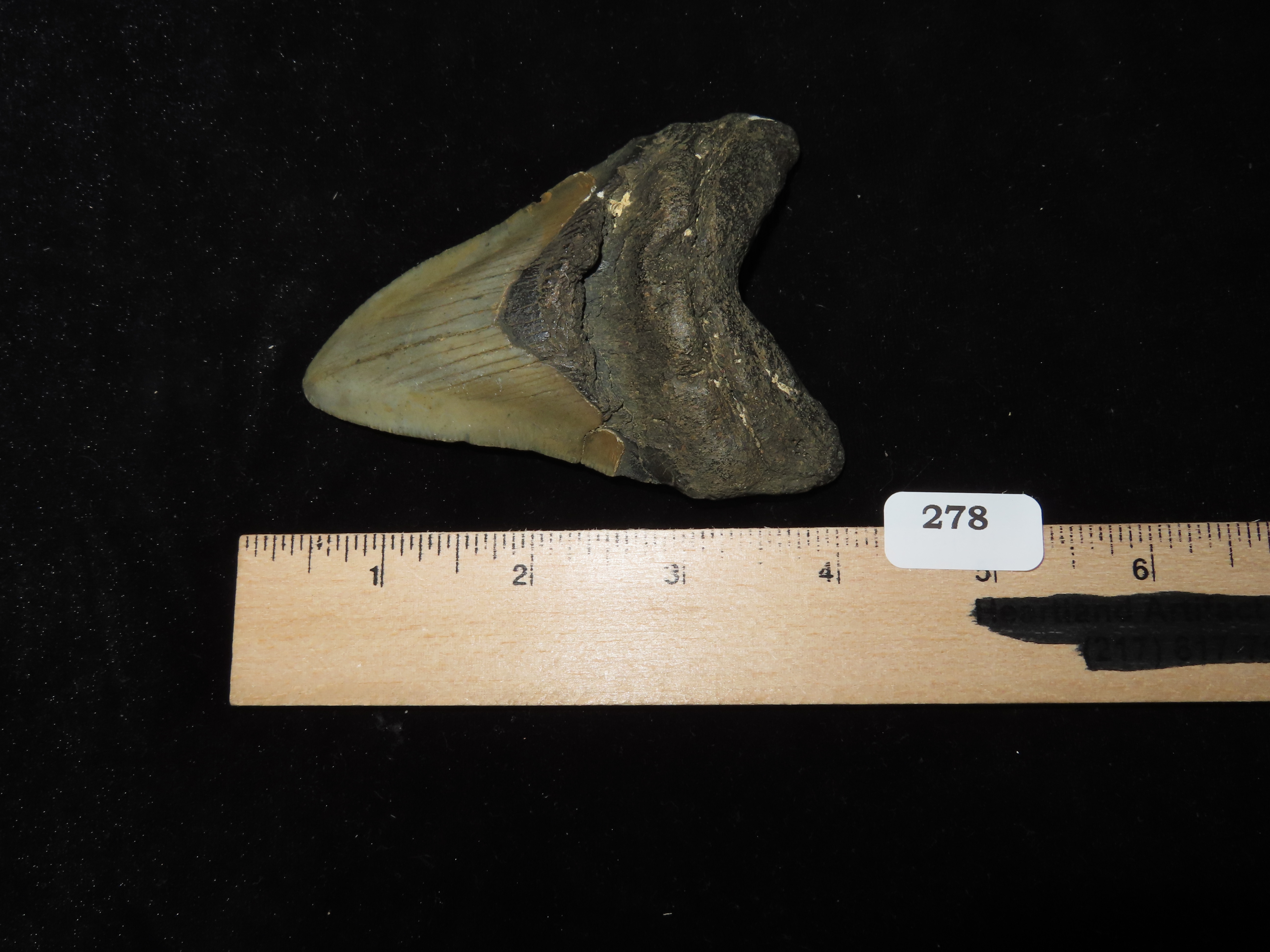 3 3/4″ Fossilized Megalodon Shark Tooth, SC