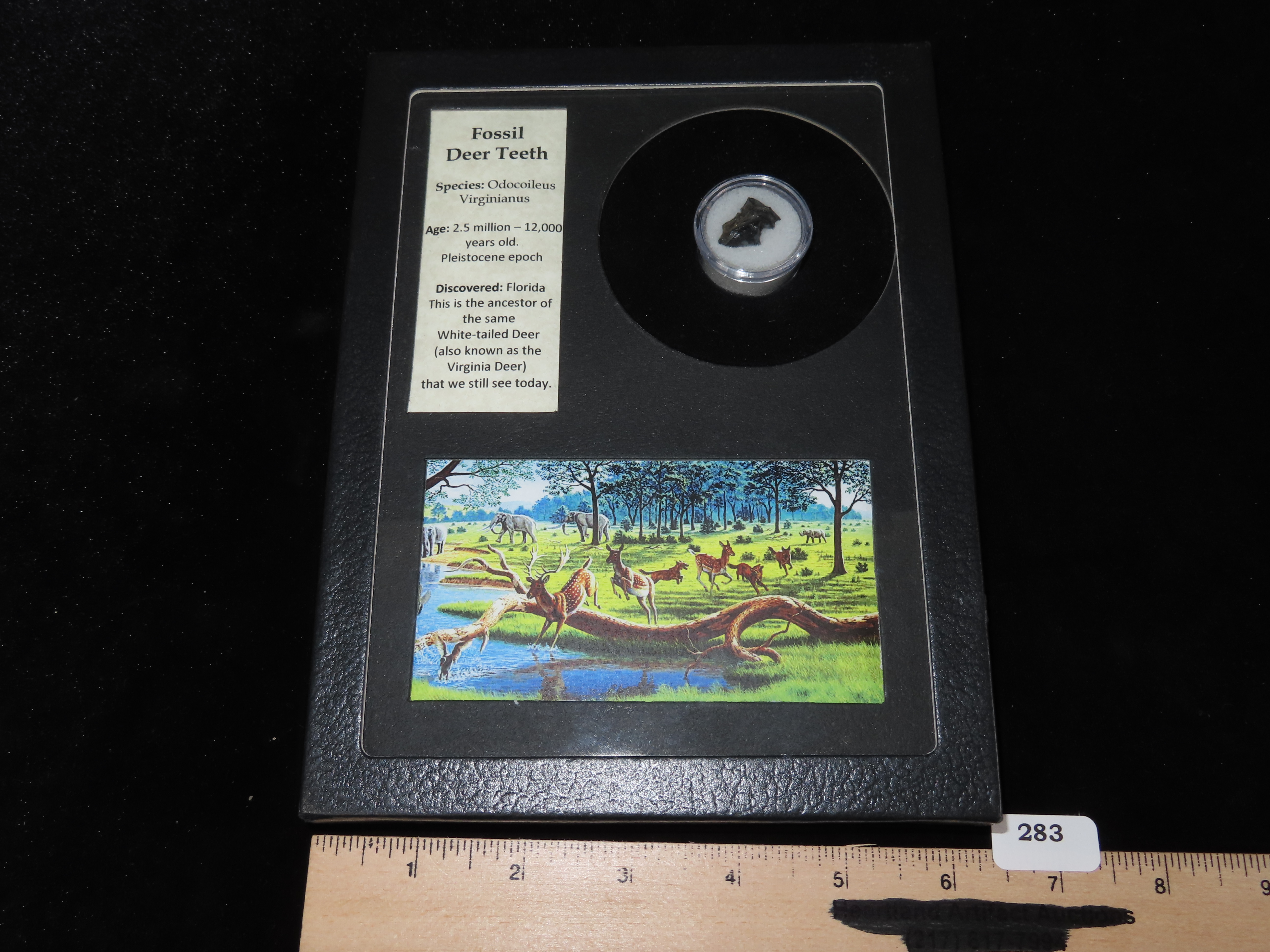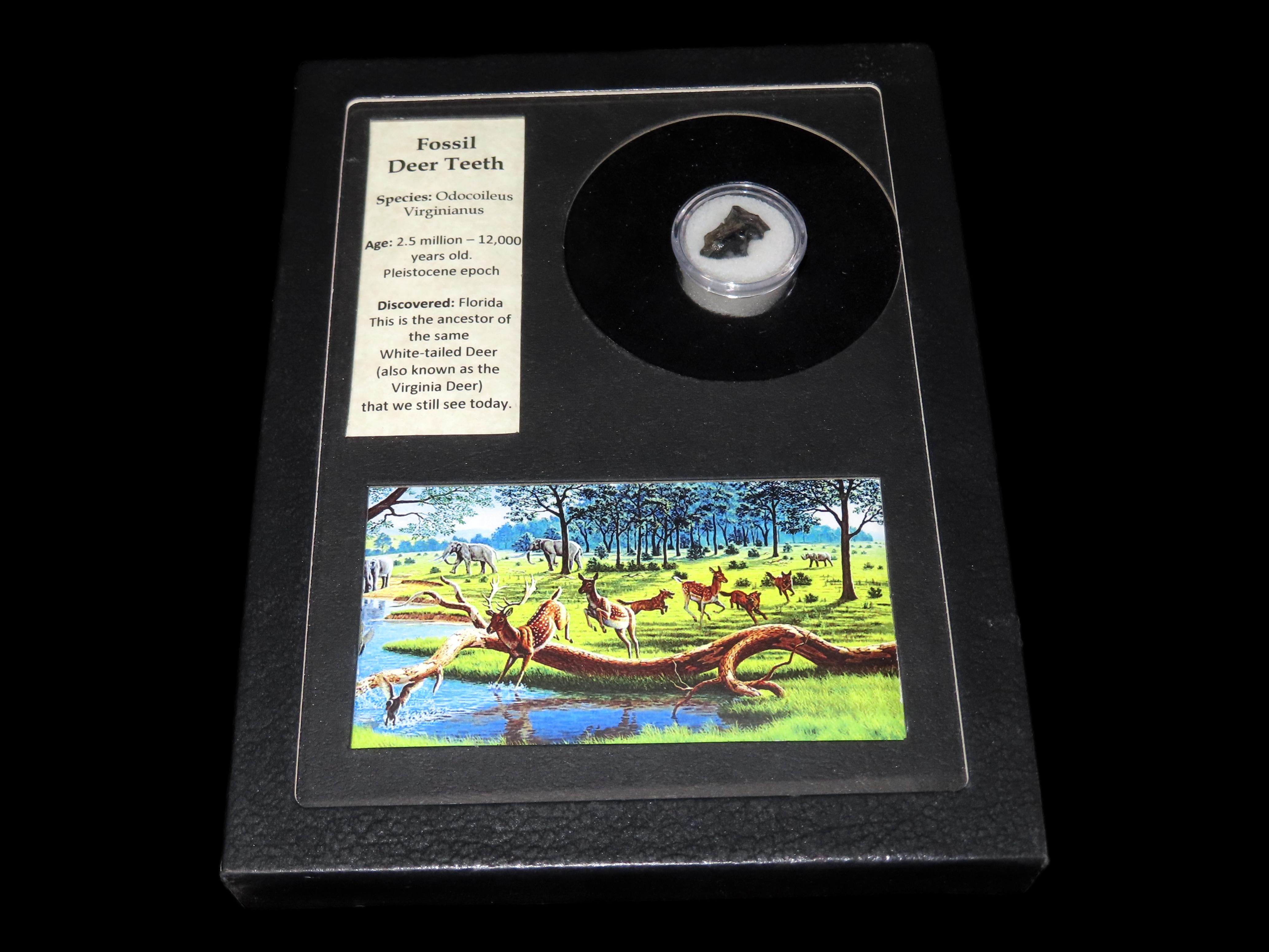 6 1/4″ x 8 1/4″ Framed Fossilized 2.5 million Years old Deer Tooth