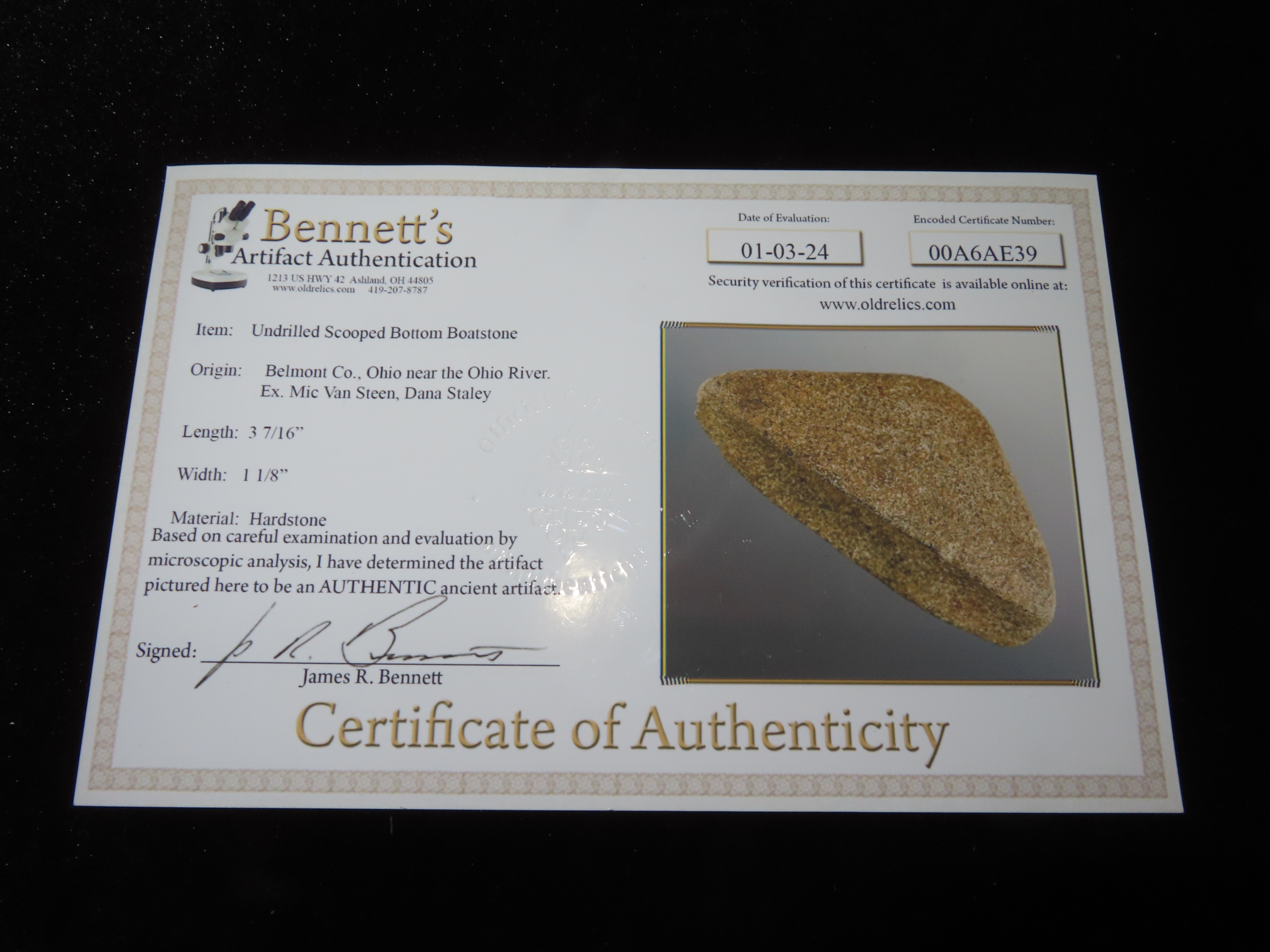 3 7/16″ Undrilled Scooped Bottom Boatstone, Bennett COA, Belmont Co. OH