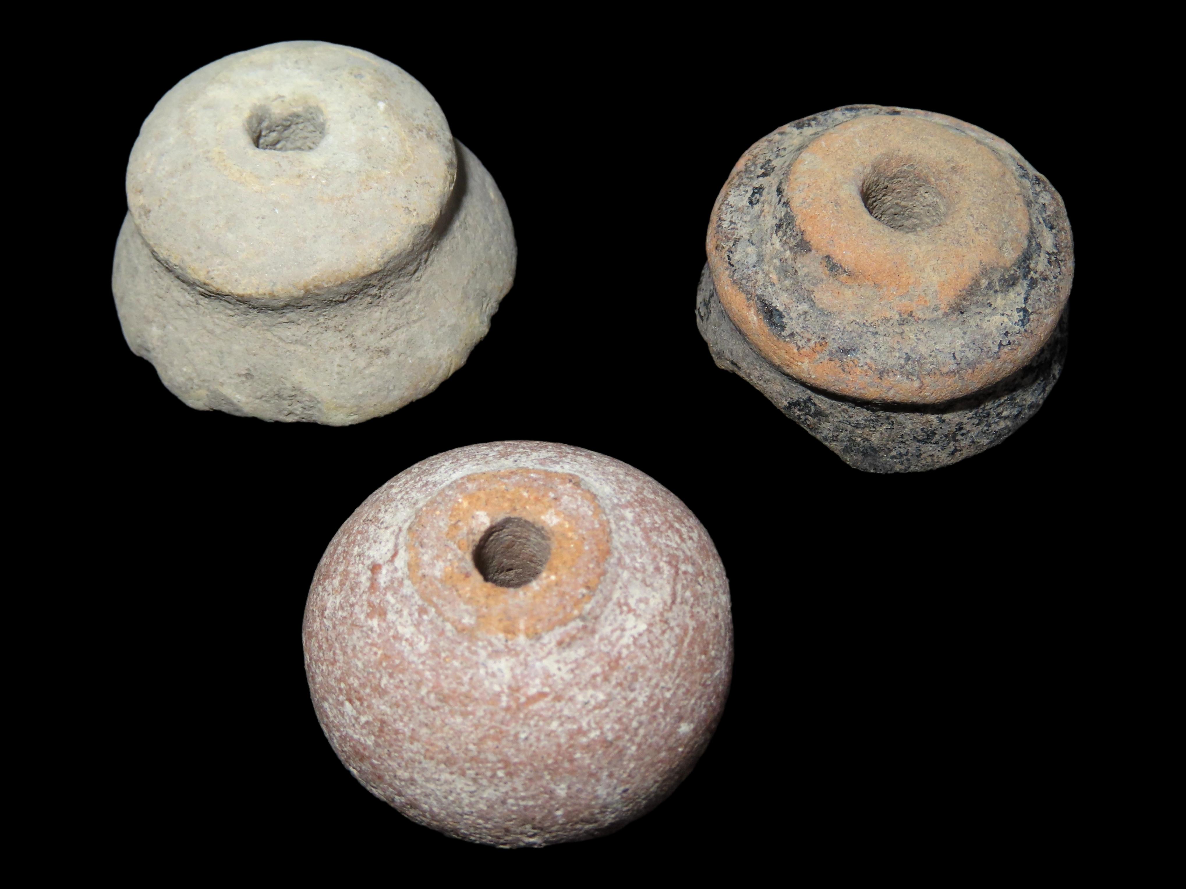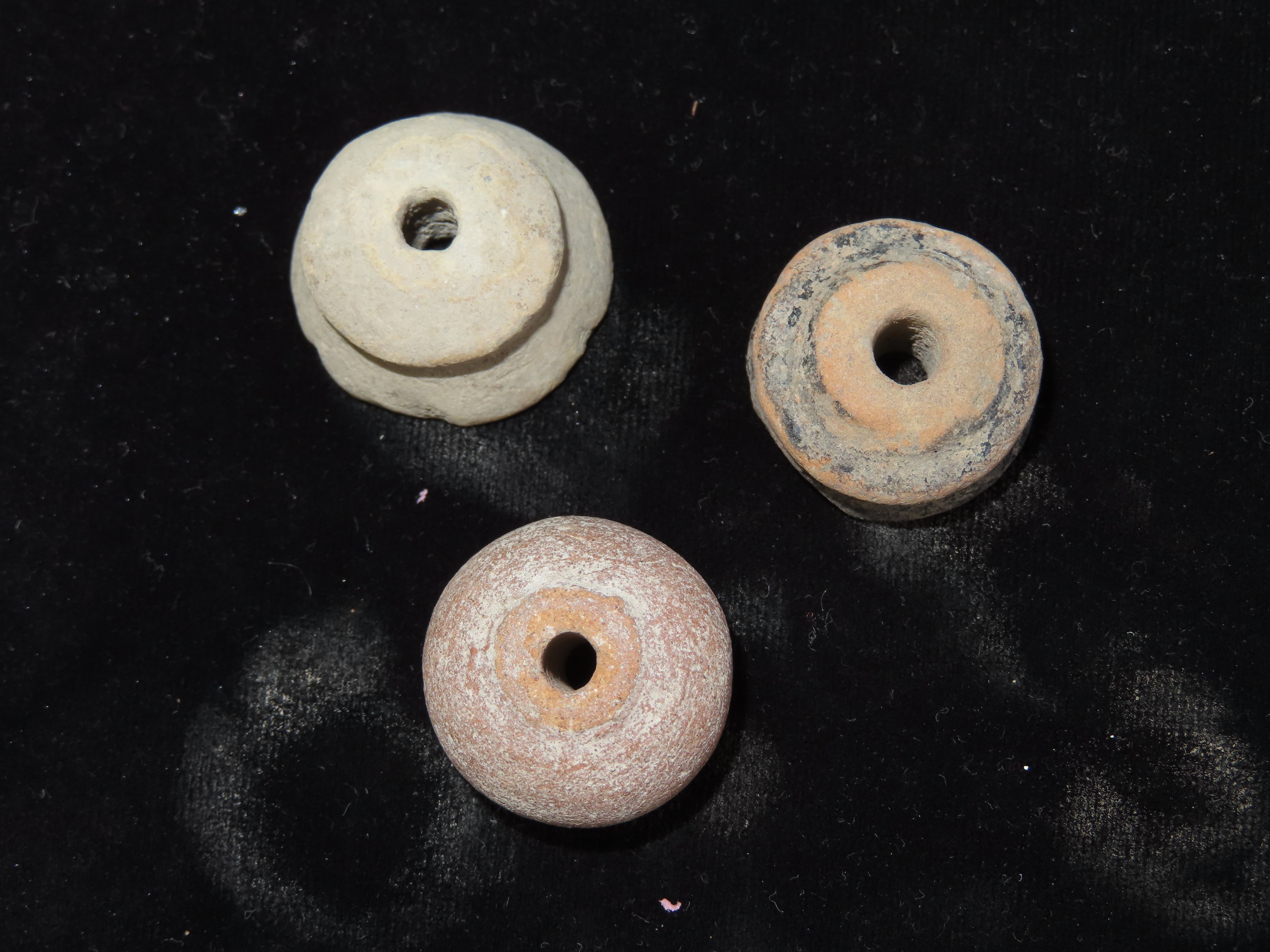 1 to 1 1/4″ Decorated Pre-Columbian Beads Effigy, Ecuador, Manabi Culture, 500-500 BC