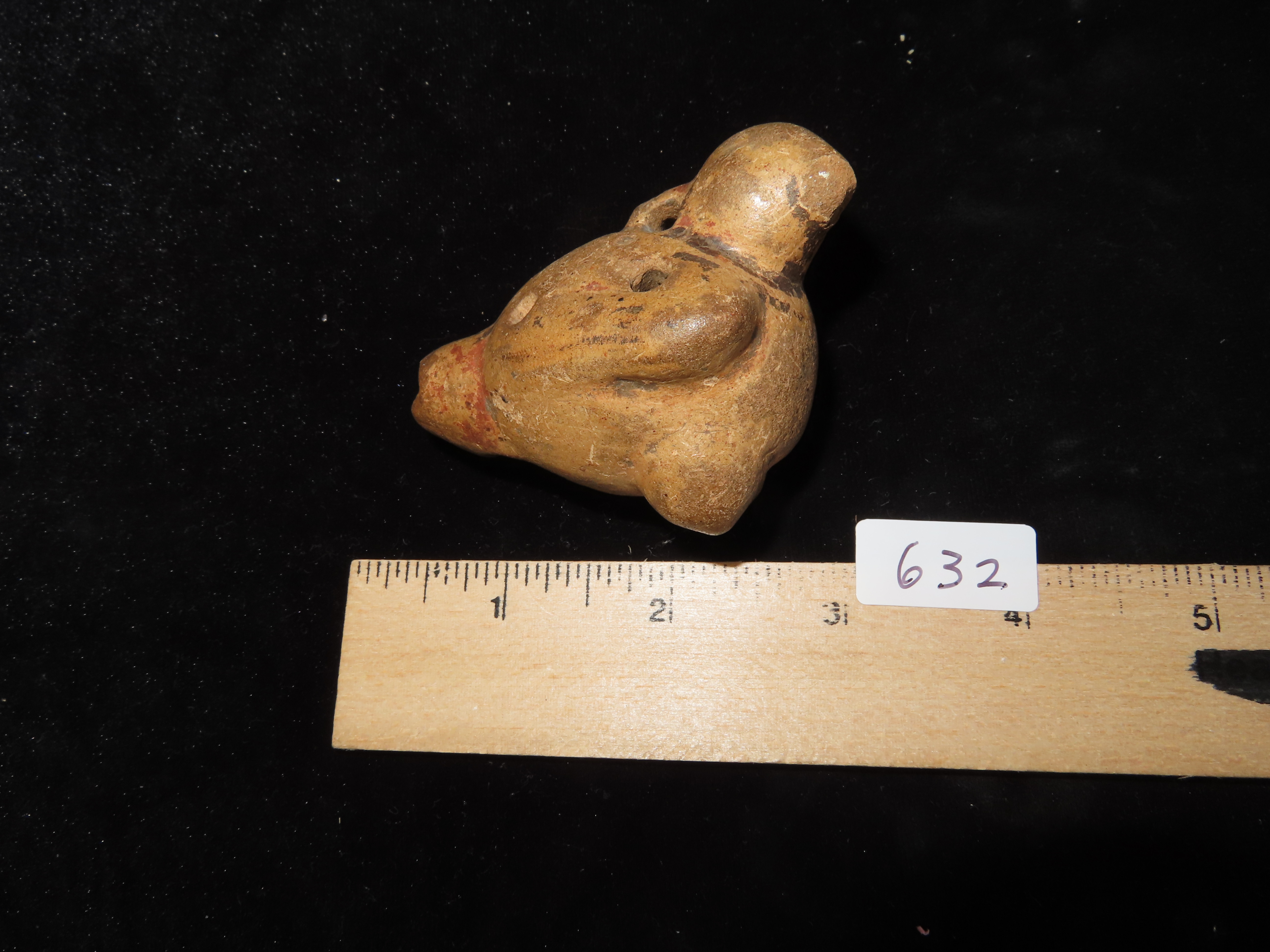 2 1/2″ Pre-Columbian Bird Whistle, Painted Mexico