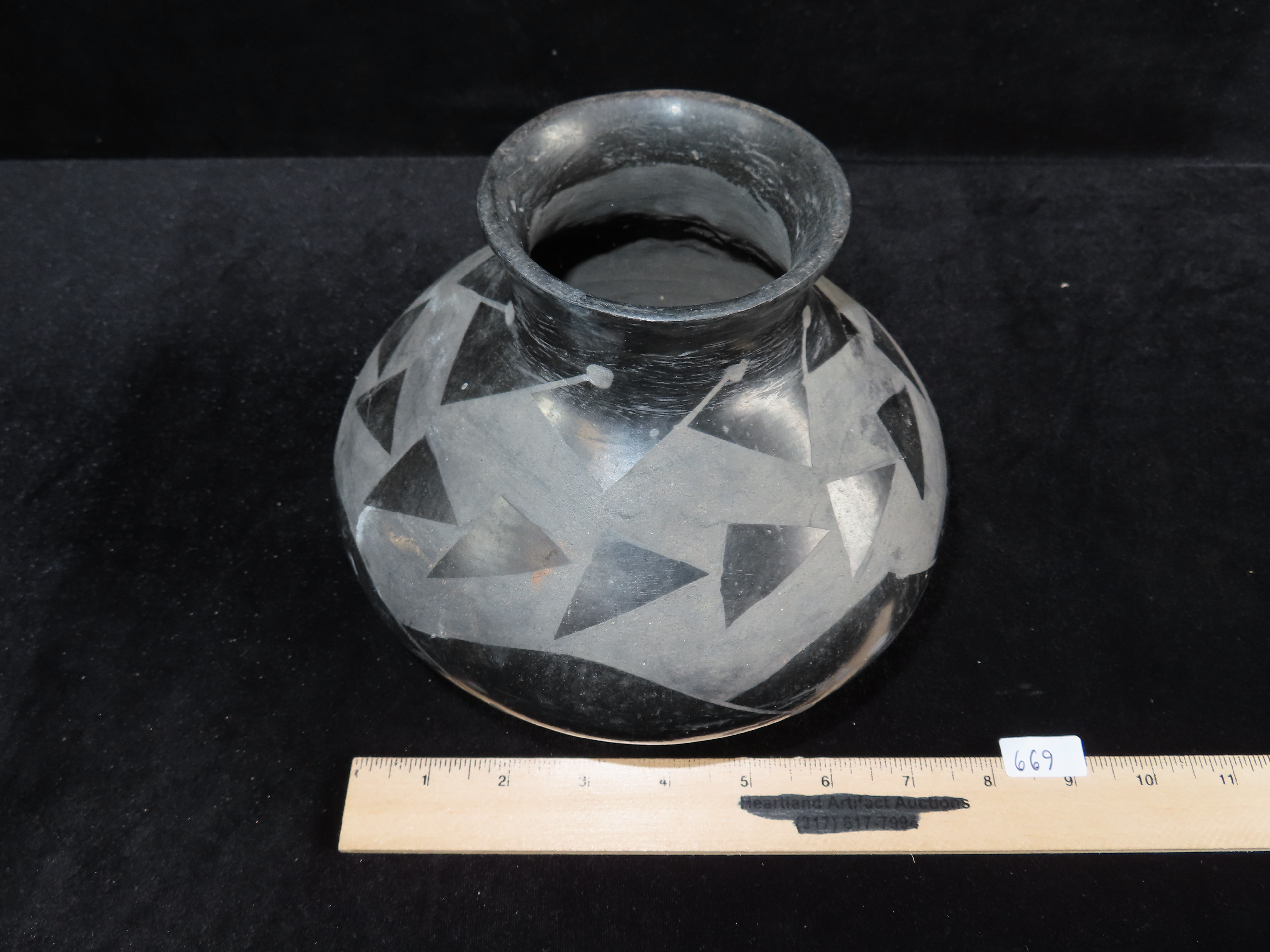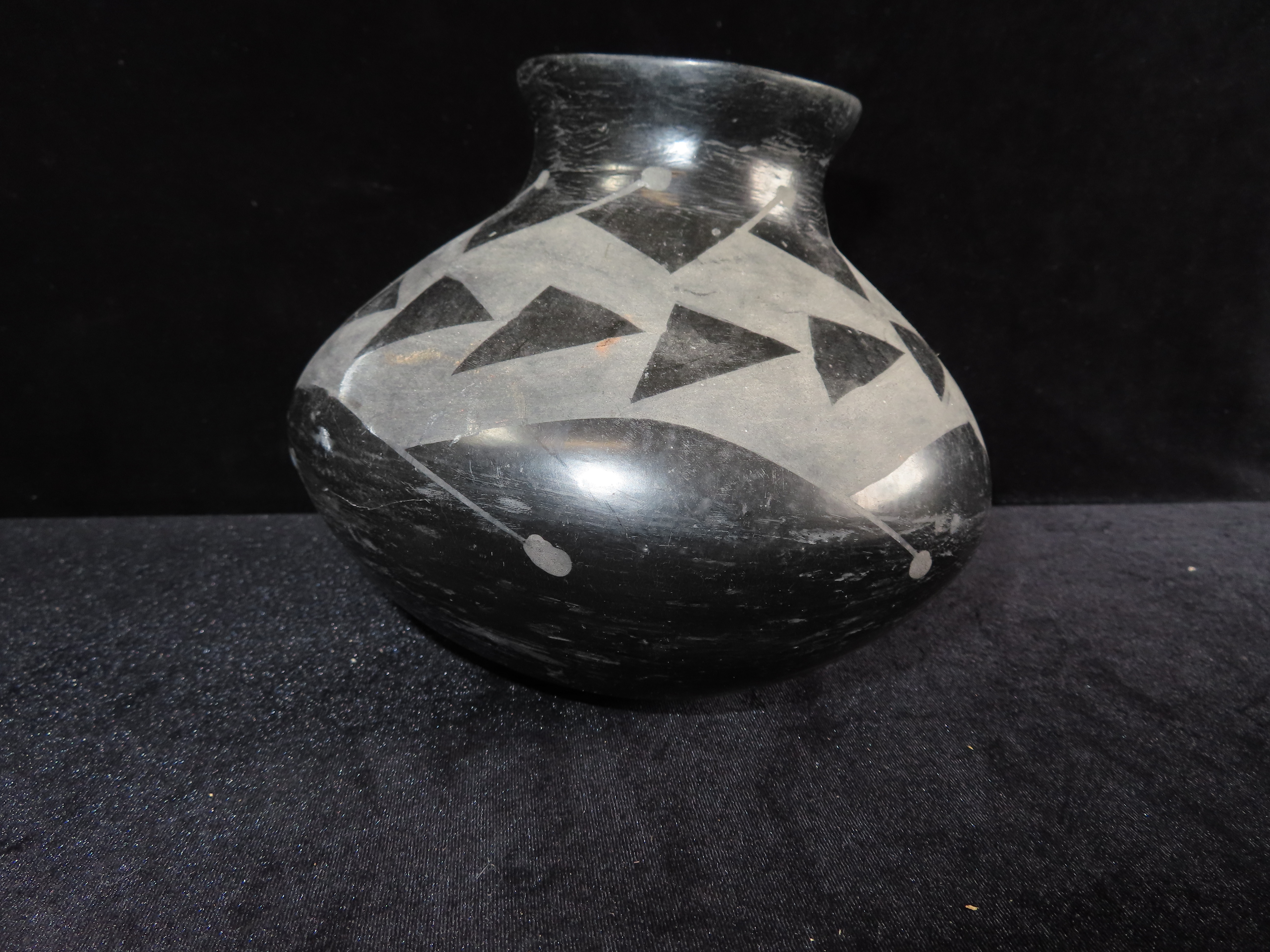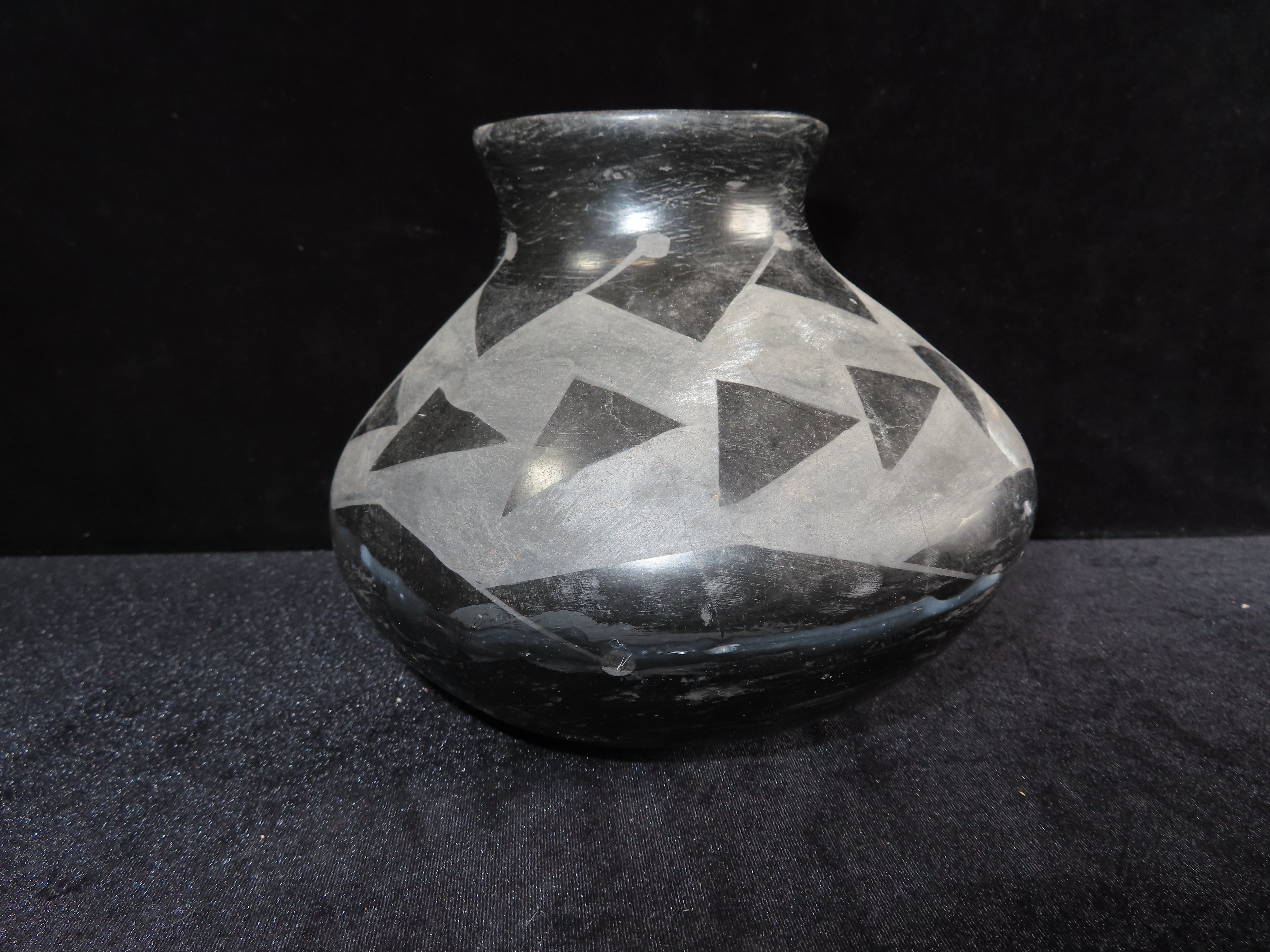 6 1/2″ X 7″ Black and Grey Native American Pot