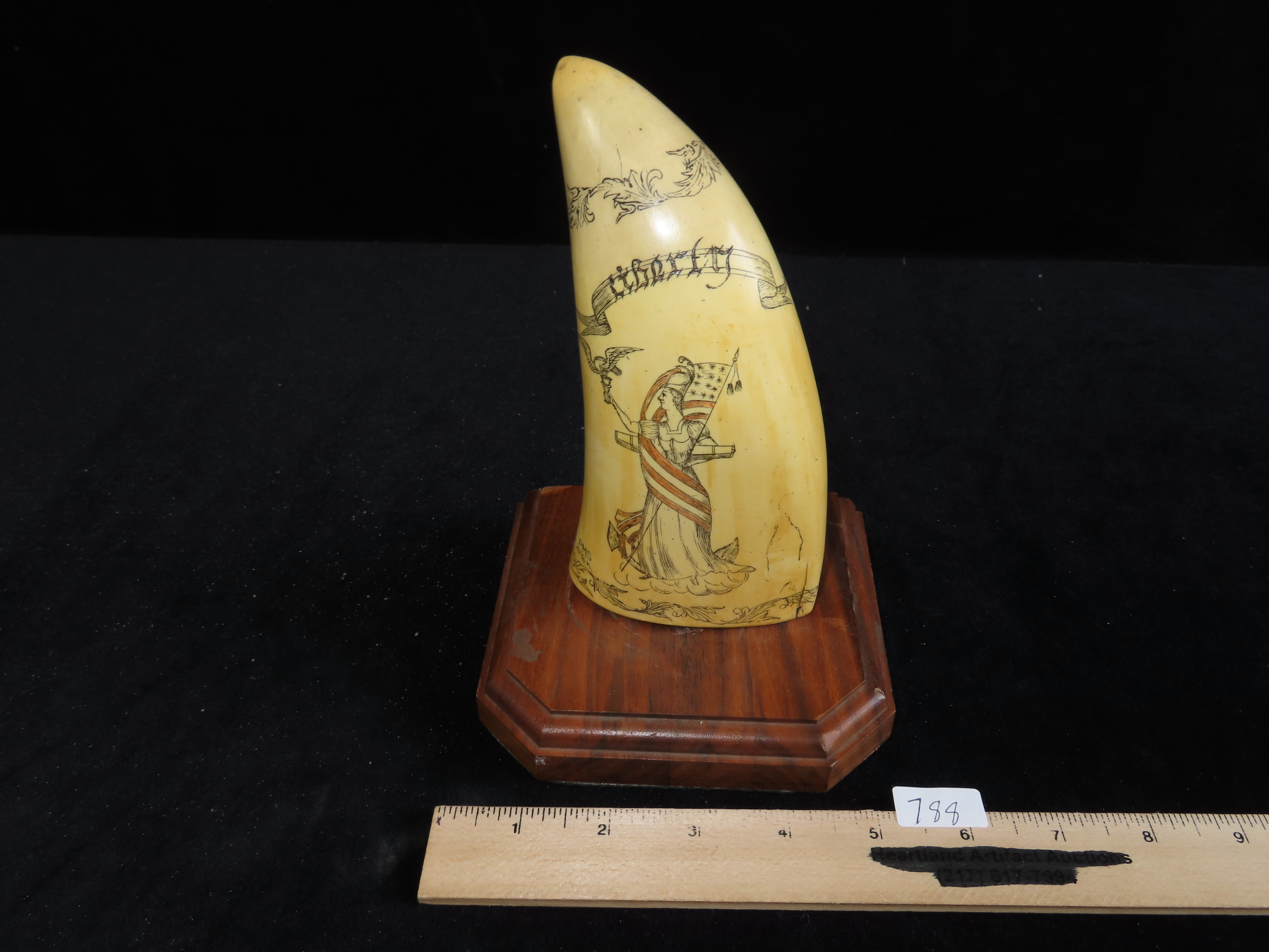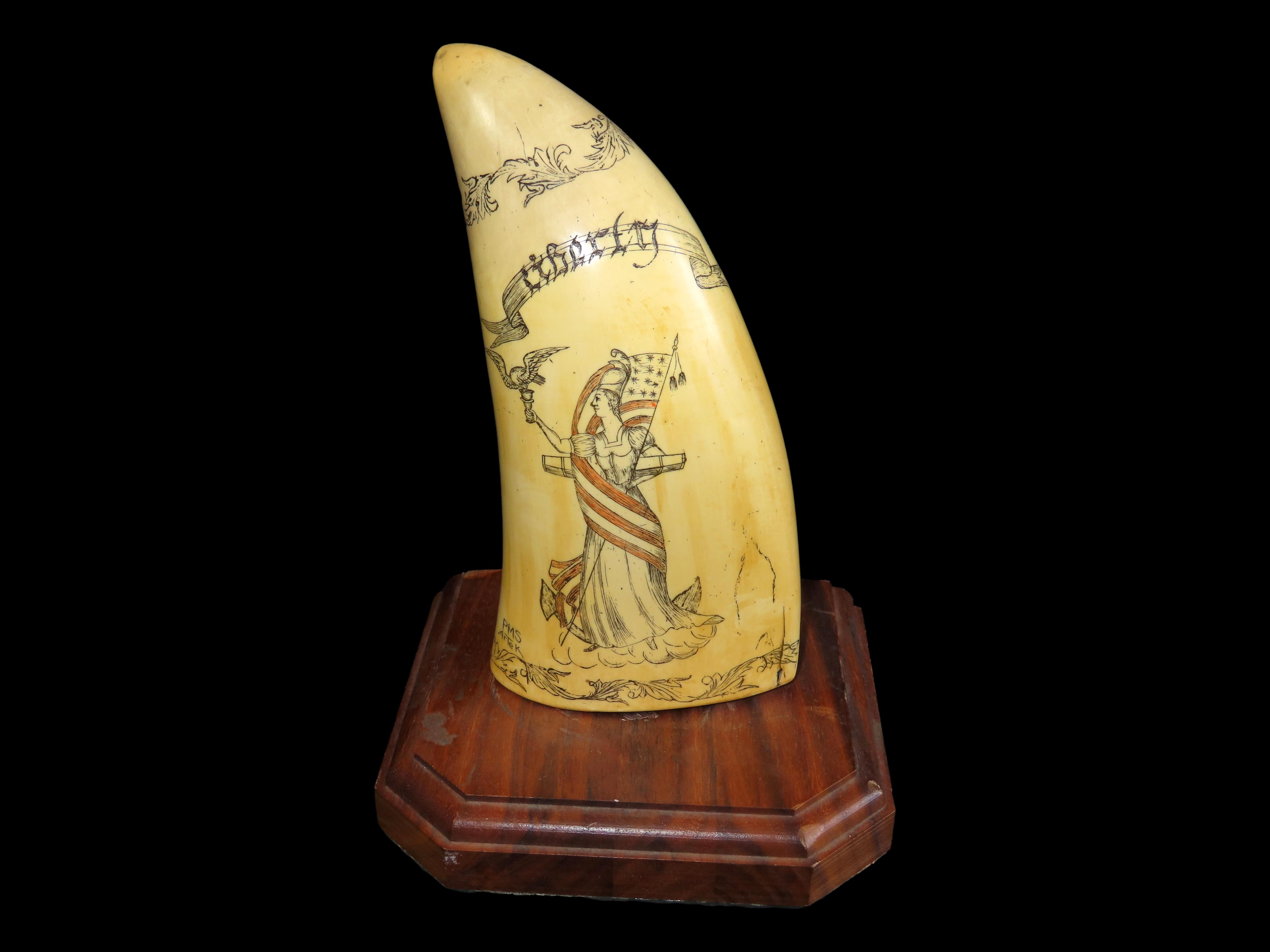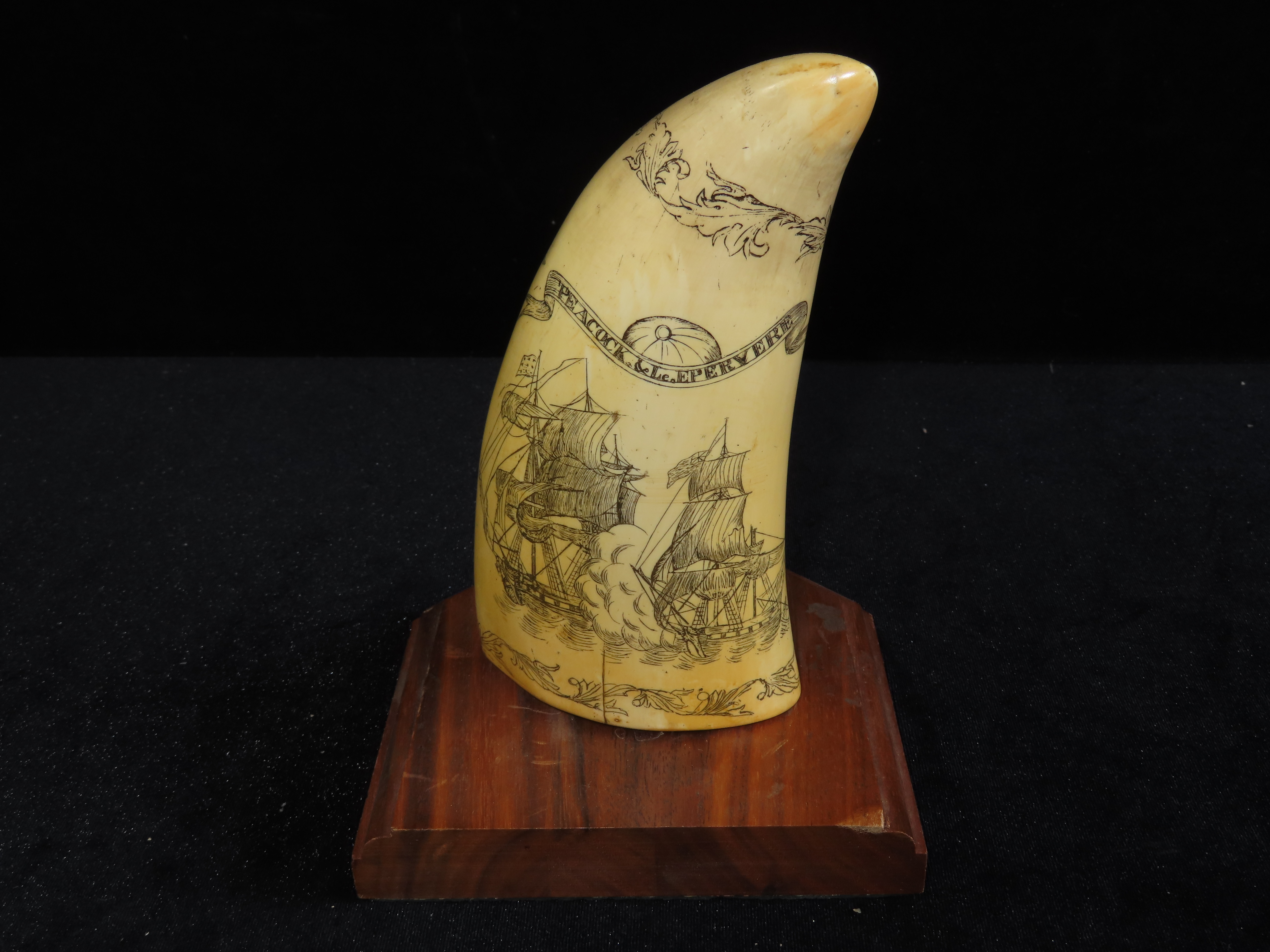 7 1/2″ X 4 1/2″ Resin Whale Tooth with Scrimshaw