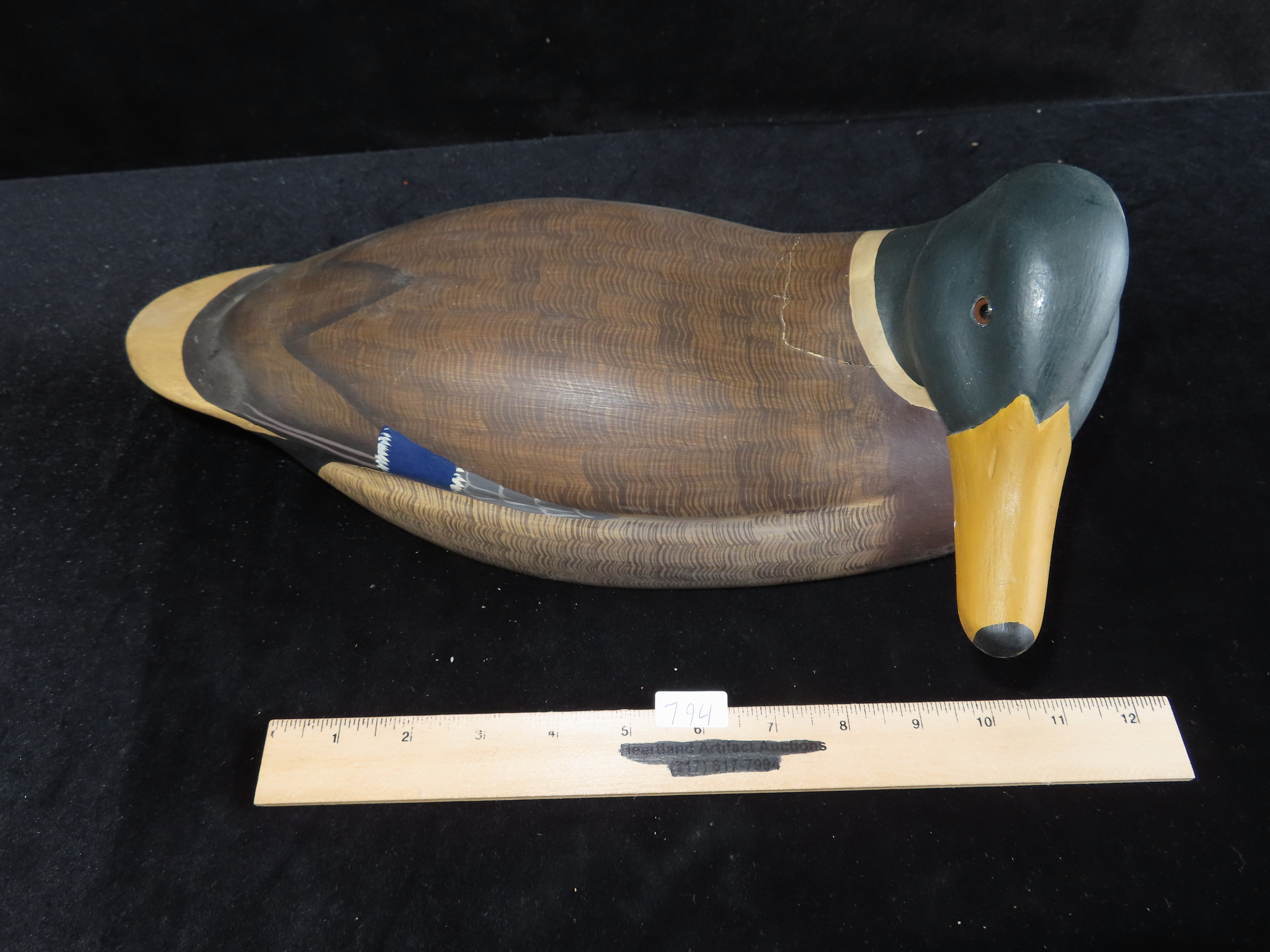 14 1/2″ Hand Carved Duck Decoy Signed James Haddor