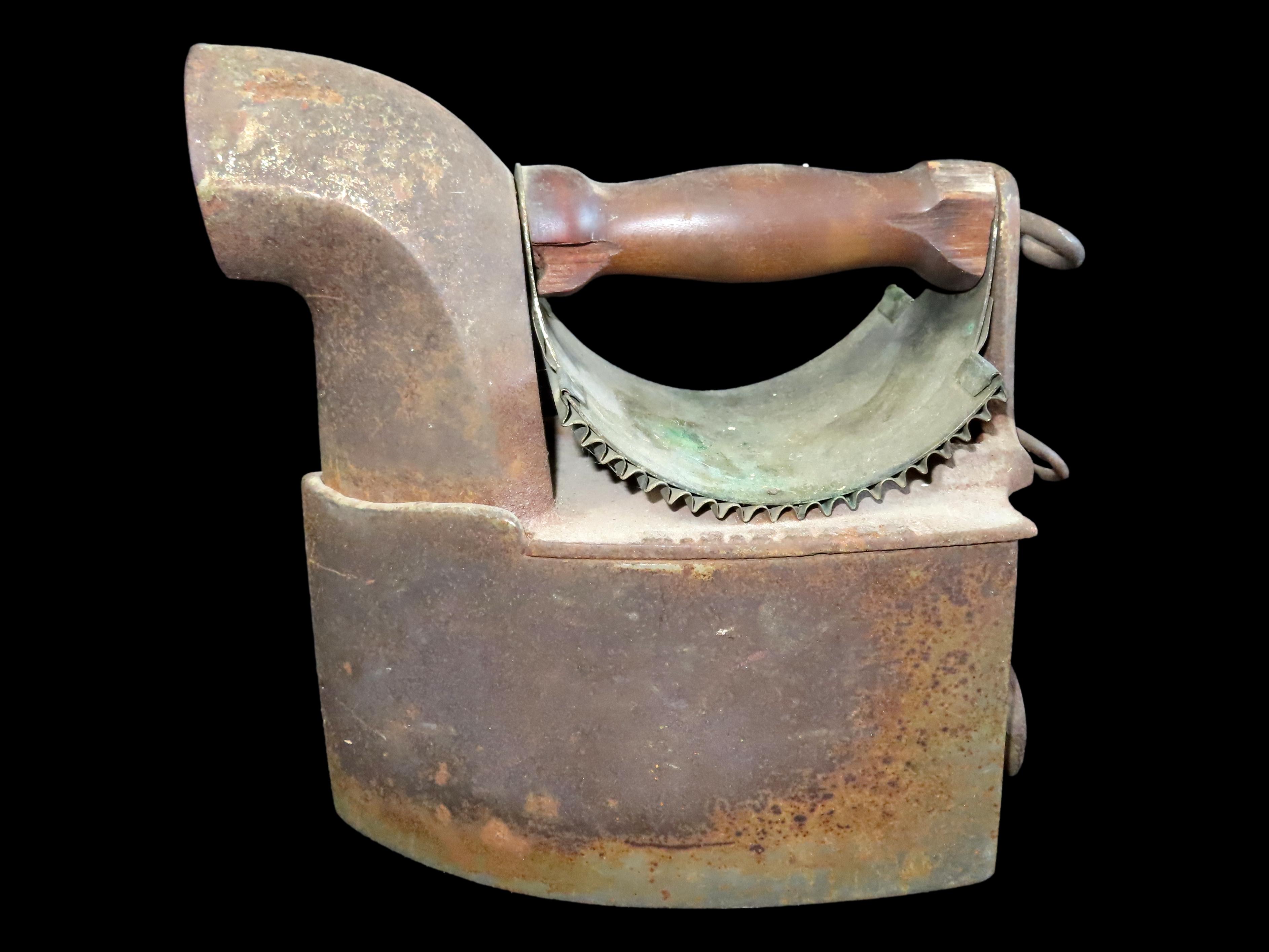 RARE Antique 1900s Cast Iron Coal Burning Sad Iron w/Chimney, no trivet