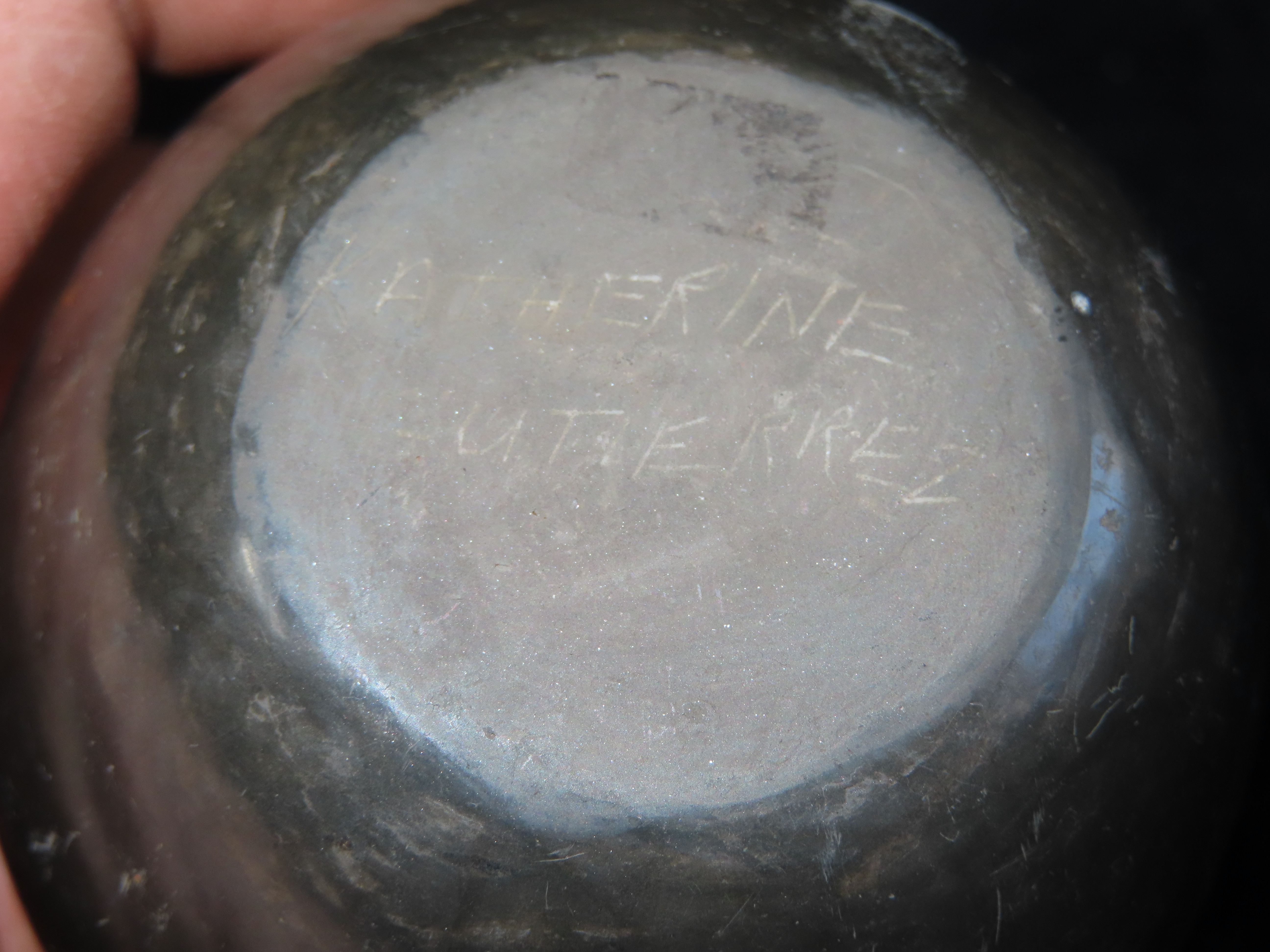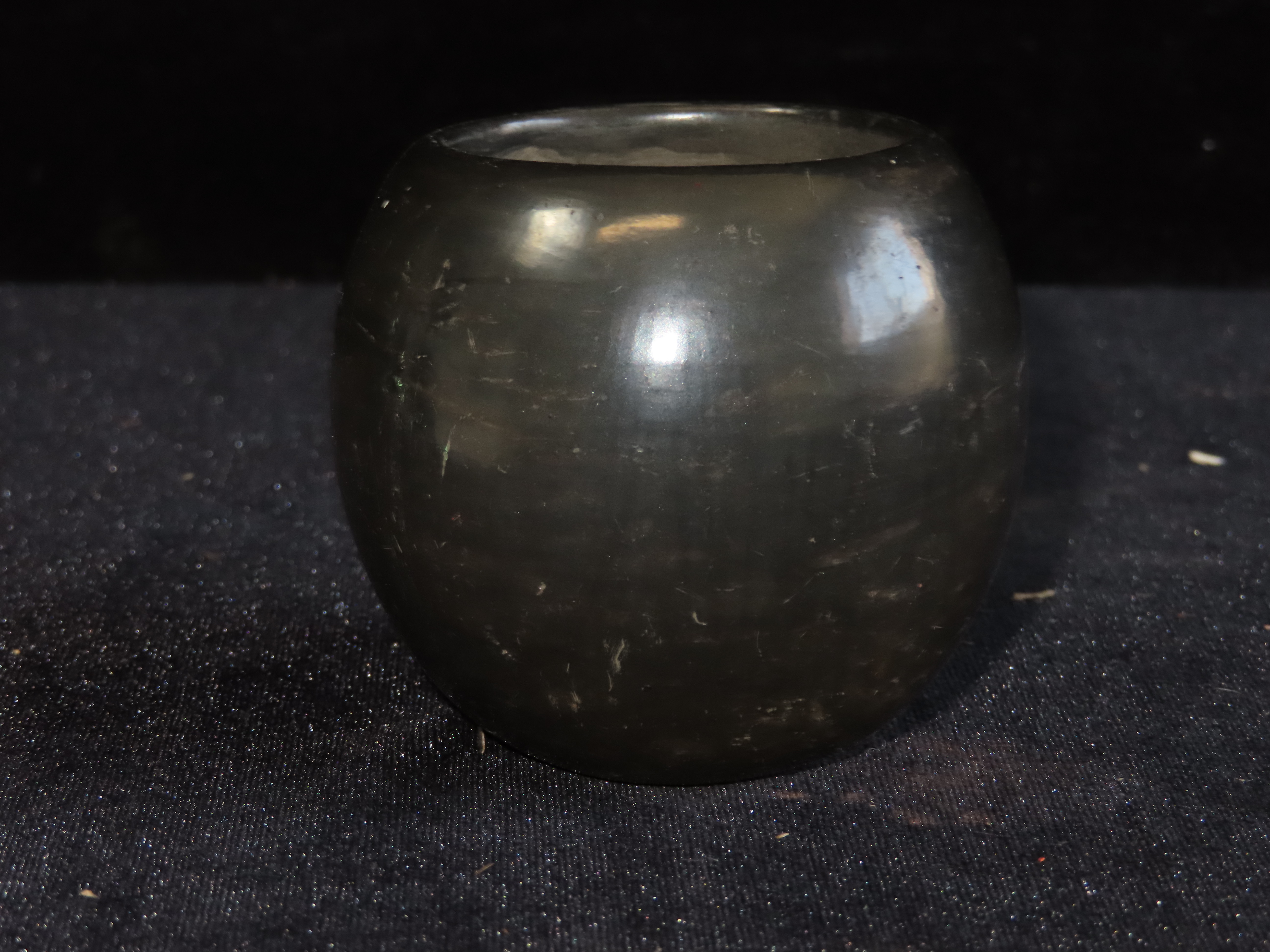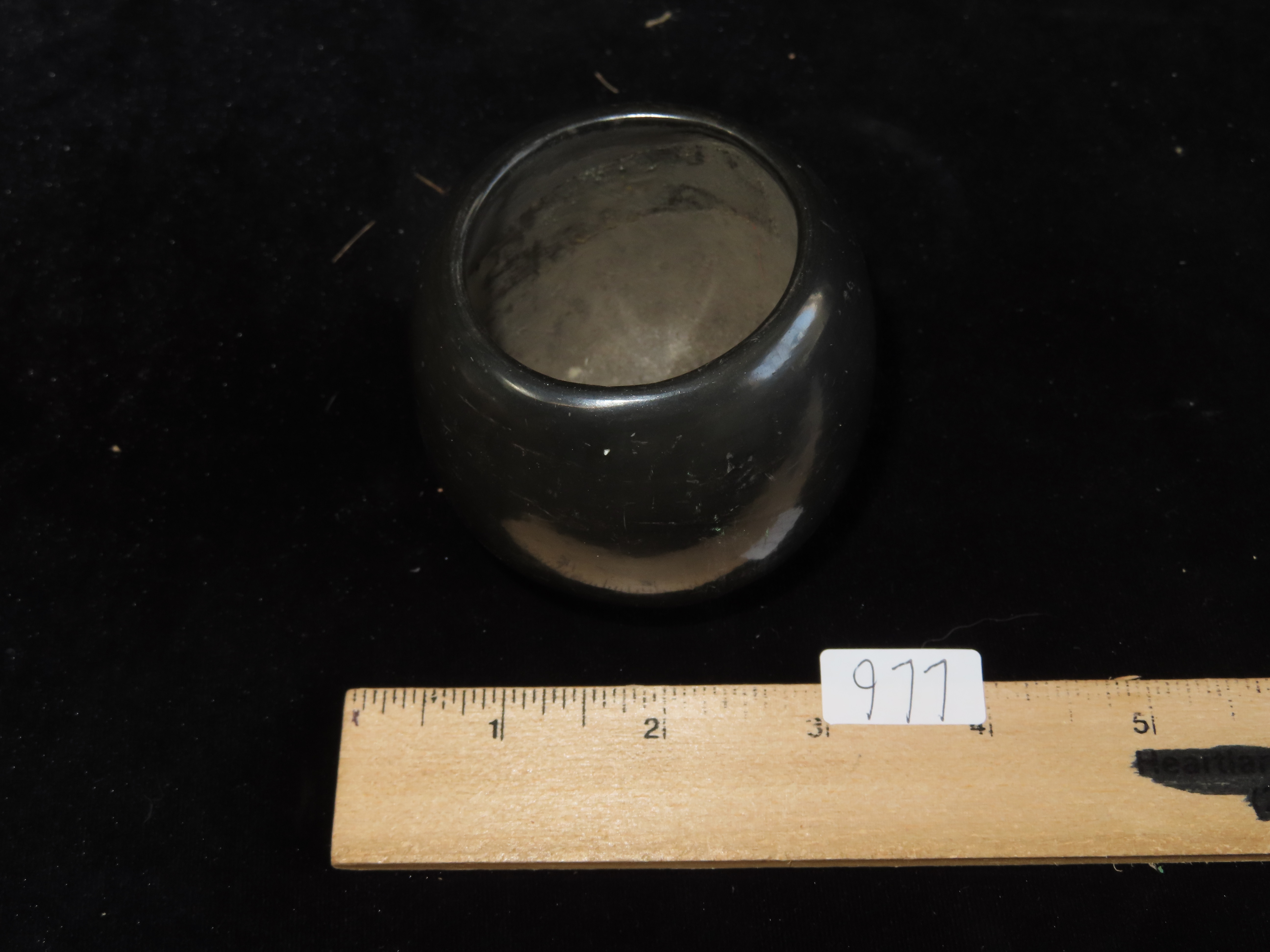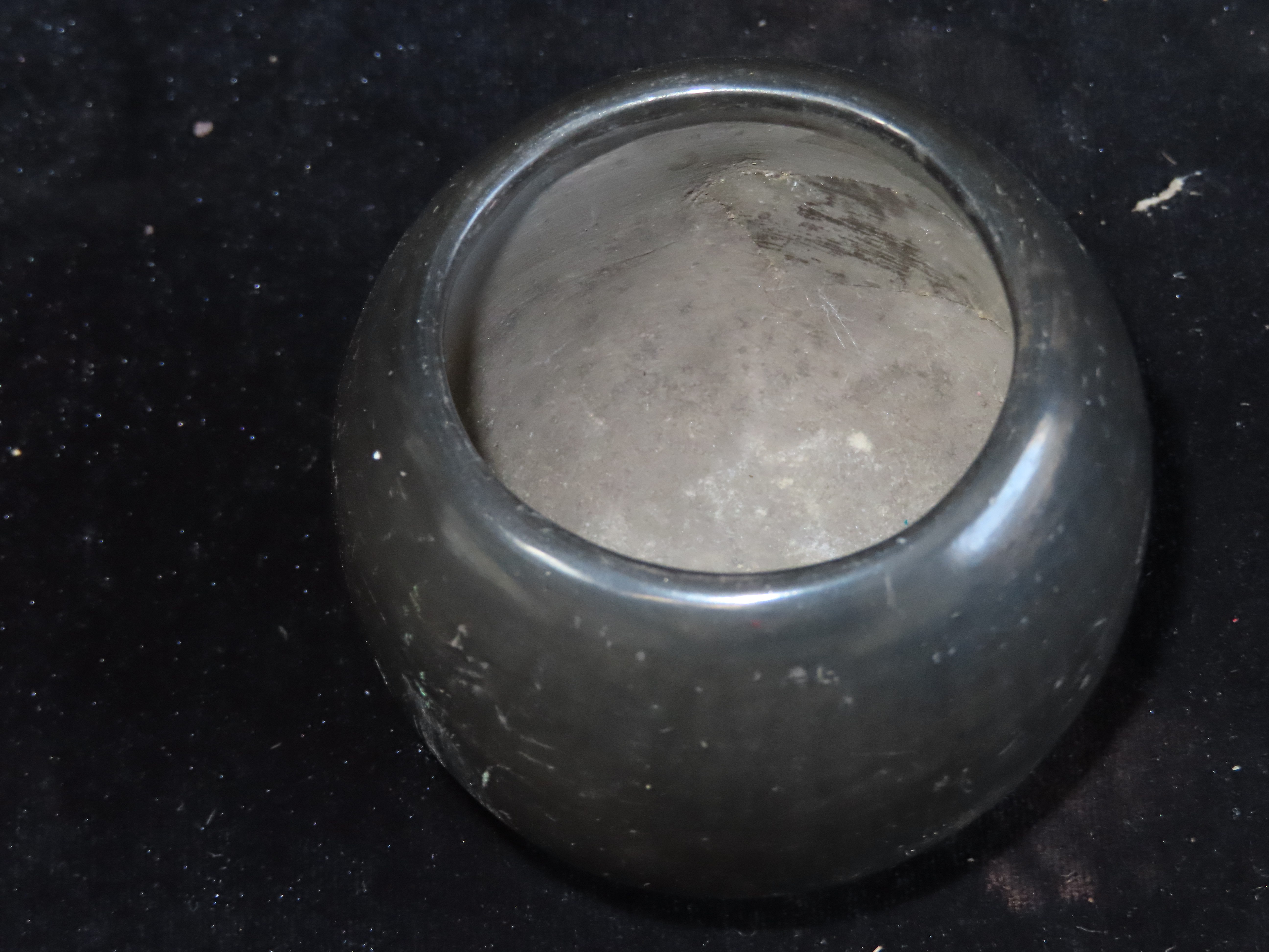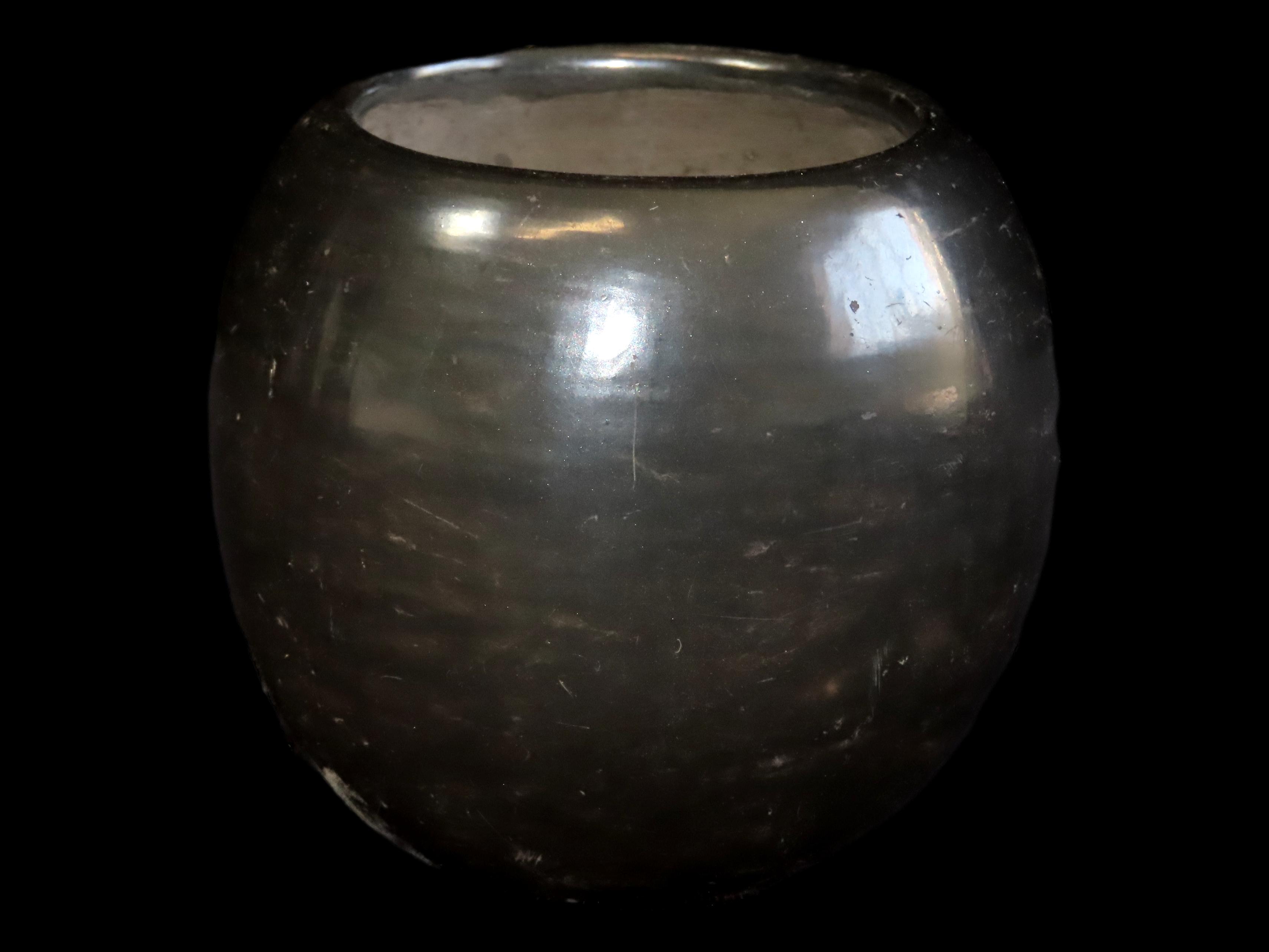 2 3/4″ X 3″ Santa Clara Pueblo Black Clay Pot Signed on Bottom
