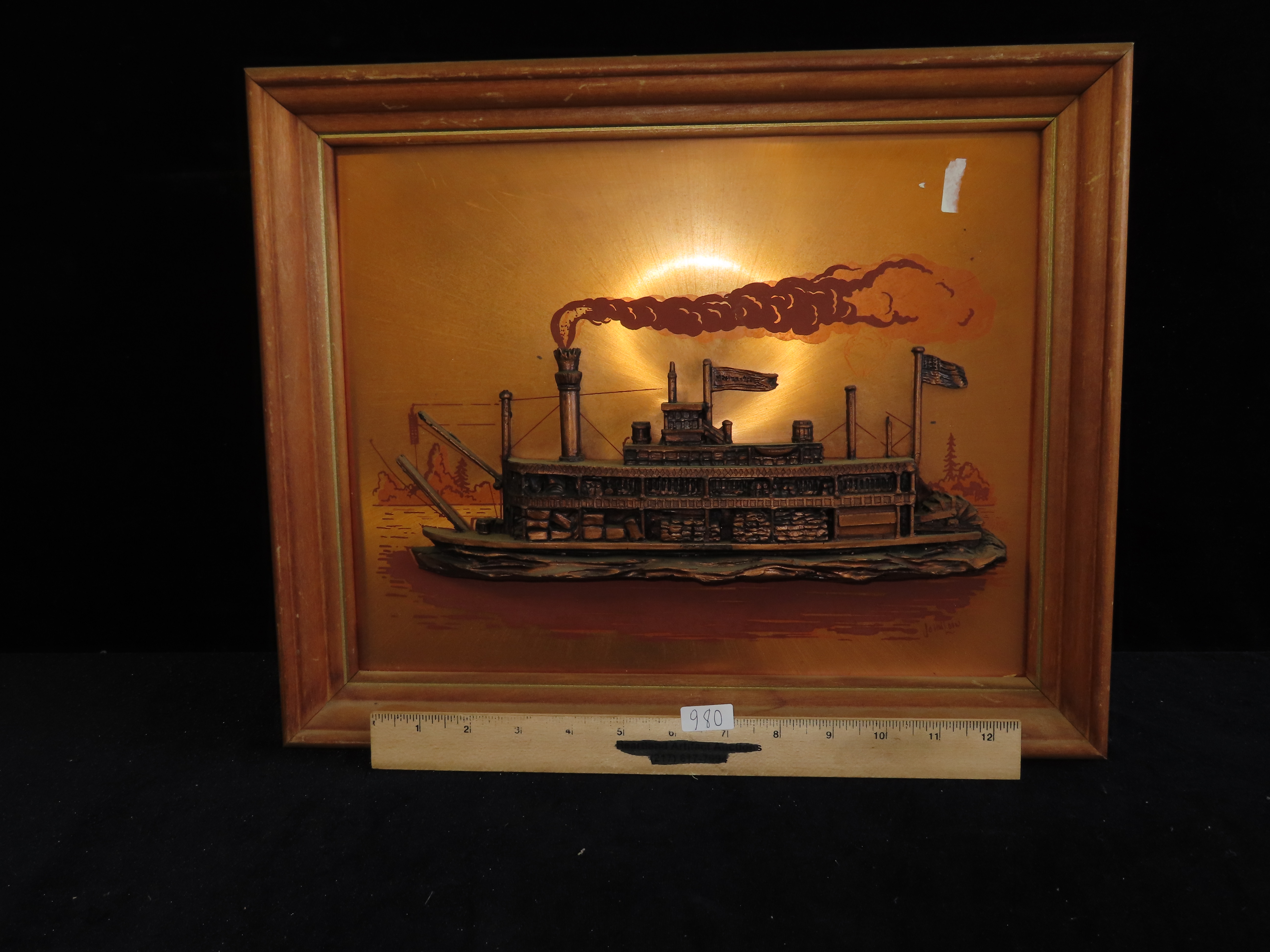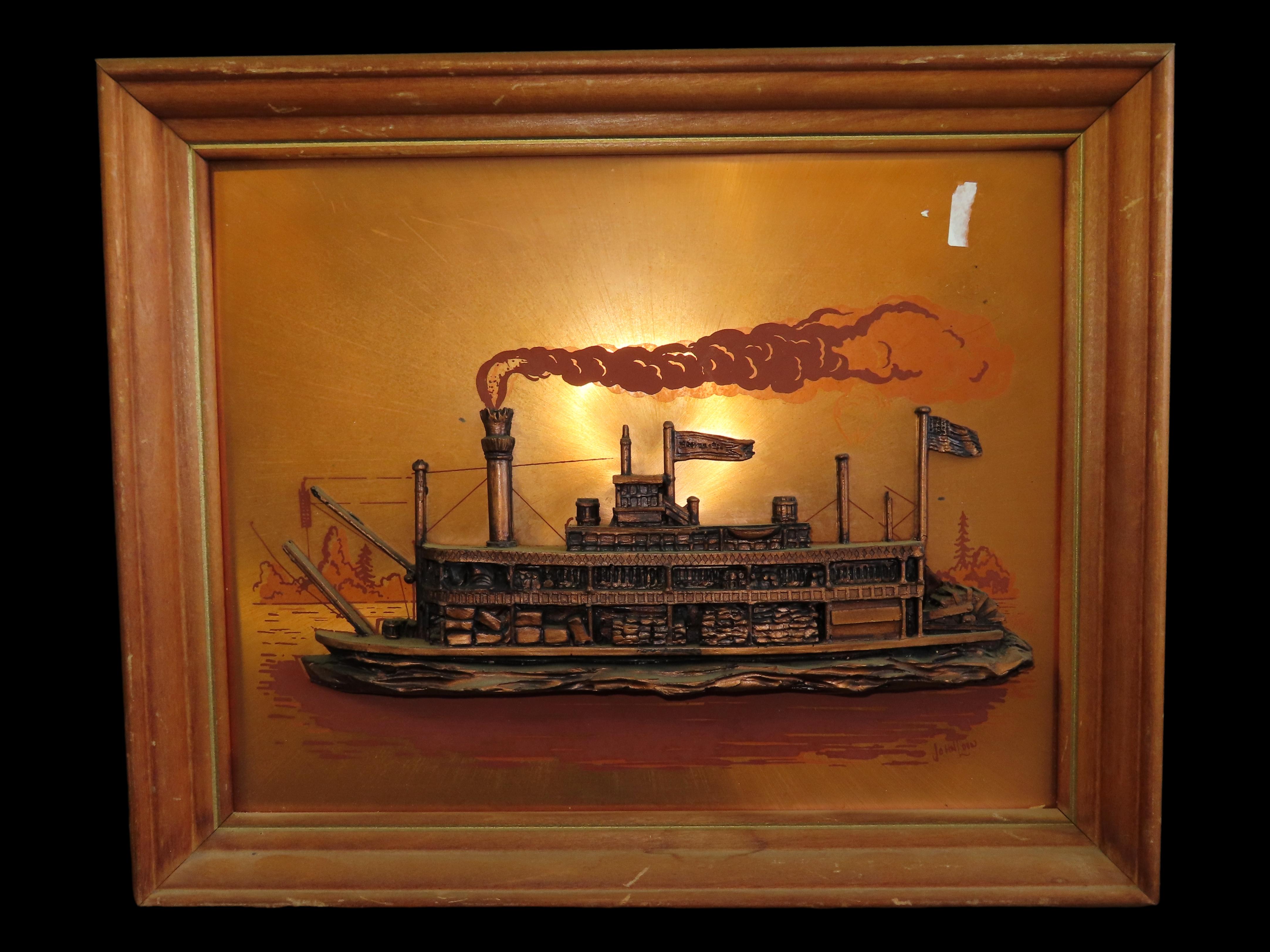 Vintage 16″ X 13 1/2″ Framed 3/D Copper Steam Boat By John Louee