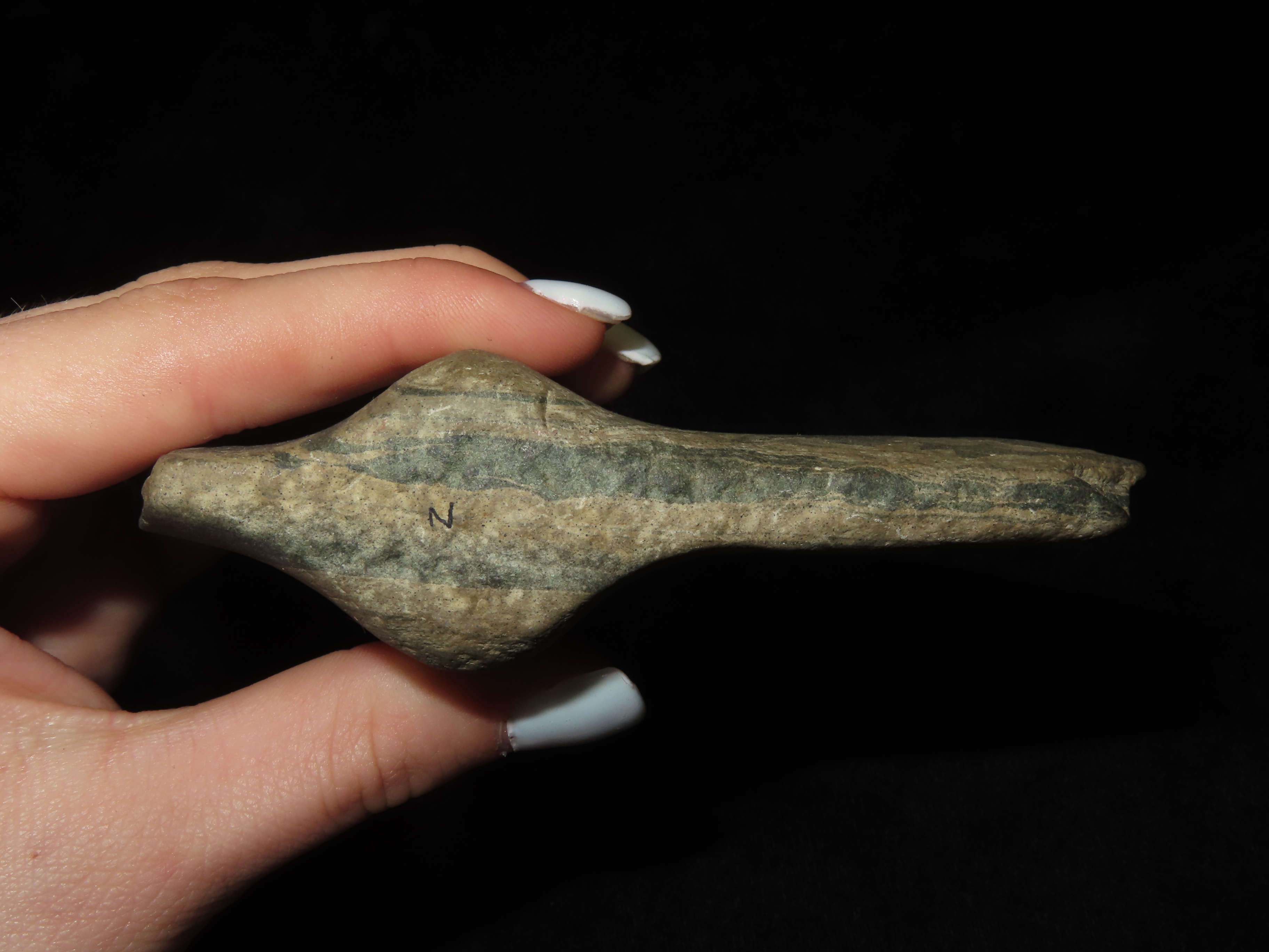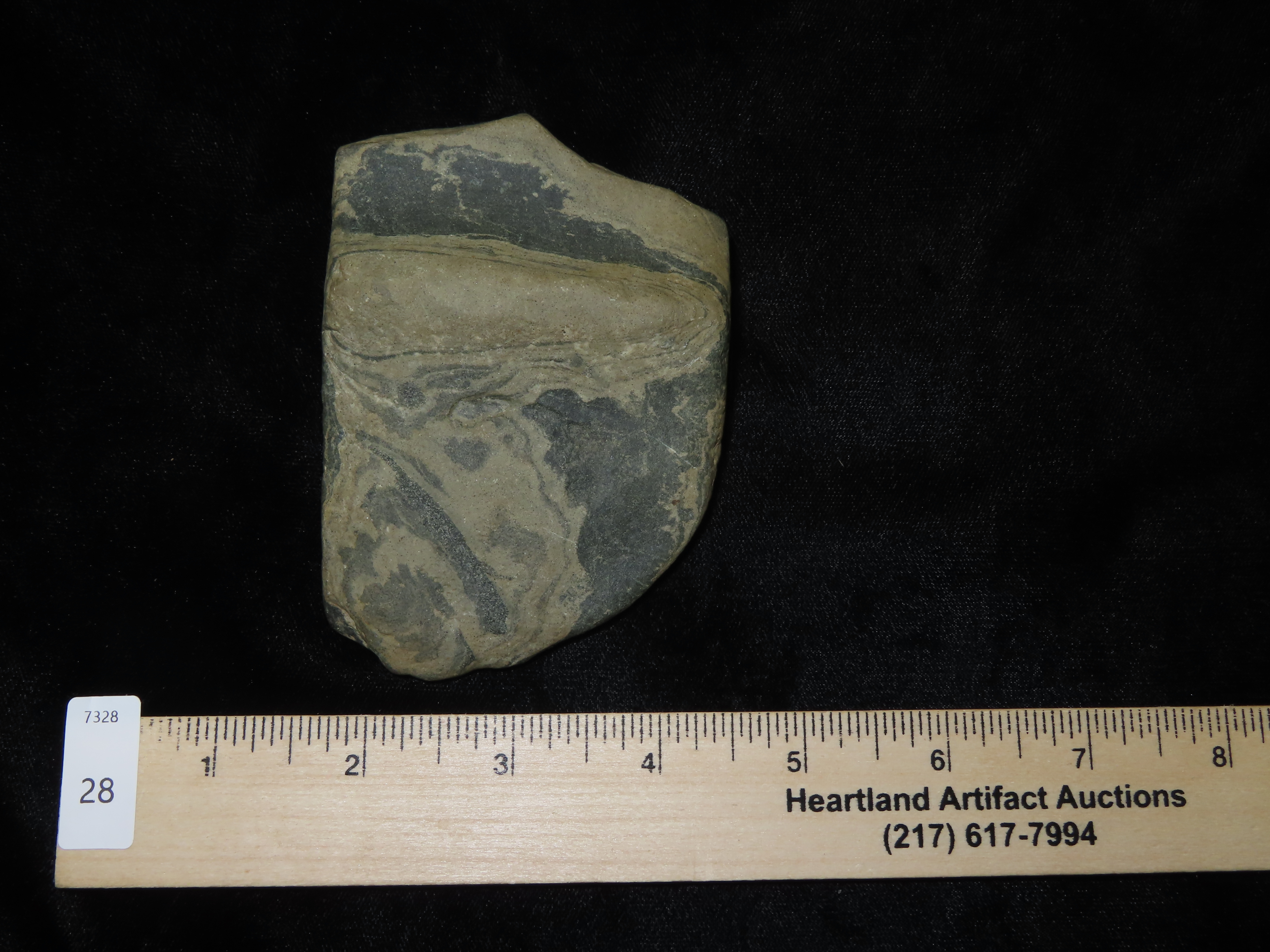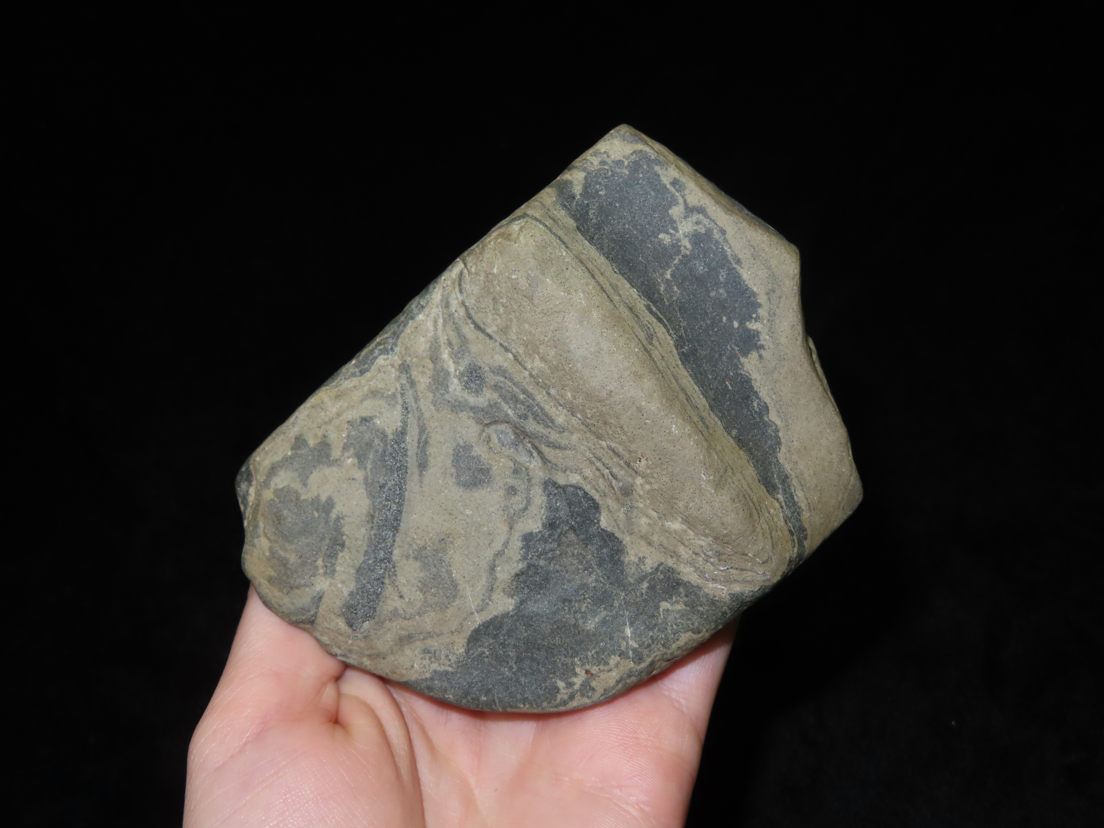 4 1/8″ Banded Slate Banner Pre-Form, Broken, Great Study Piece, found in Wisconsin