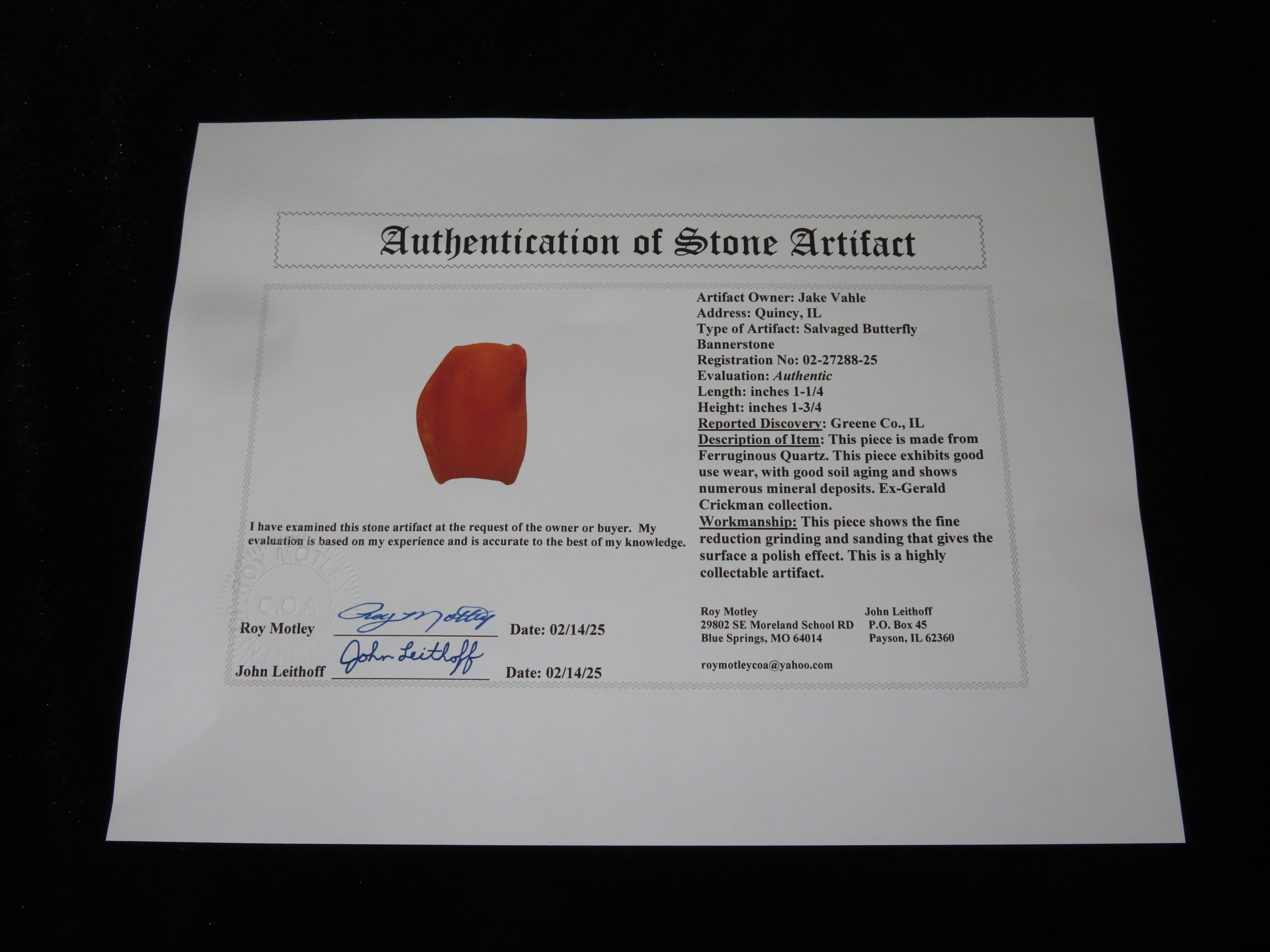 1 1/4" Salvaged Butterfly Banner, Motley COA, Greene Co., Illinois