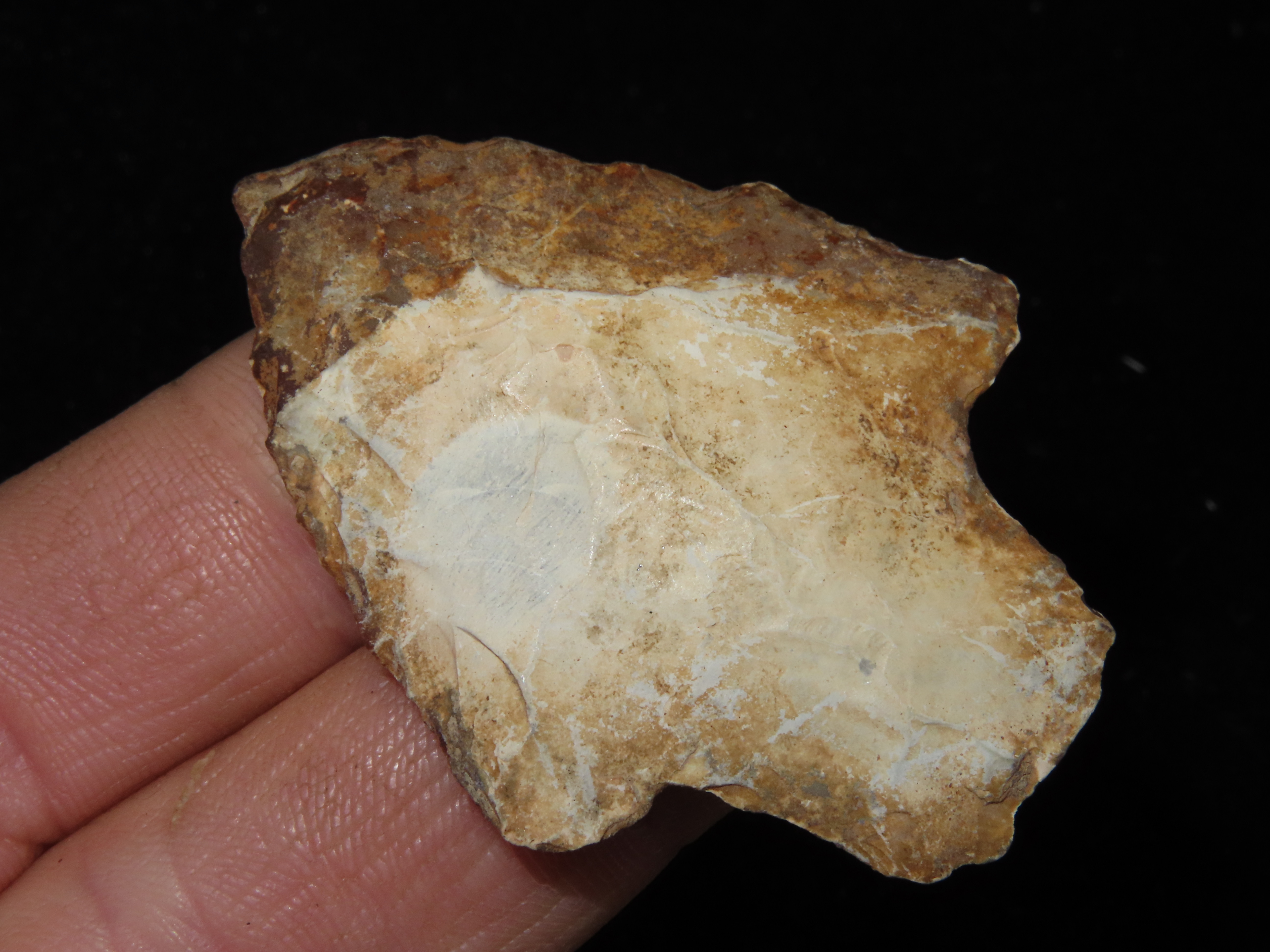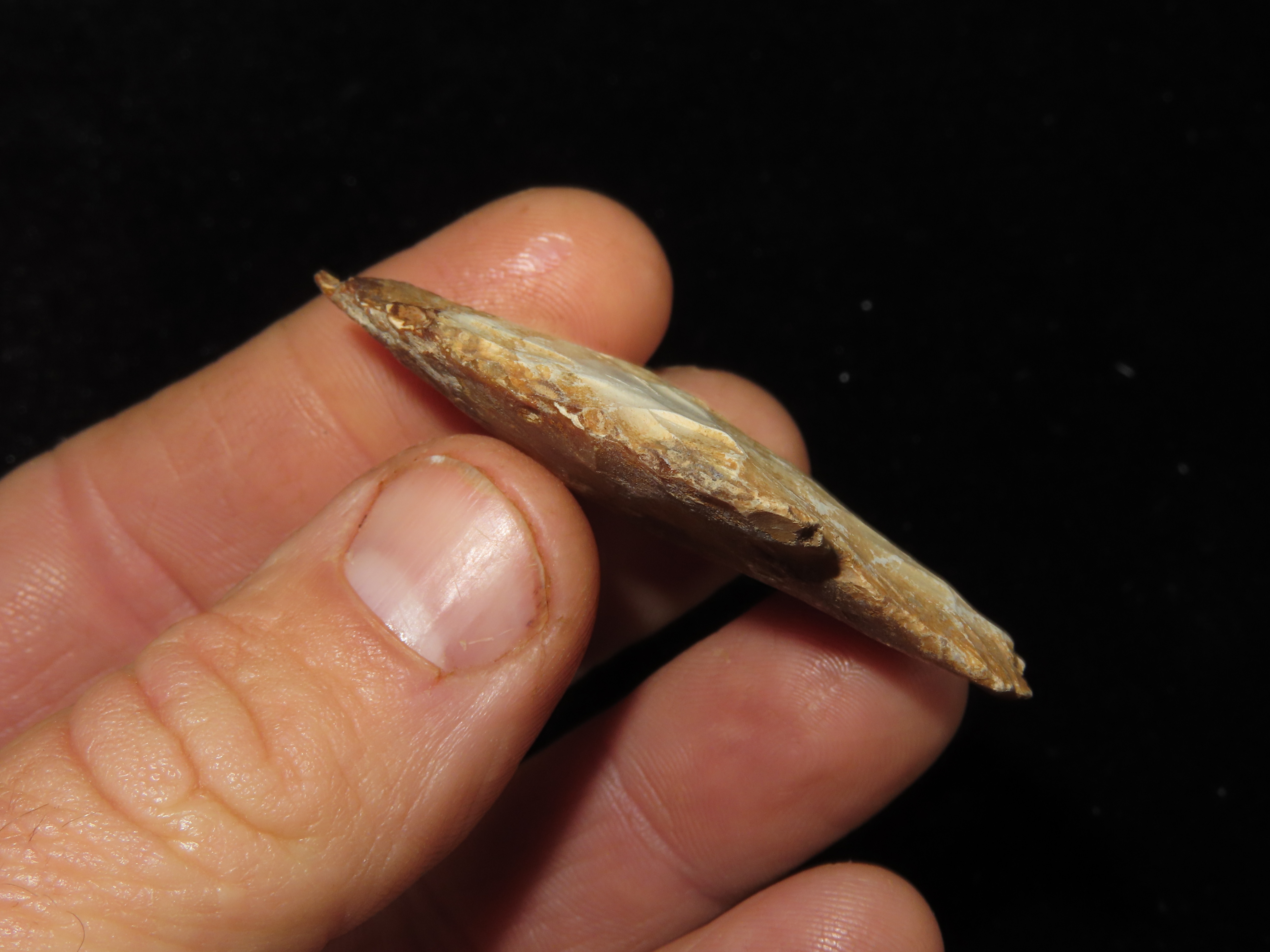 2 1/8″ Newnan, made of coral, found in Southern Georgia, Ex Jerry Dickey