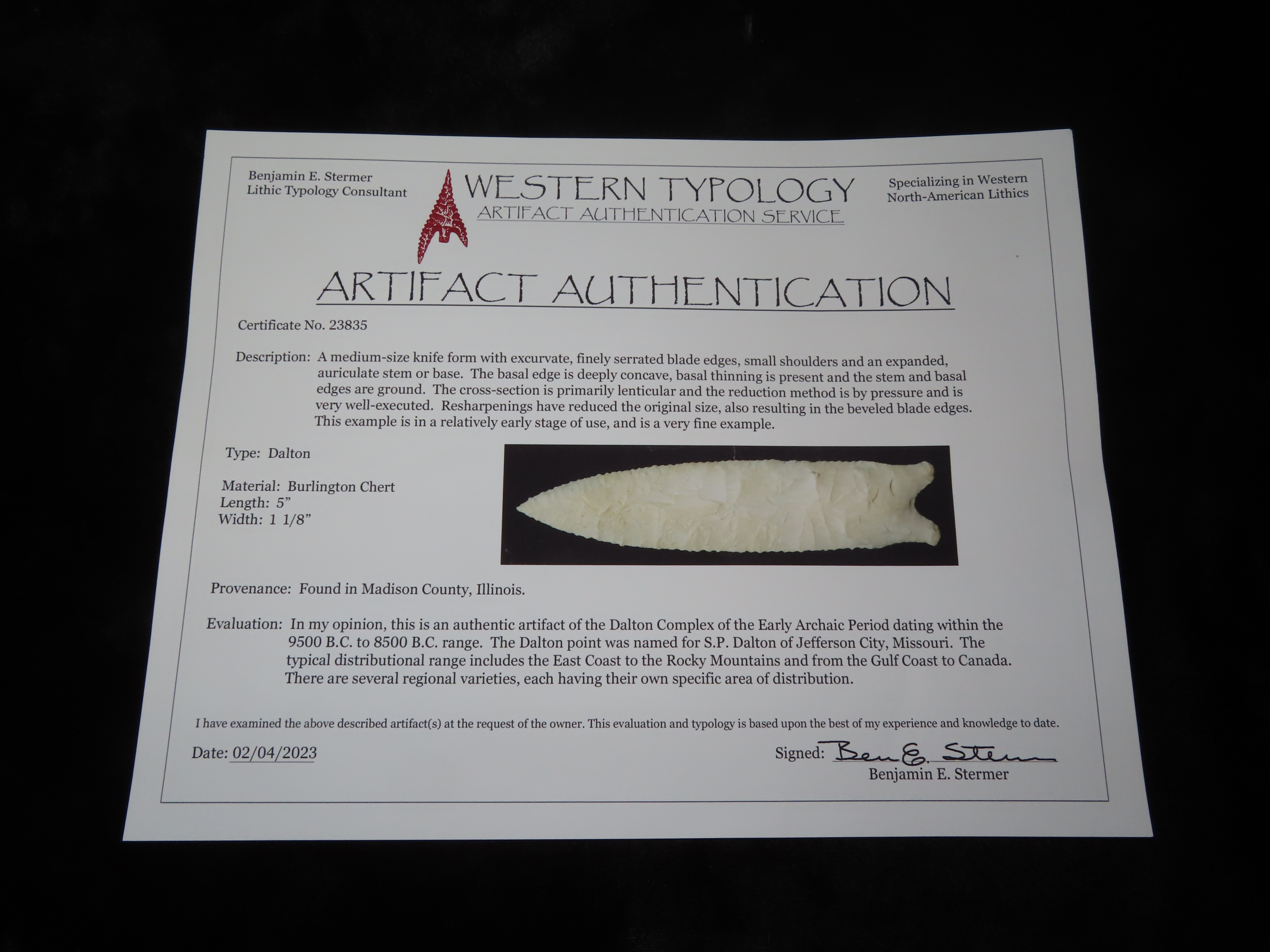 5″ Dalton, Stermer COA, found in Madison Co., Illinois