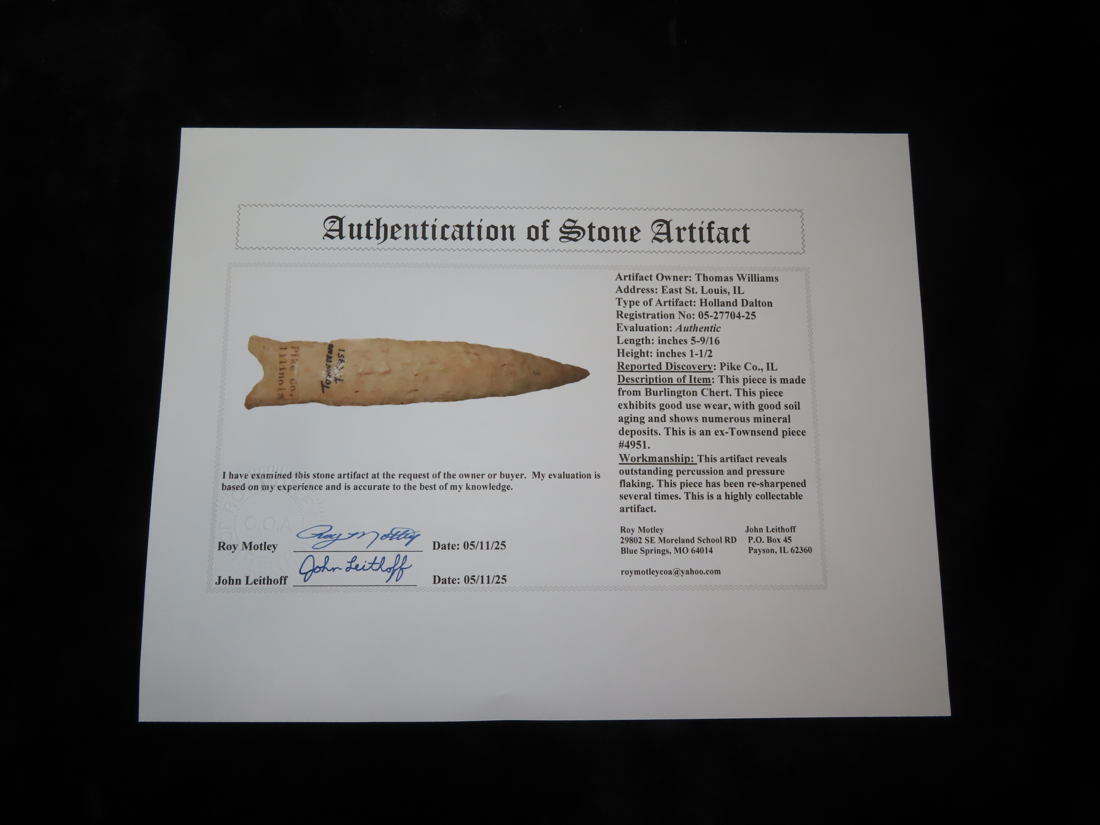 5 9/16″ Holland Dalton, Motley COA, found in Pike Co., Illinois, Ex Townsend #4951, Ex Thomas Walton Collections