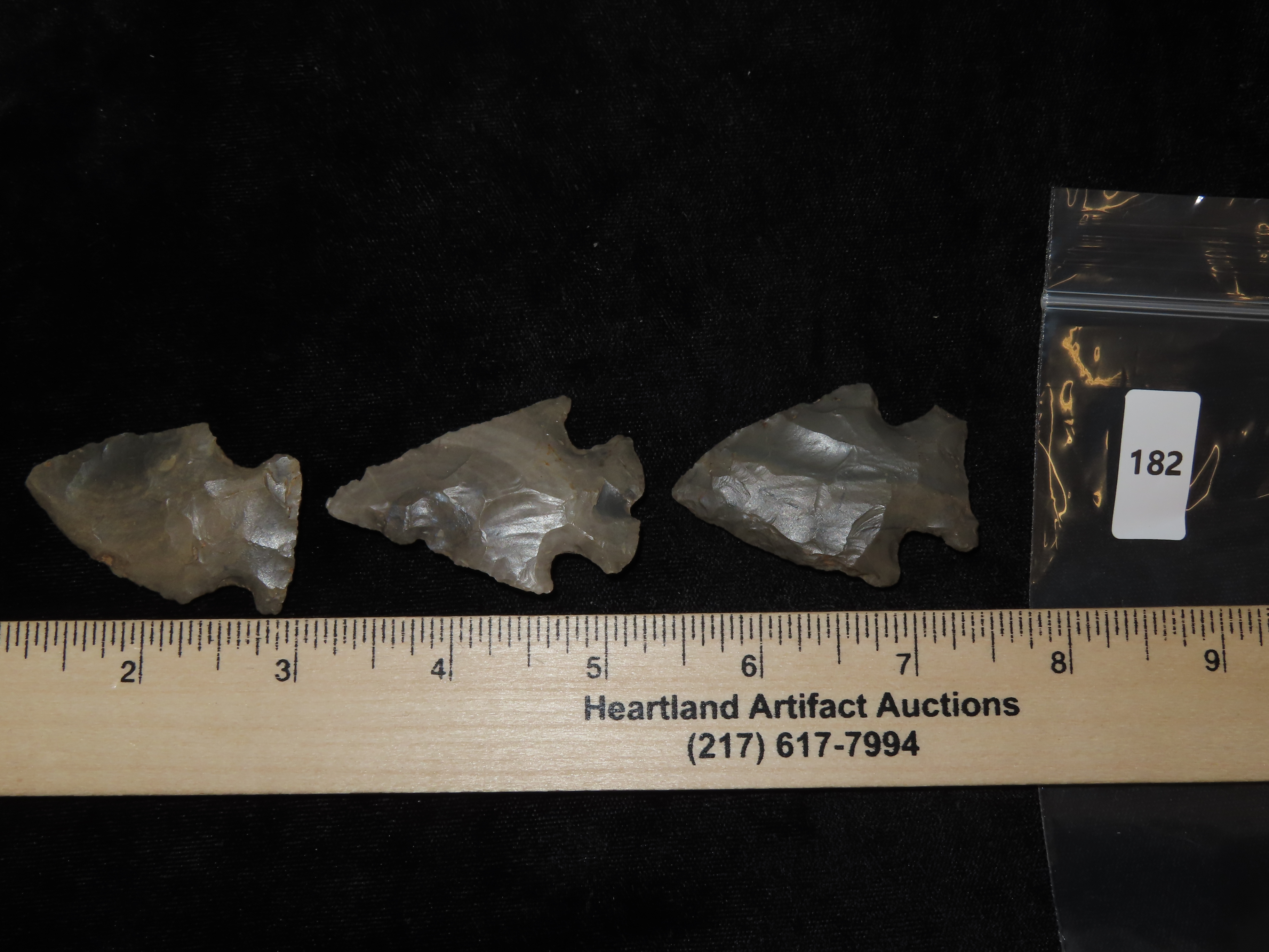 Lot of 3 Southern Illinois Arrowheads, Ex Clarence Blair Collection