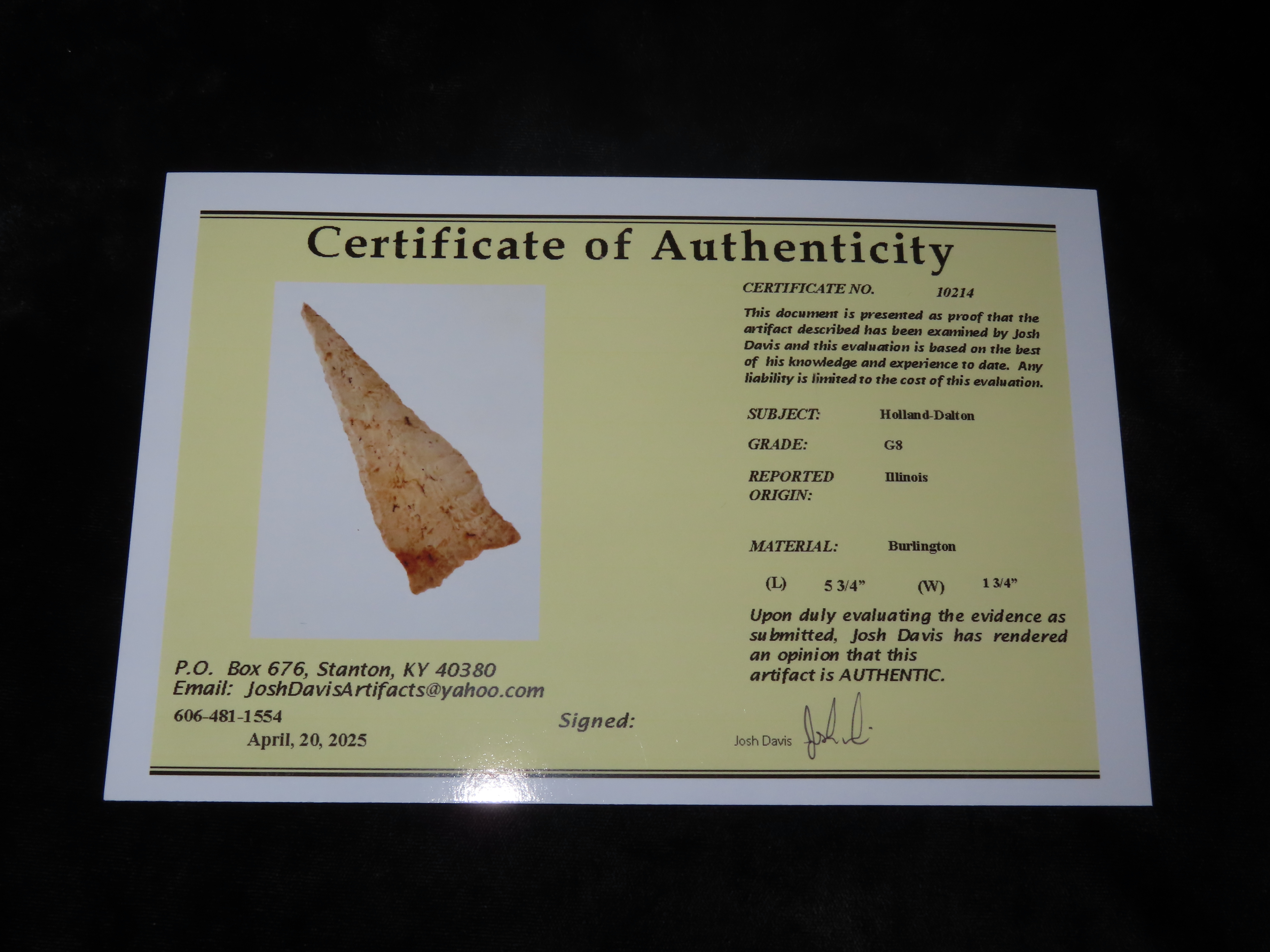 5 3/4″ Holland-Dalton, Davis COA, Found in Illinois