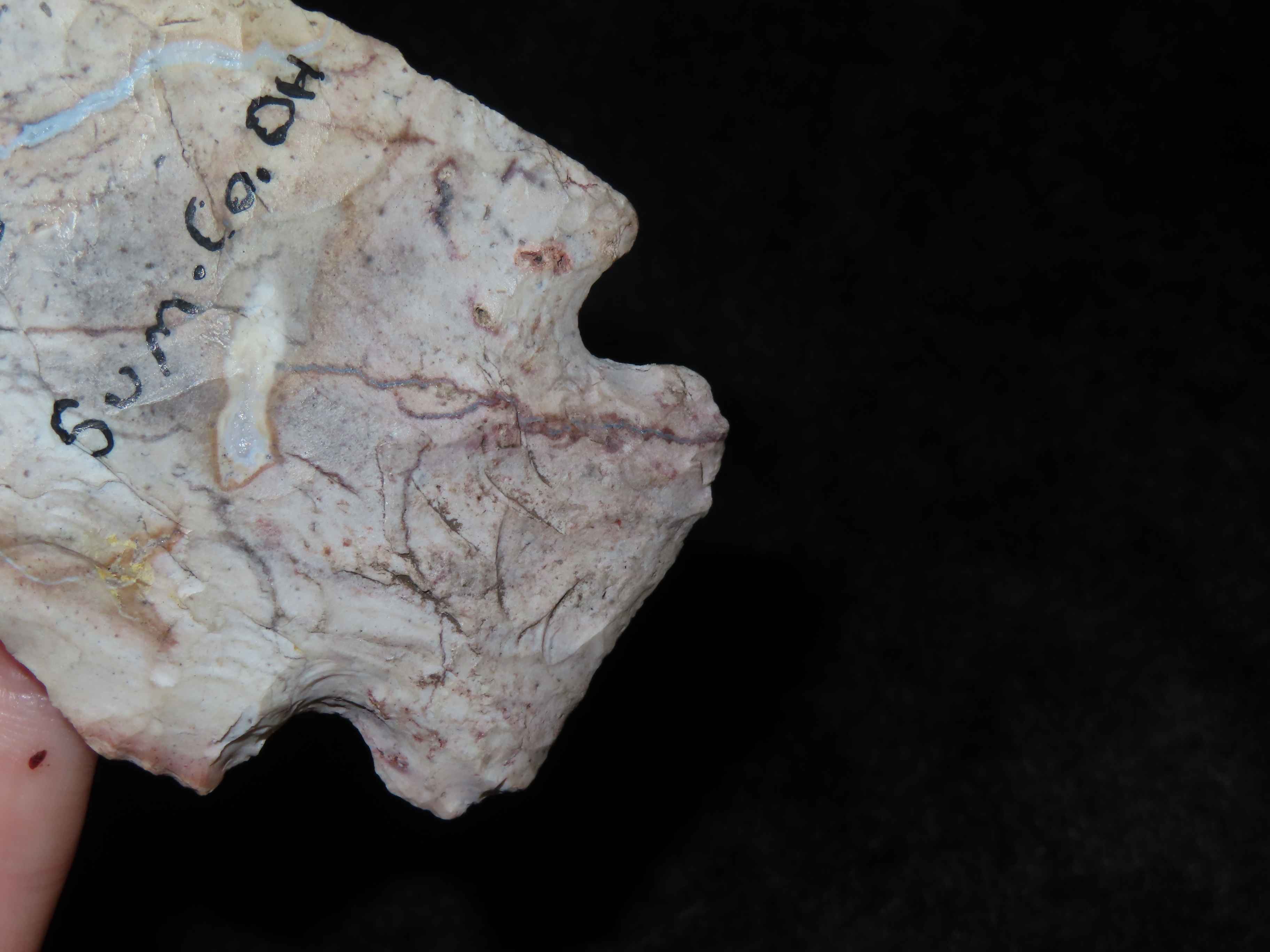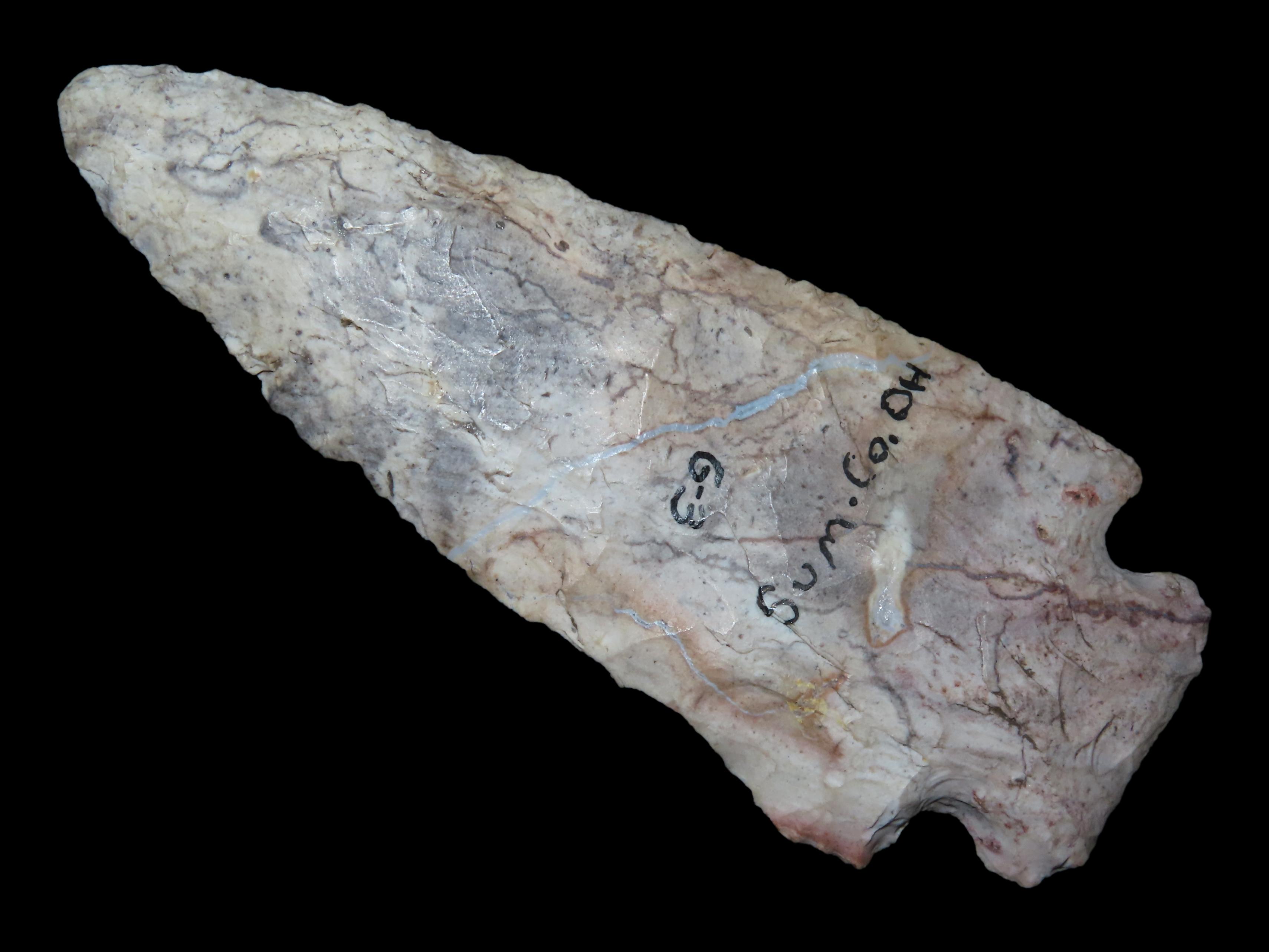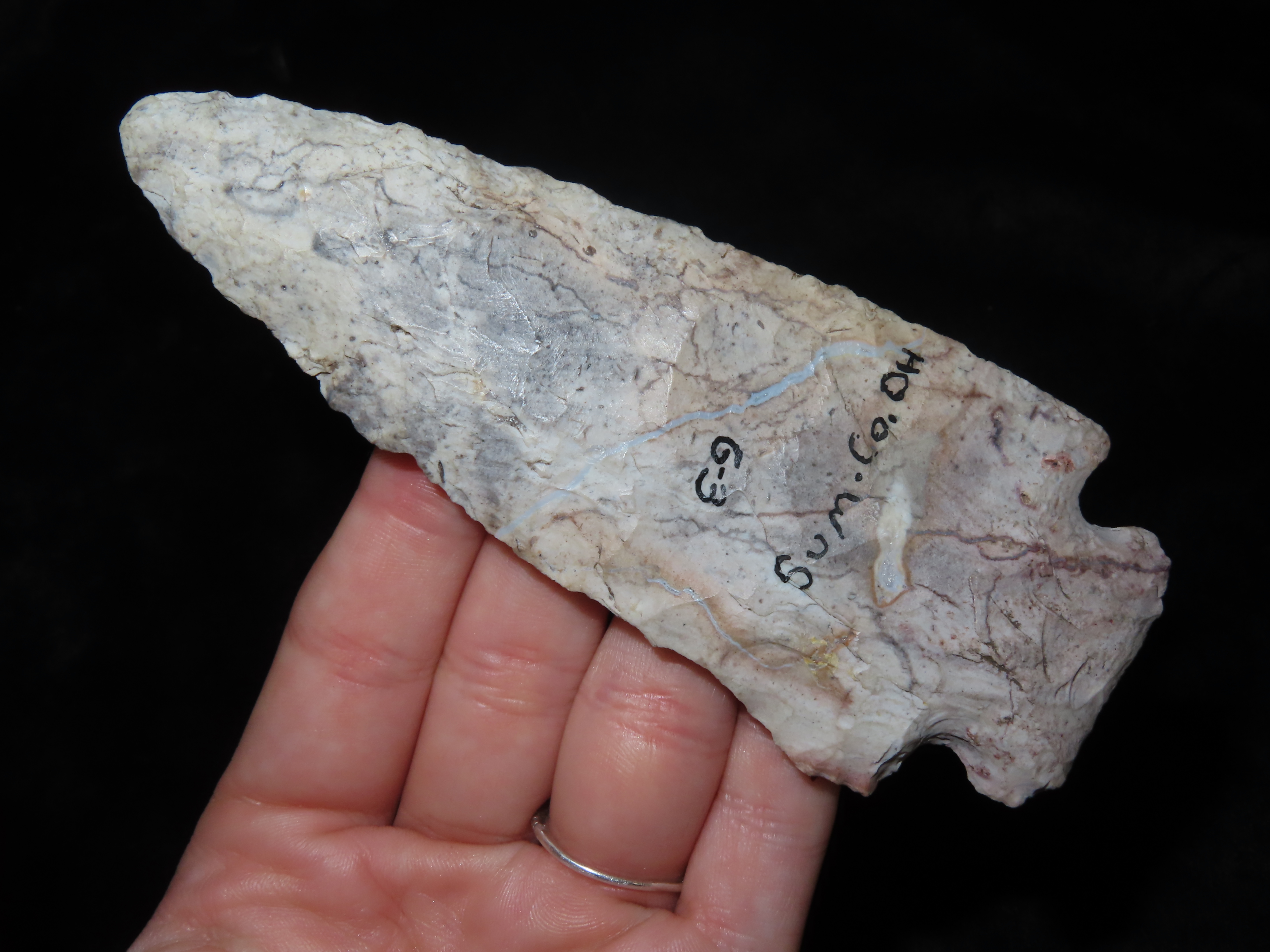 4 9/16″ Large Archaic Corner Notch, Found in Summit Co., Ohio, Ancient Wear