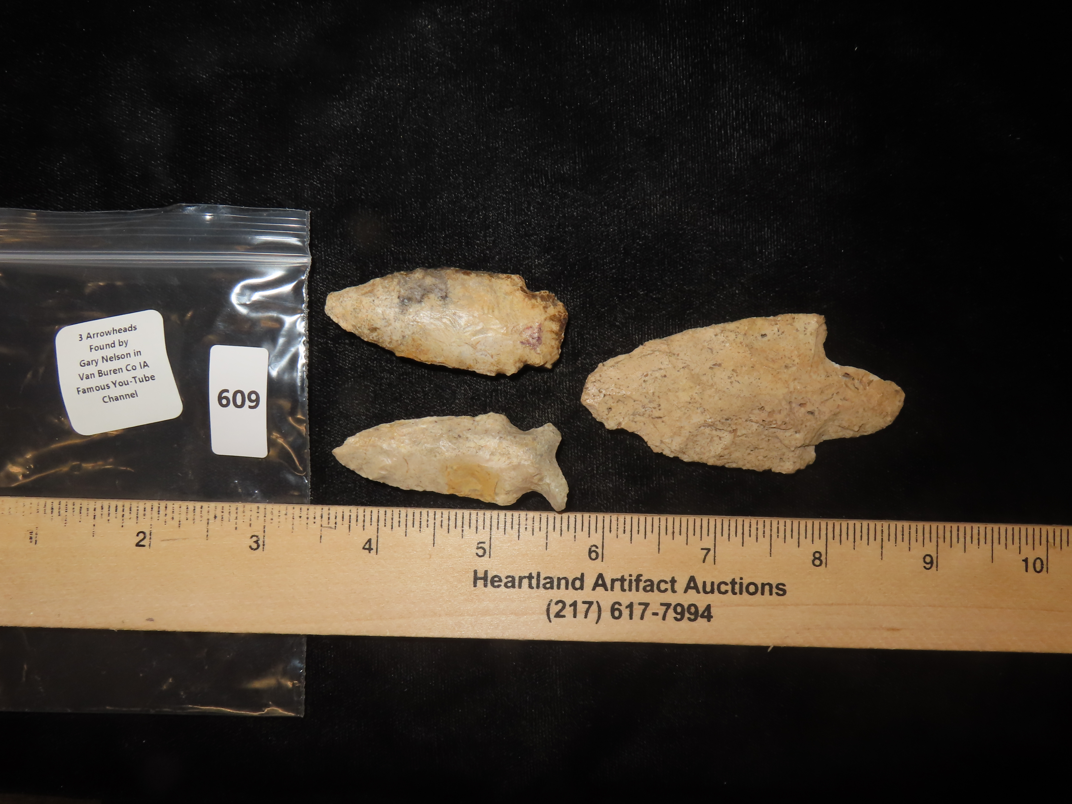 3 Arrowheads, Found by Gary Nelson, Van Buren Co., IA, Famous YouTube Channel