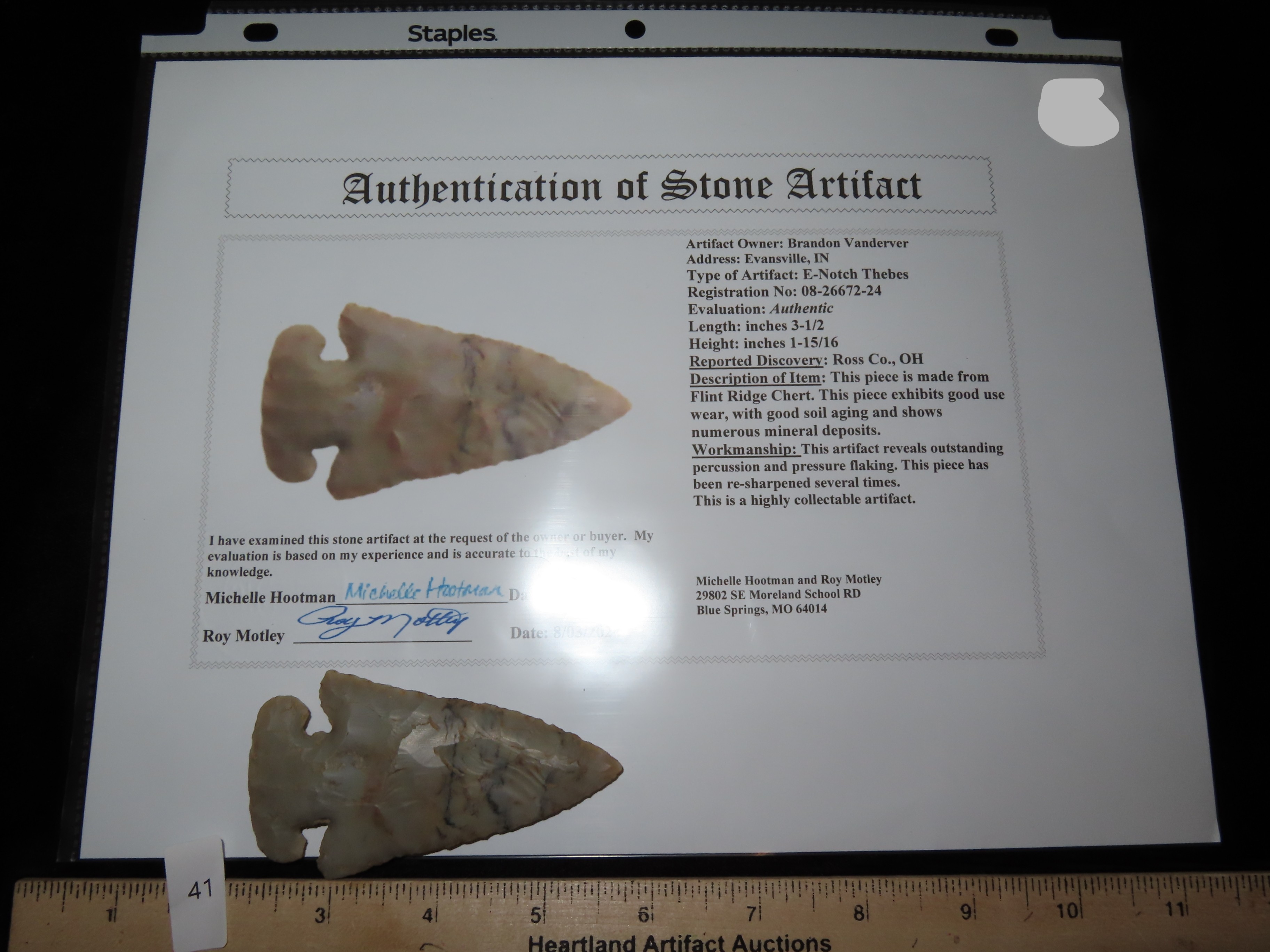 3 1/2″ E-Notch Thebes, Ross Co. Ohio, Flint Ridge, Motley COA. Highly Translucent and Very Colorful Example, ex Jan Sorgenfri, ex Gordon Noakes, Outstanding Example!