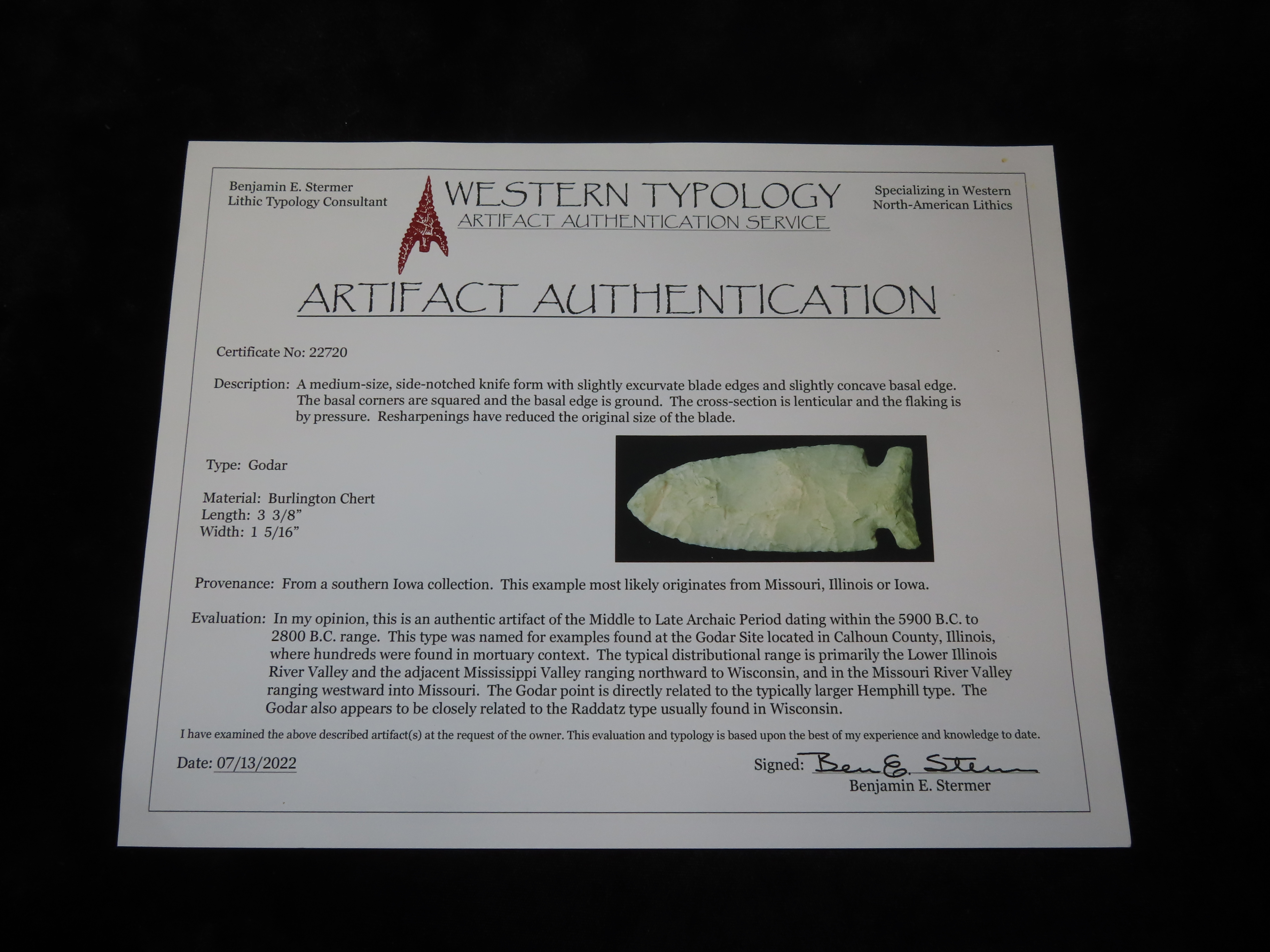3 3/8″ Godar, Stermer COA, From a Southern Iowa Collection, Likely Found in the Missouri/Illinois/Iowa Area