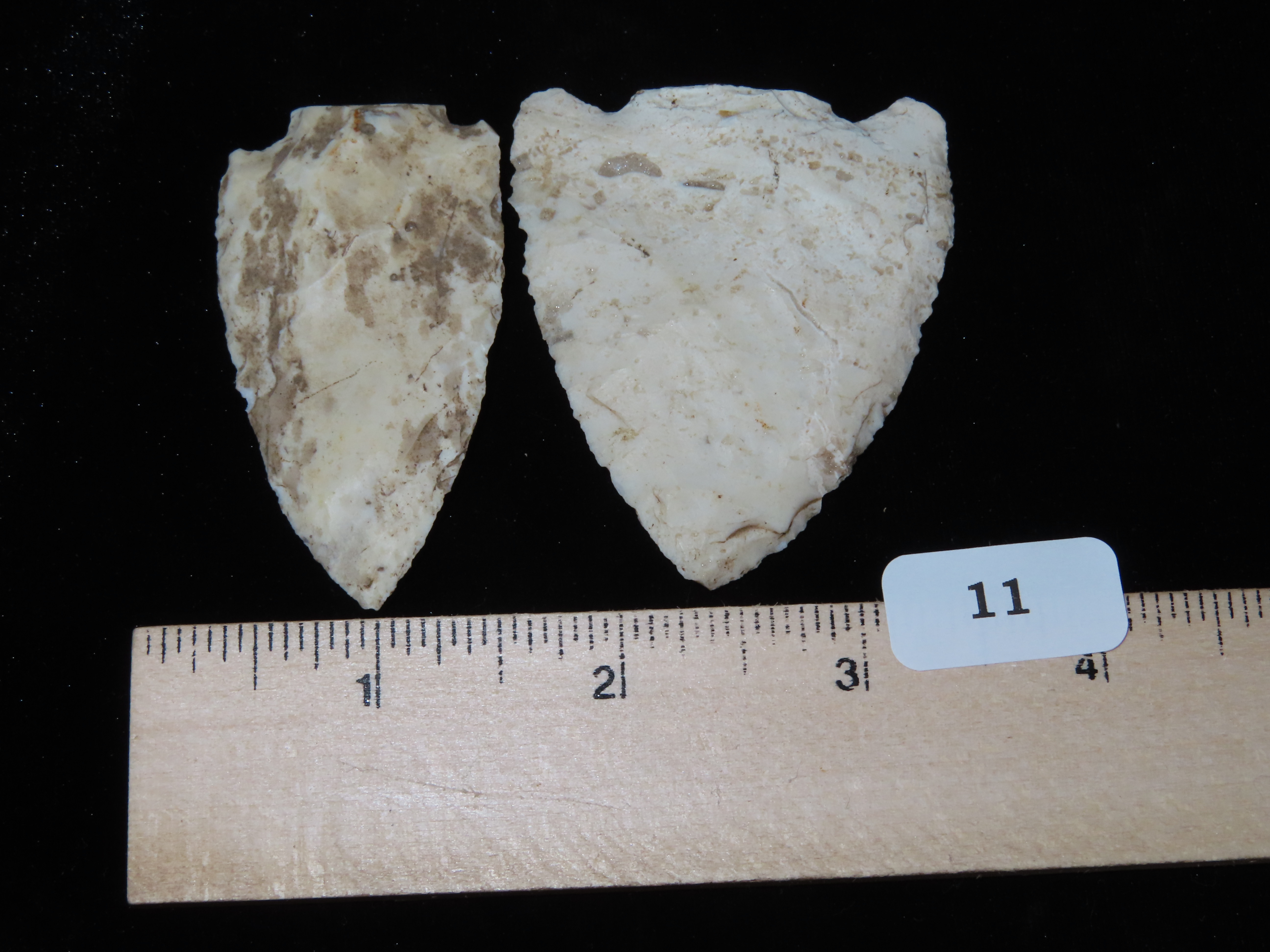 Lot of 2 Snap Base Arrowheads, Found By Josh Walker 3 Miles South of Lomax, Illinois, Henderson Co., Illinois