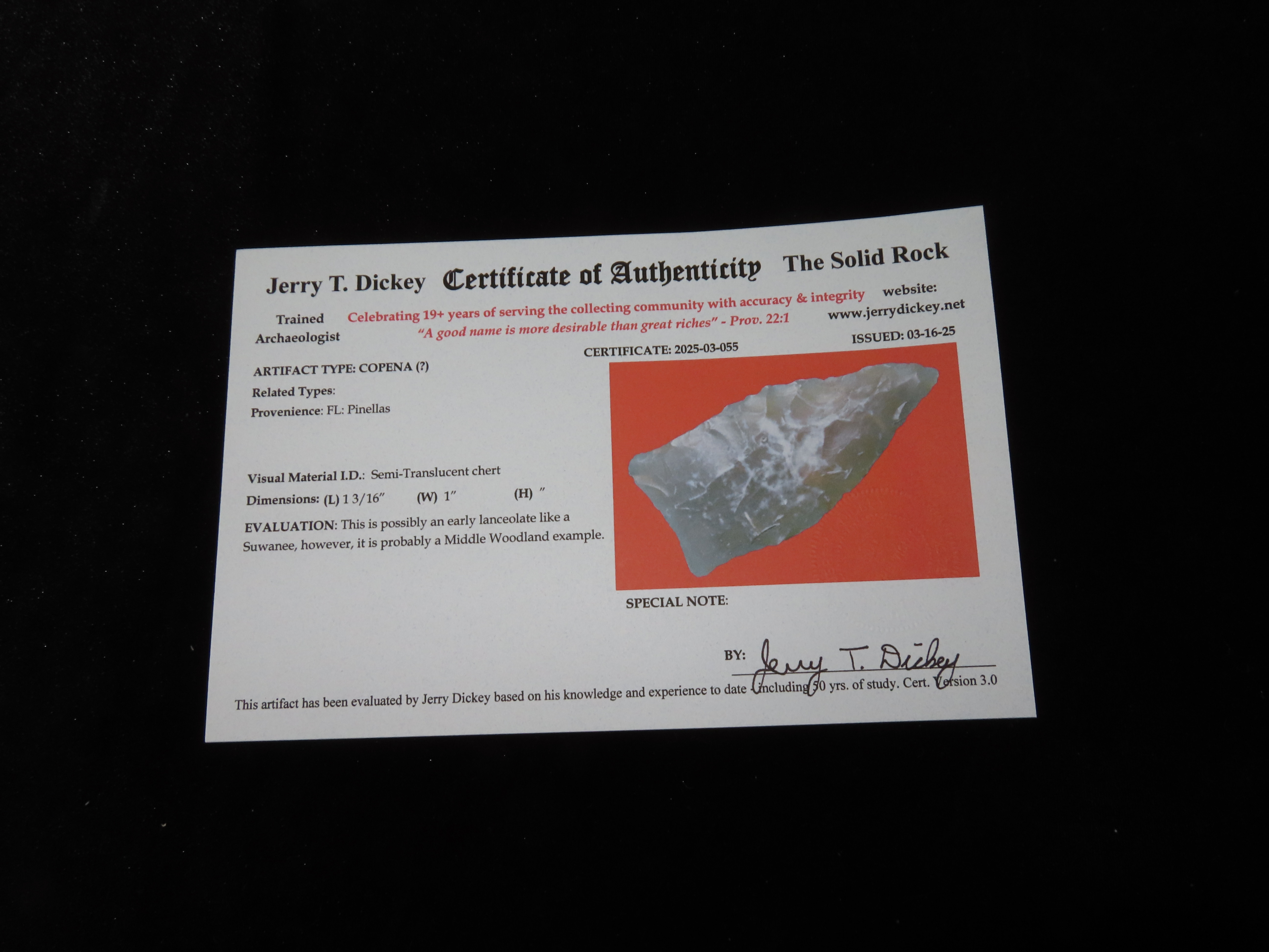 1 3/16″ Copena, Dickey COA, Pinellas, Florida