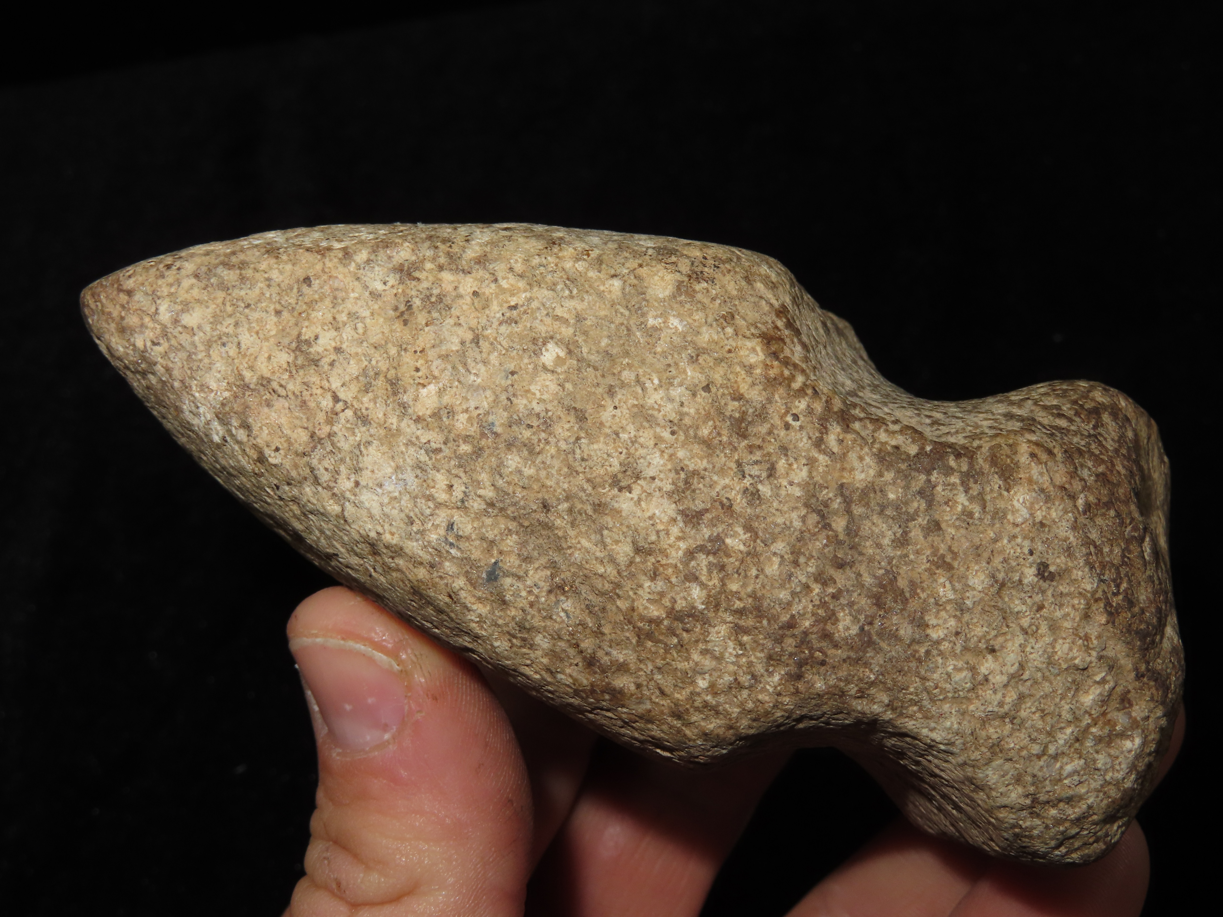 4 1/2″ Very Unique 3/4″ Groove Axe with 3 Nutting Dimples, One on Each Side and One On Top, EX Stamper Collection, Found in Greene Co., Illinois