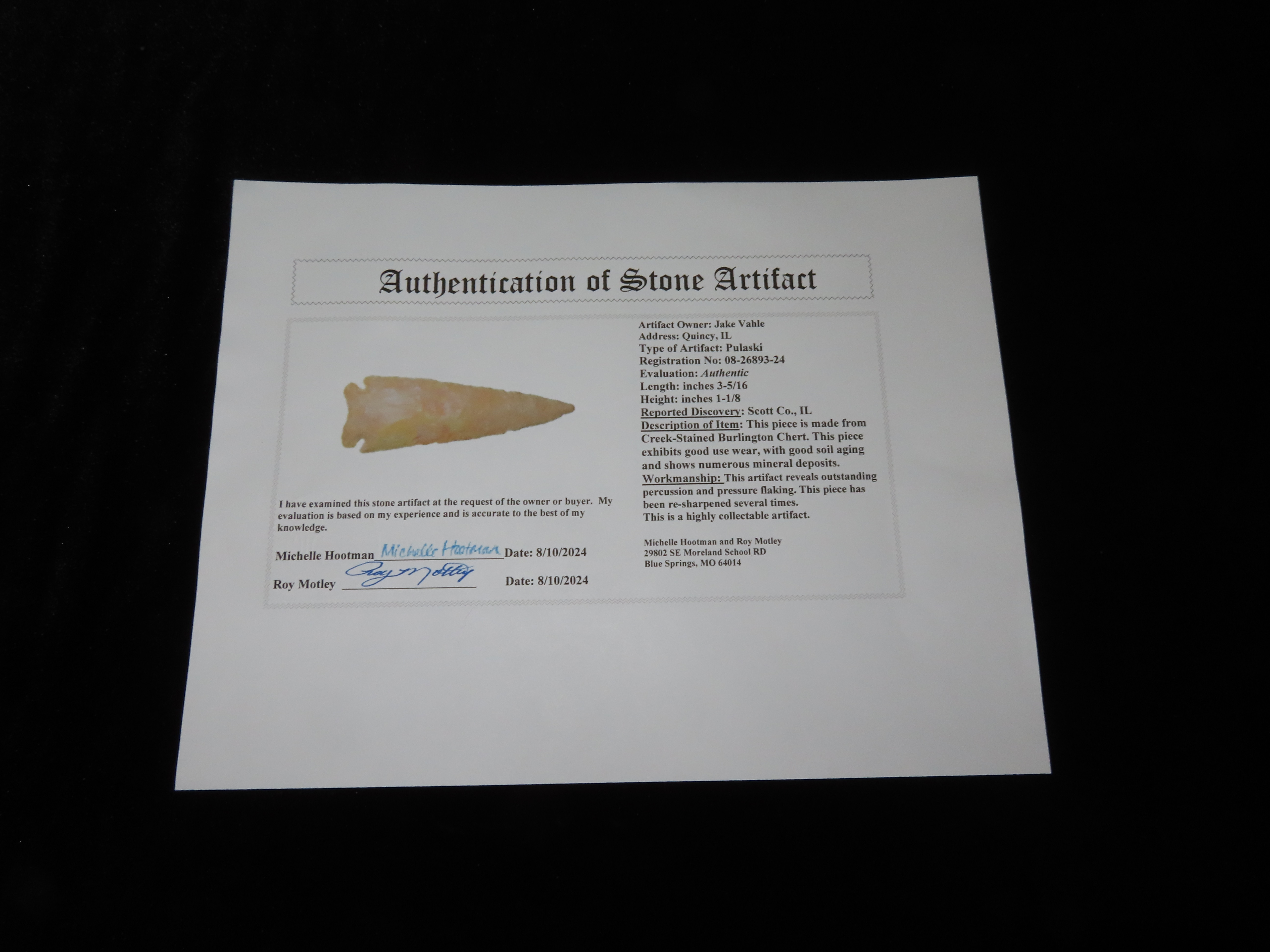 3 5/16″ Pulaski Pt., Motley COA, Scott Co., Illinois