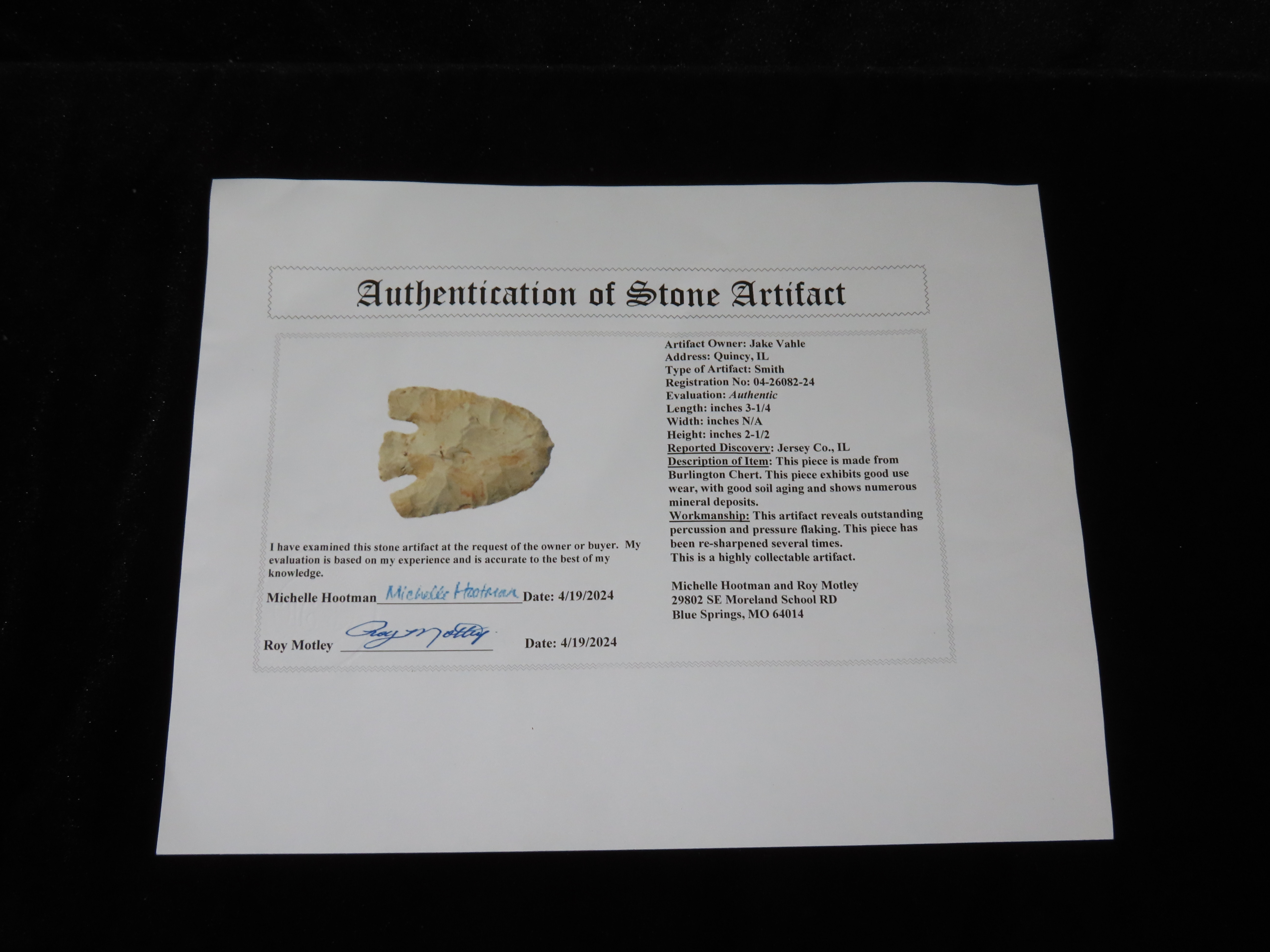 3 1/4″ Smith Pt., Motley COA, Jersey Co., Illinois