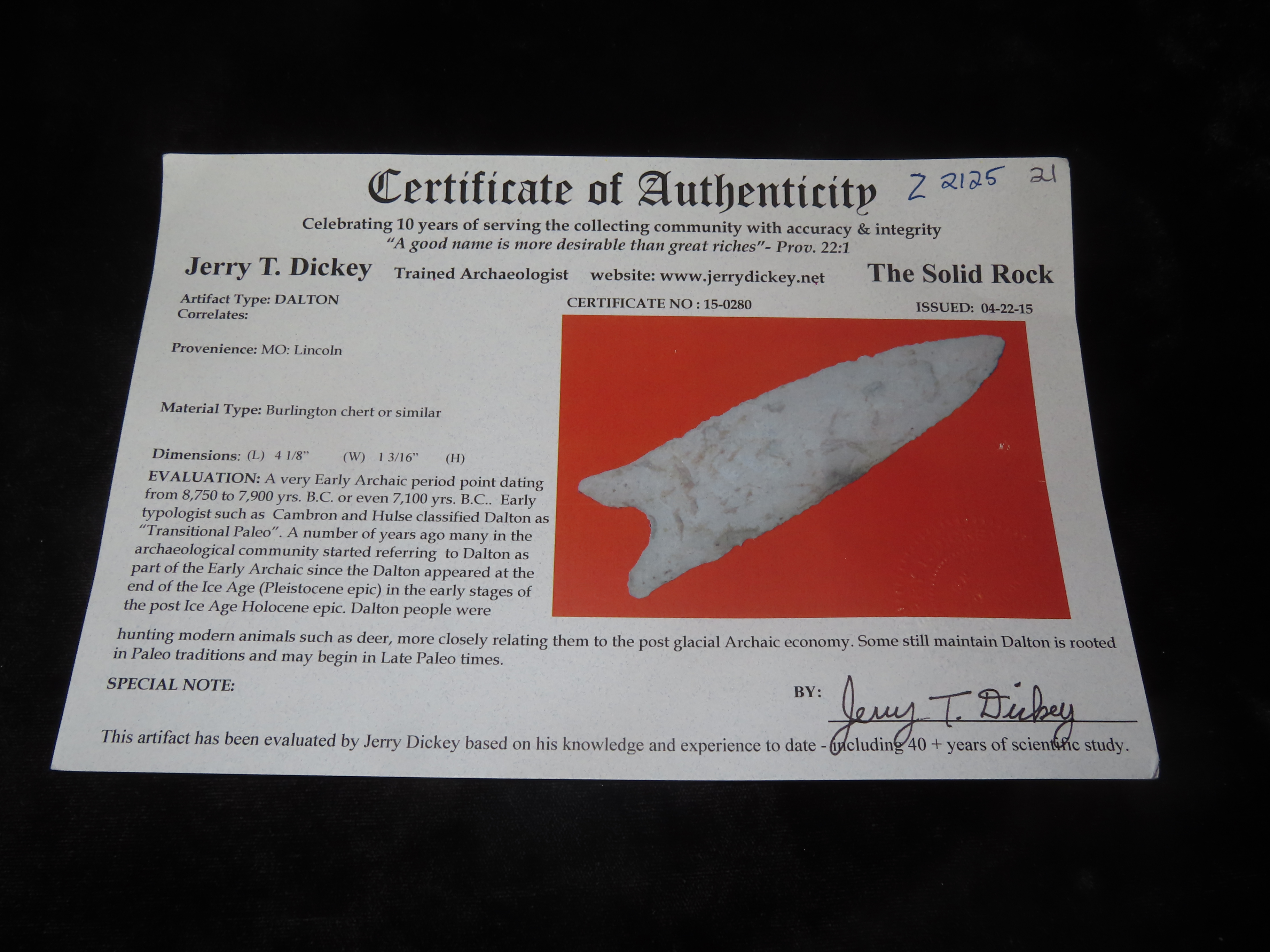 4 1/8″ Dalton, Dickey COA, Lincoln, Missouri