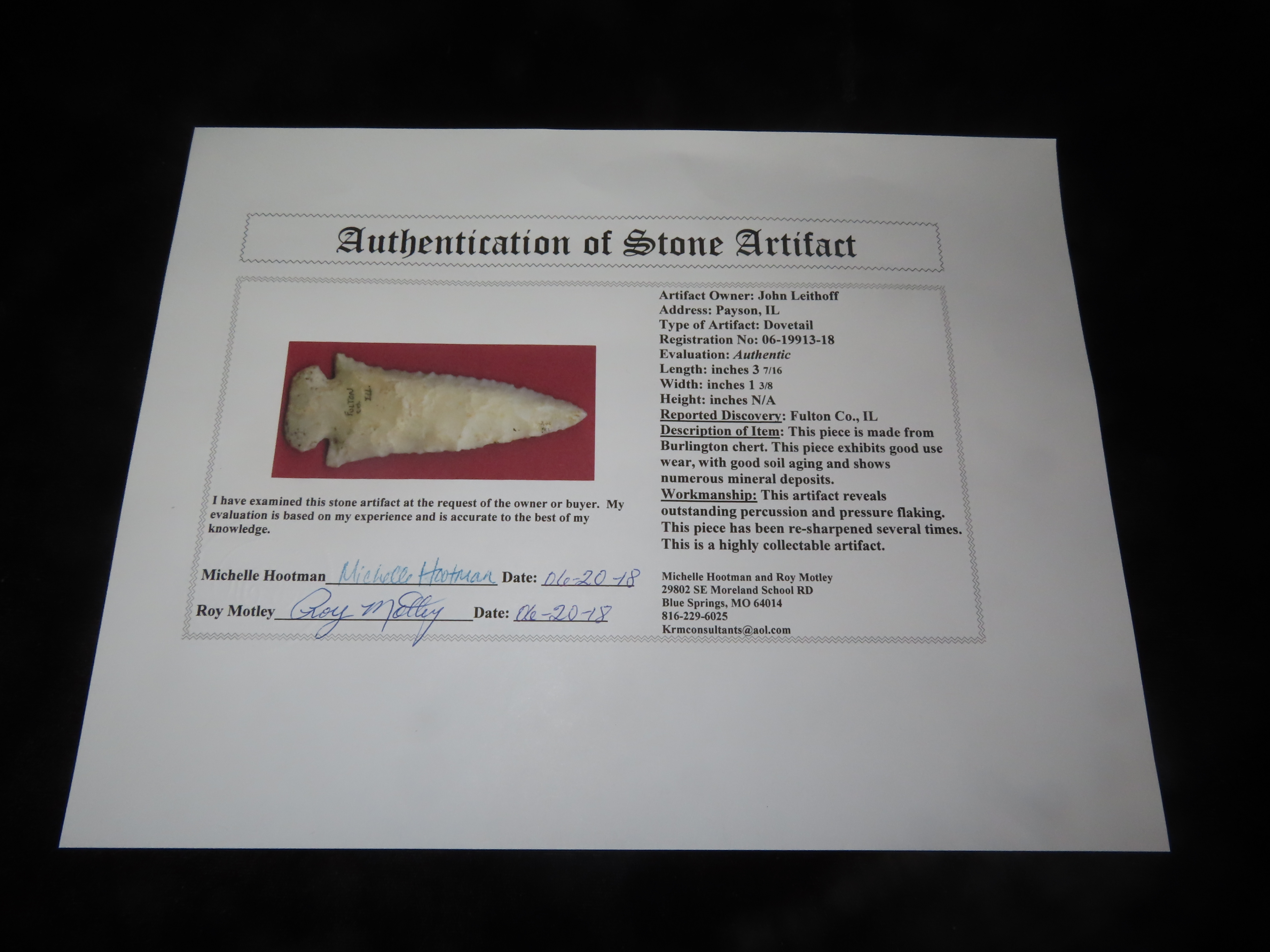 3 7/16″ Dovetail, Motley COA, Fulton Co., Illinois