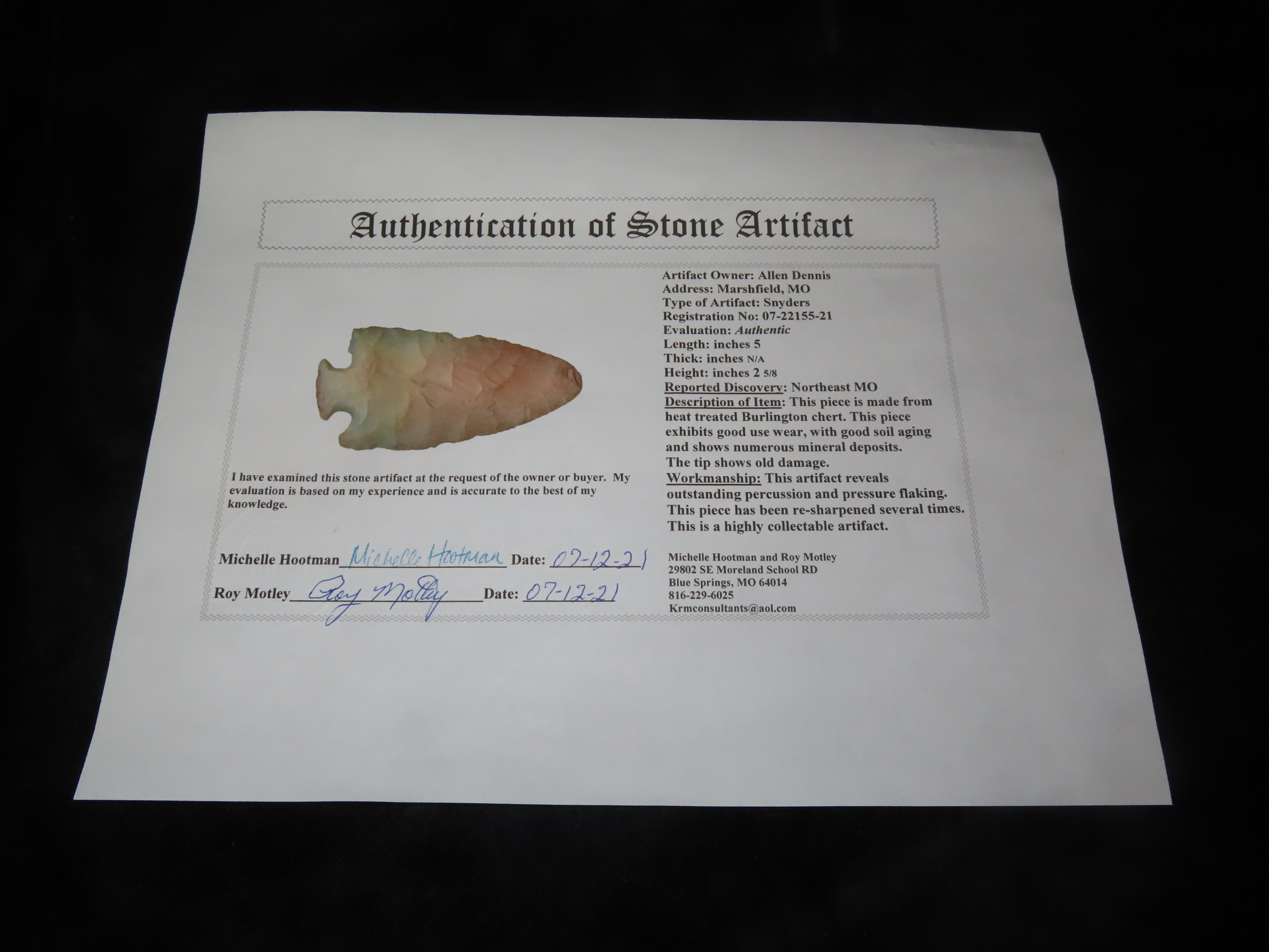 5″ Snyders, Motley COA, Northeast Missouri, Ex Allen Dennis, Ex Herb Mangold Collections