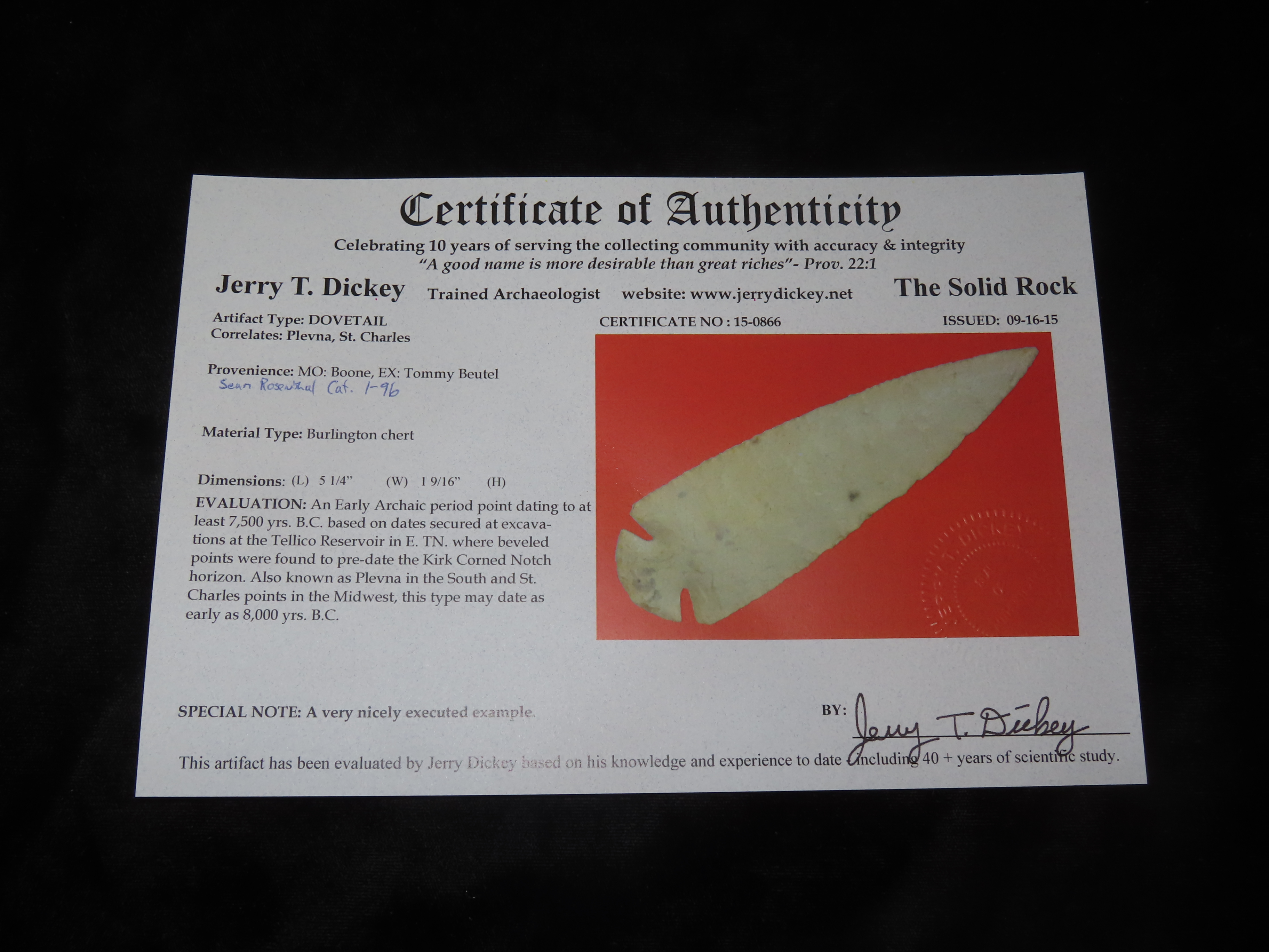 5 1/4" Dovetail, Dickey COA,Boone, Missouri-Pictured on Front Cover of Number 1, 2025 Prehistoric American Magazine, EX Tommy Beutel, Ex Sean Rosenthal