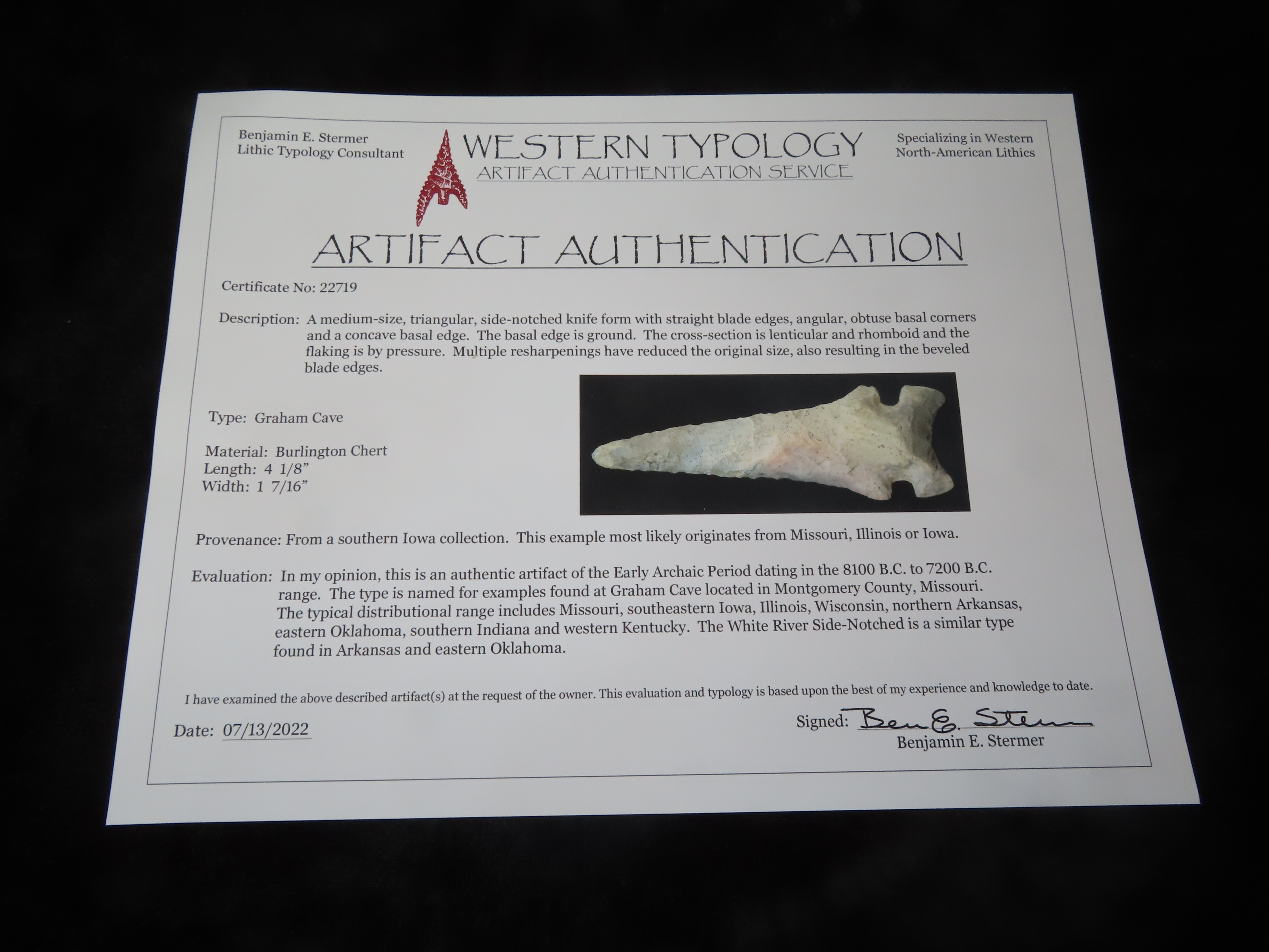 4 1/8″ Graham Cave, Stermer COA, Southern Iowa collection