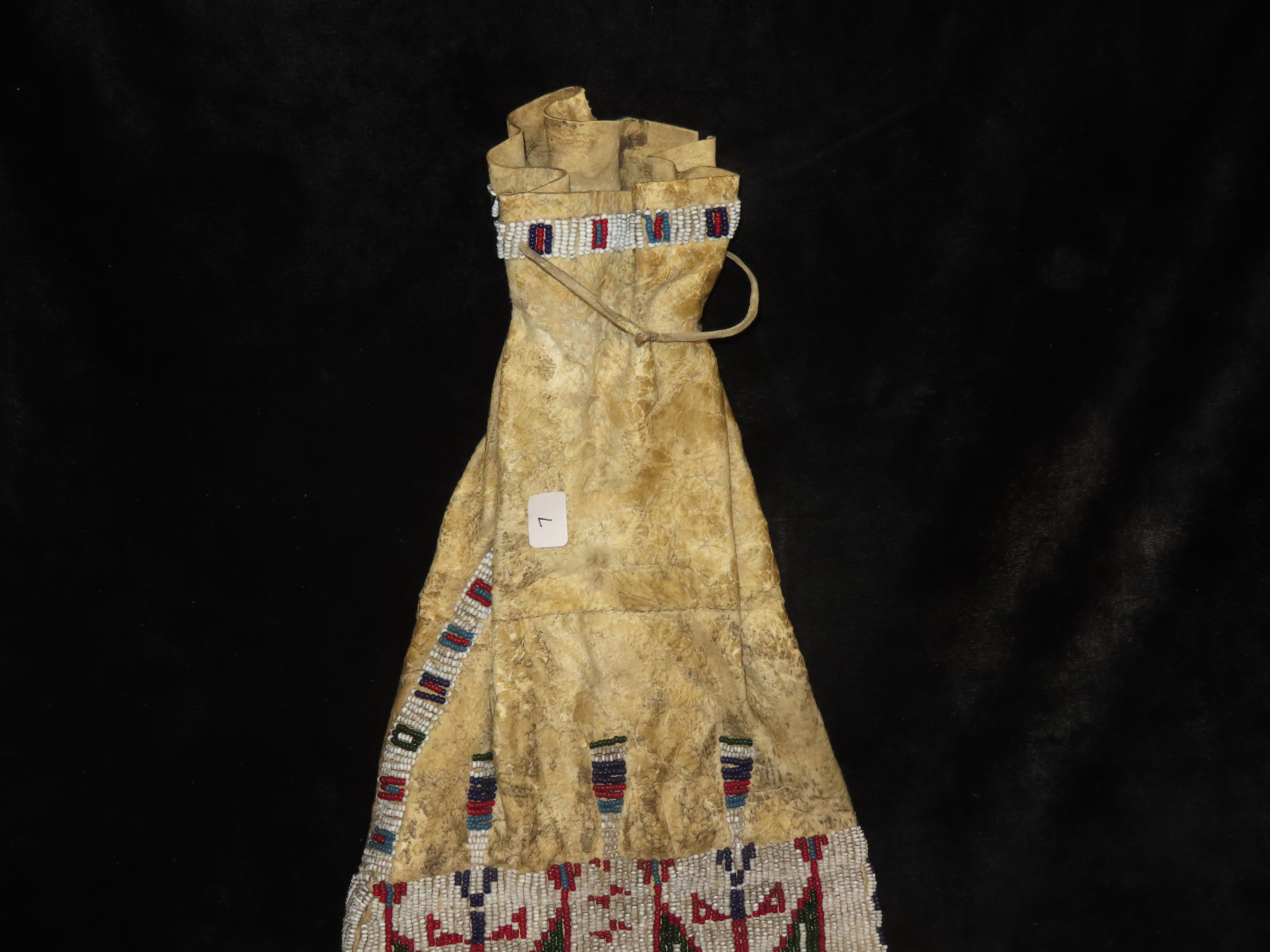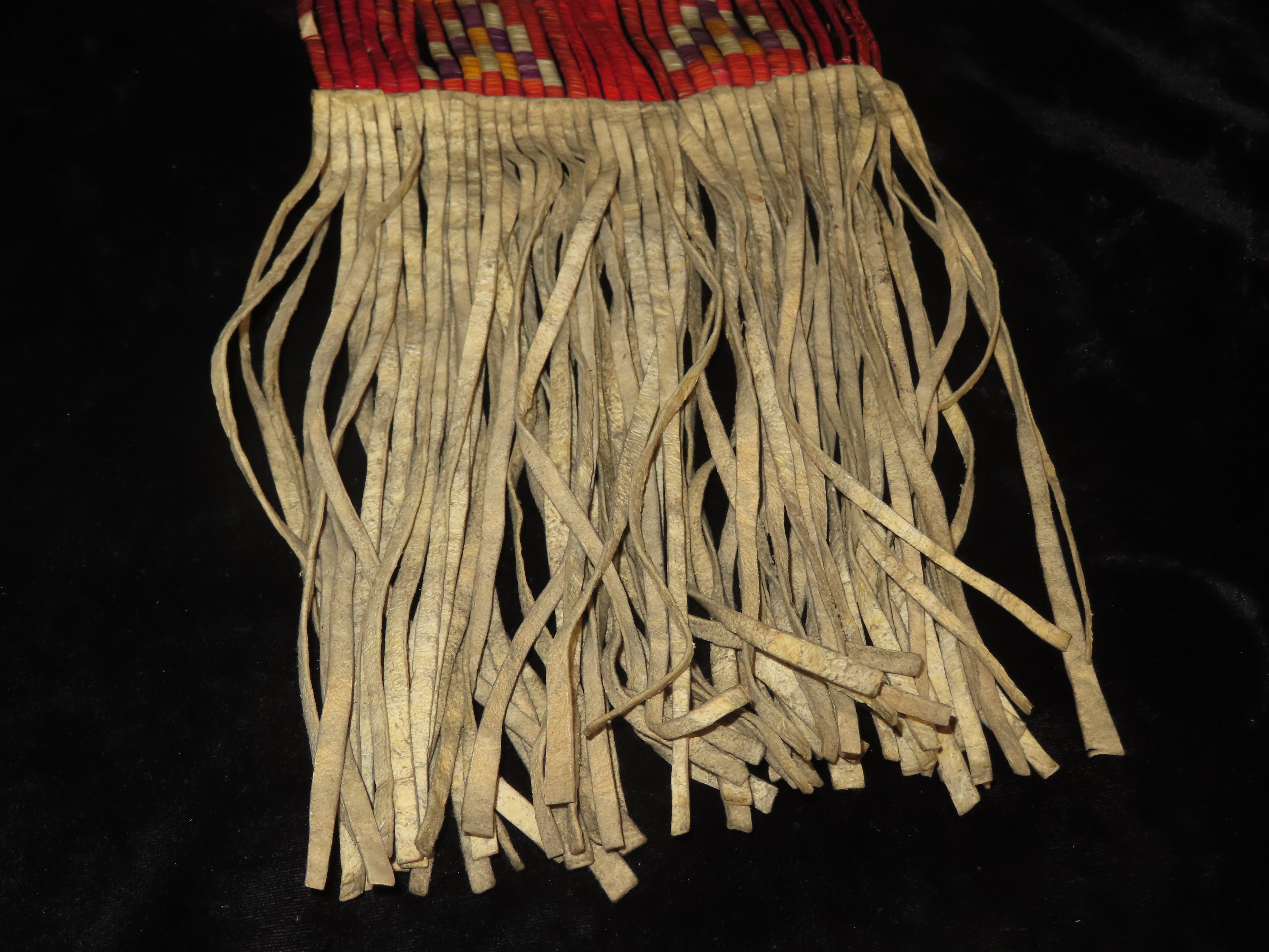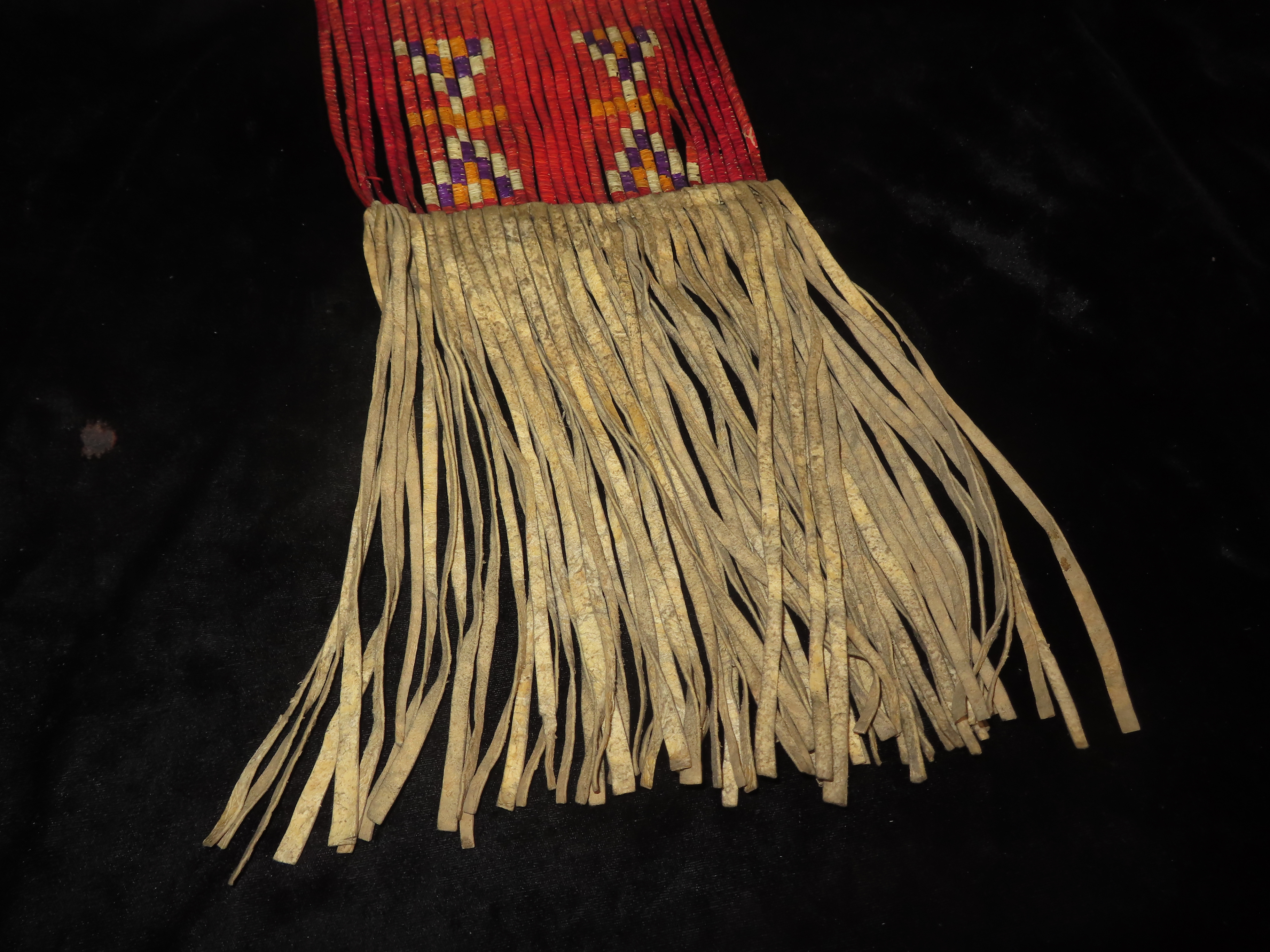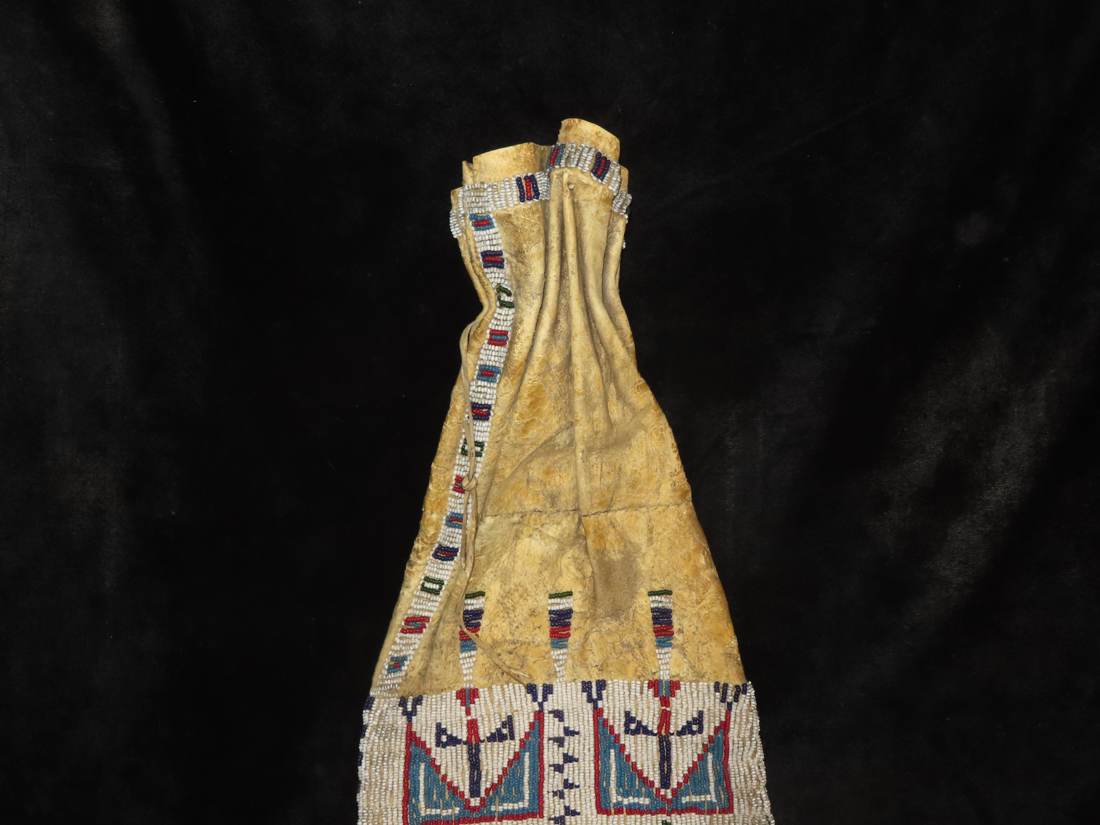 34 7/8″ Beaded and Fringed Sioux Pipe Bag, c. 1890-1910, This bag is in phenomenal shape with minor quill loss. Ex Scott Caruthers Collection