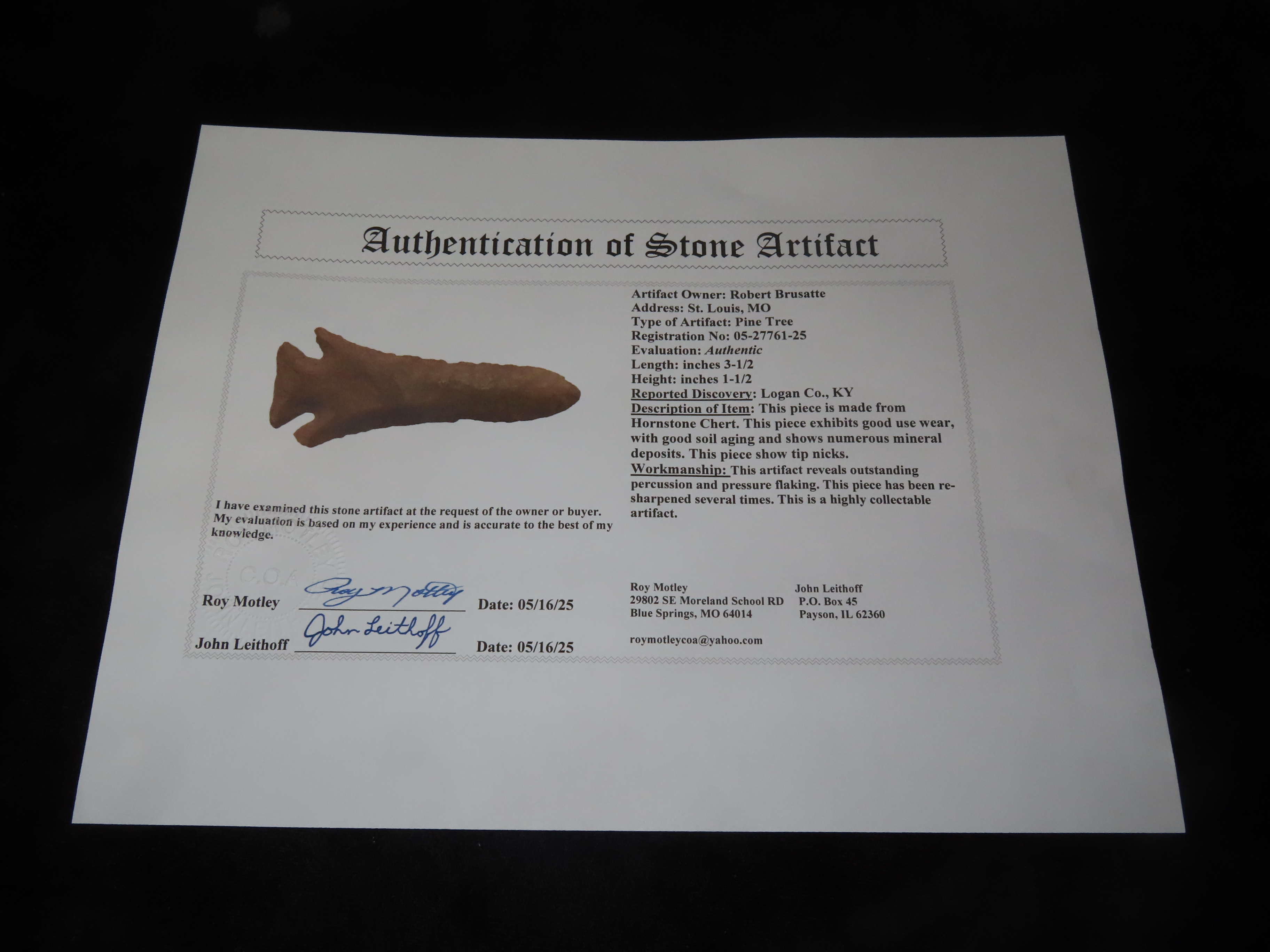 3 1/2" Pine Tree, Motley COA, found in Logan Co., Kentucky, Ex Robert Brusatte Collection