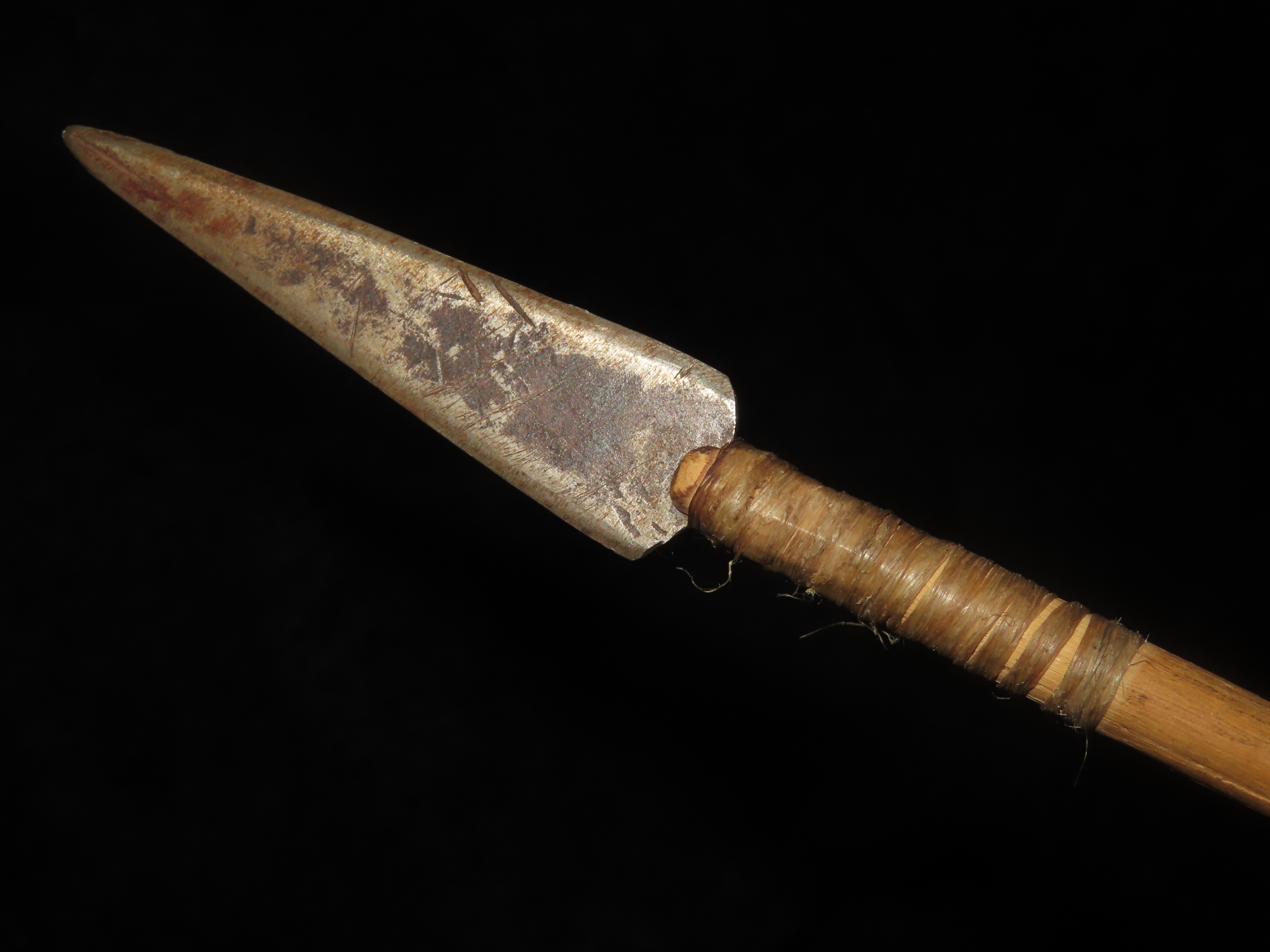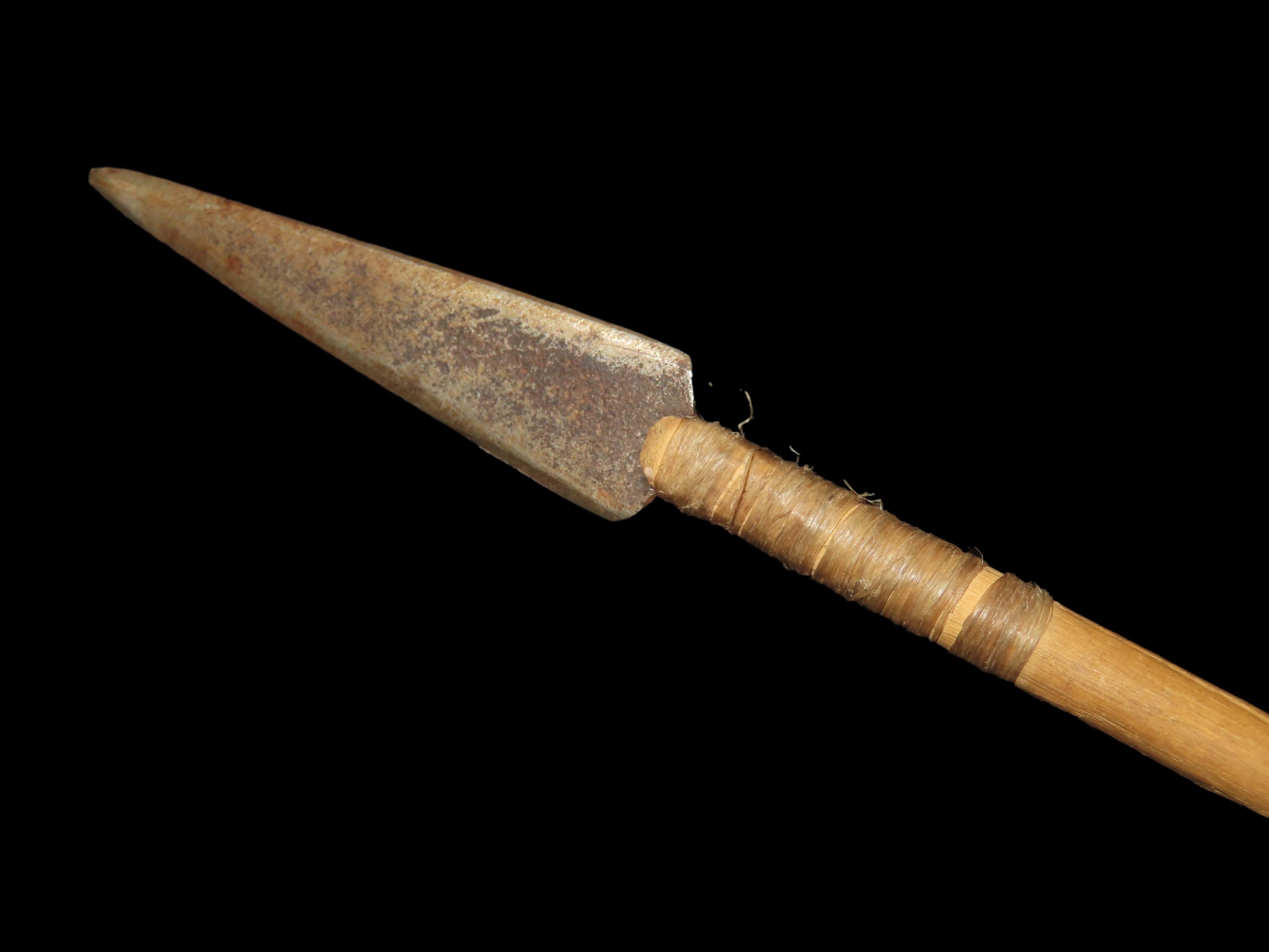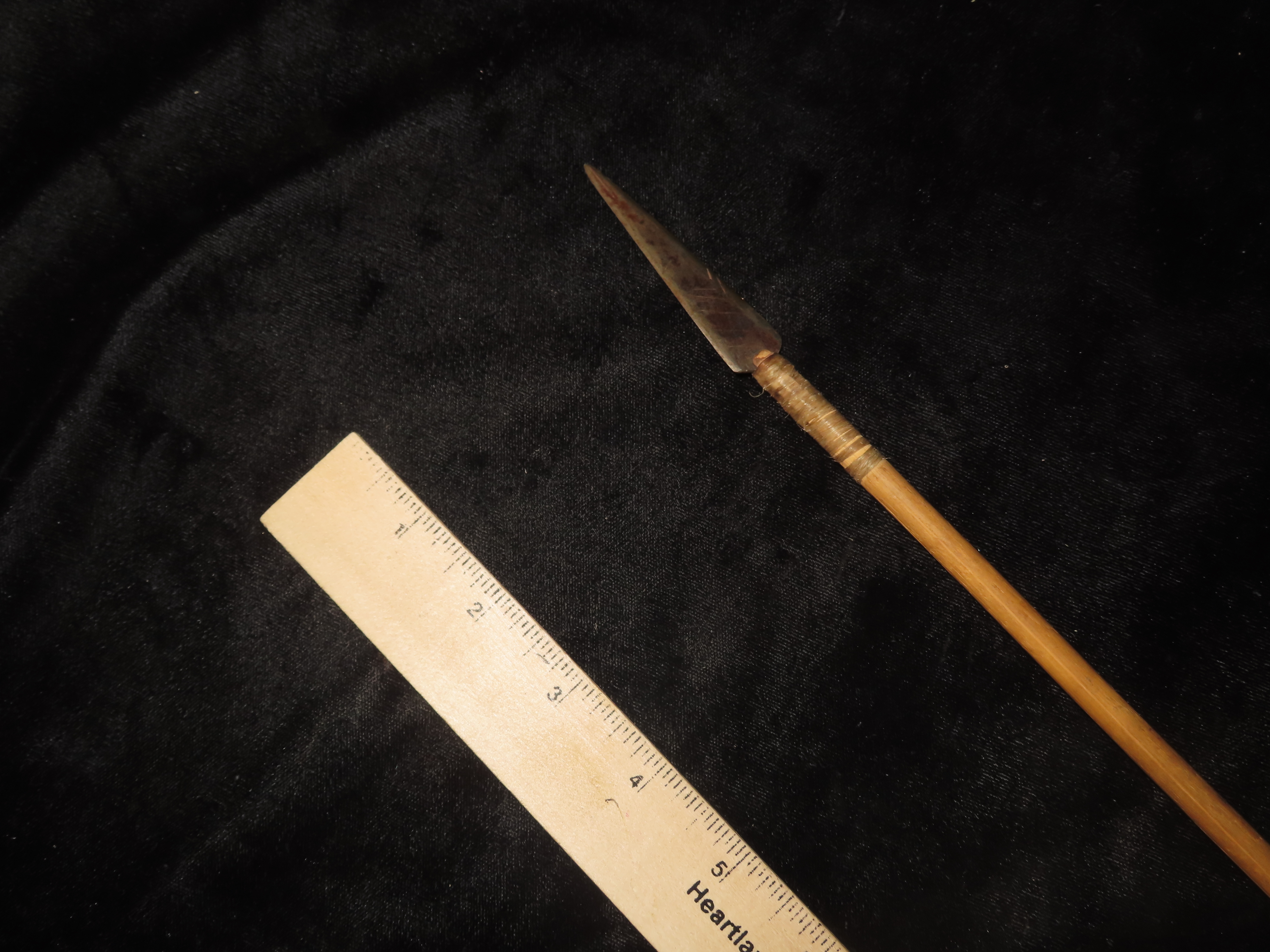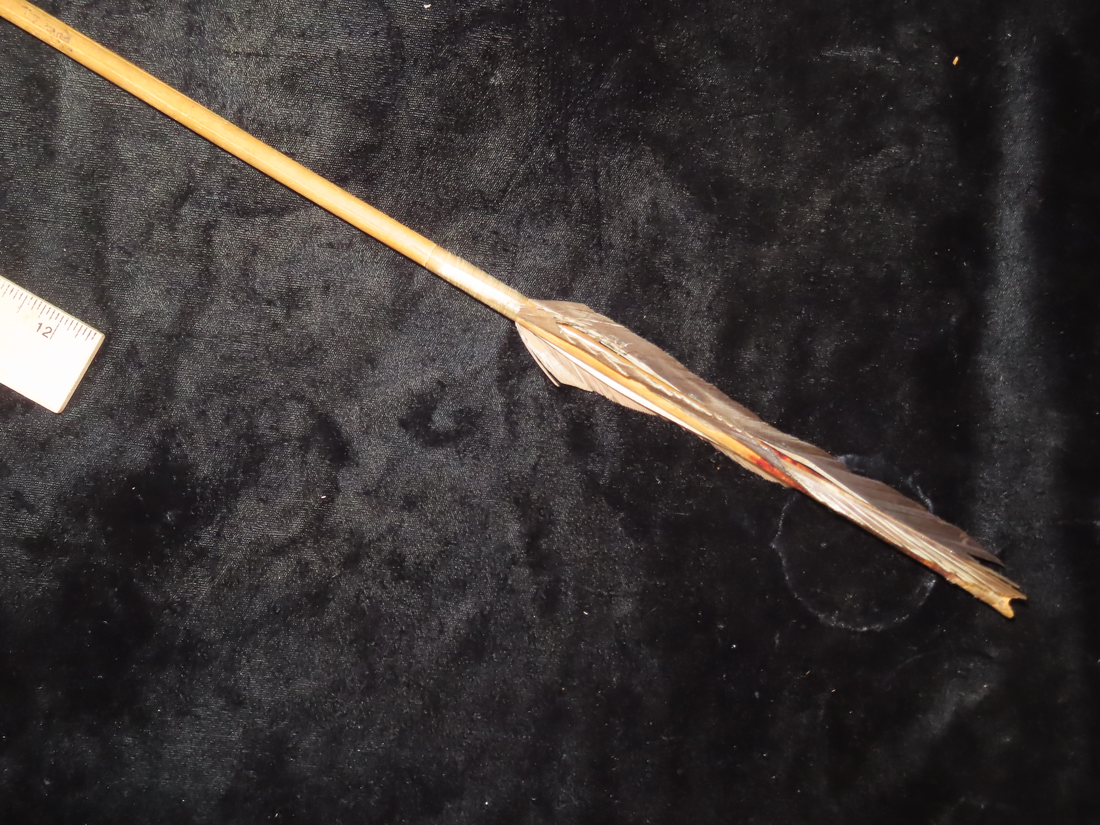 24 5/8″ Authentic Comanche Arrow, c 1860-1880, Sinew wrapped, Fletched w/painting under fletching, with sinew wrapping and metal trade point, Ex John Welsch, Ex Scott Carruthers Collections