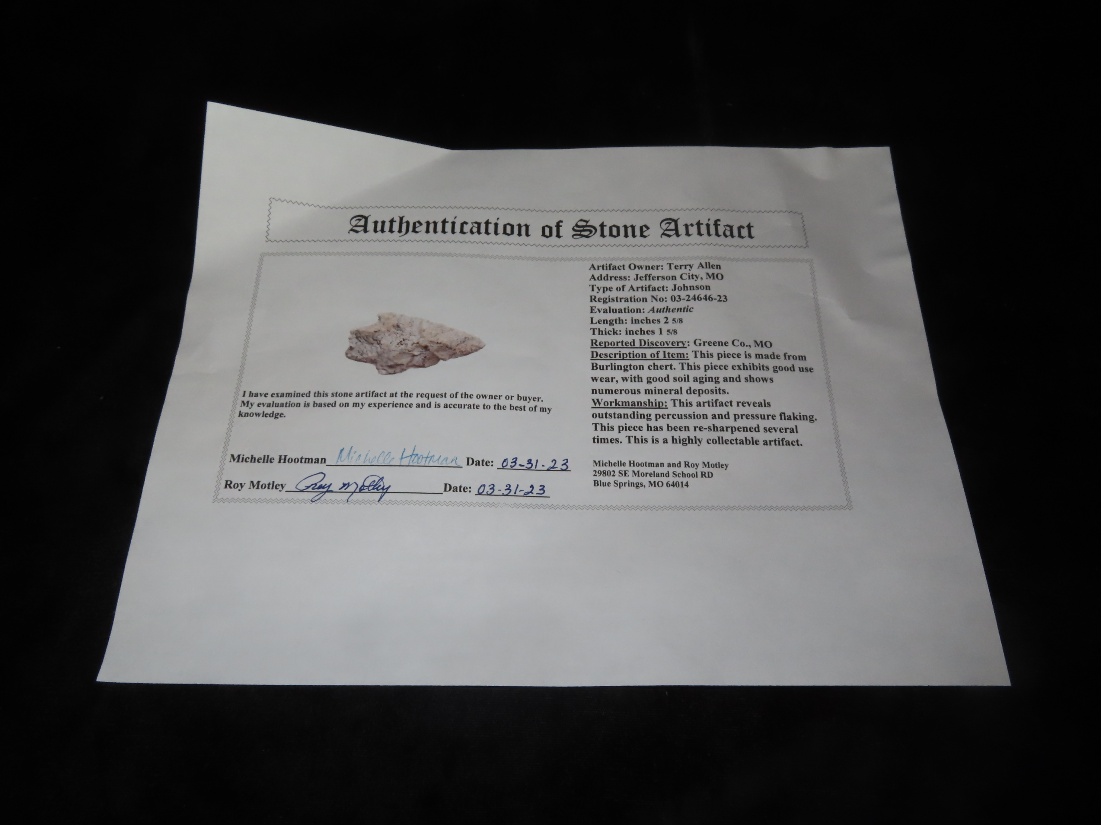 2 5/8" Burlington Chert Johnson, Motley COA, Greene County Missouri