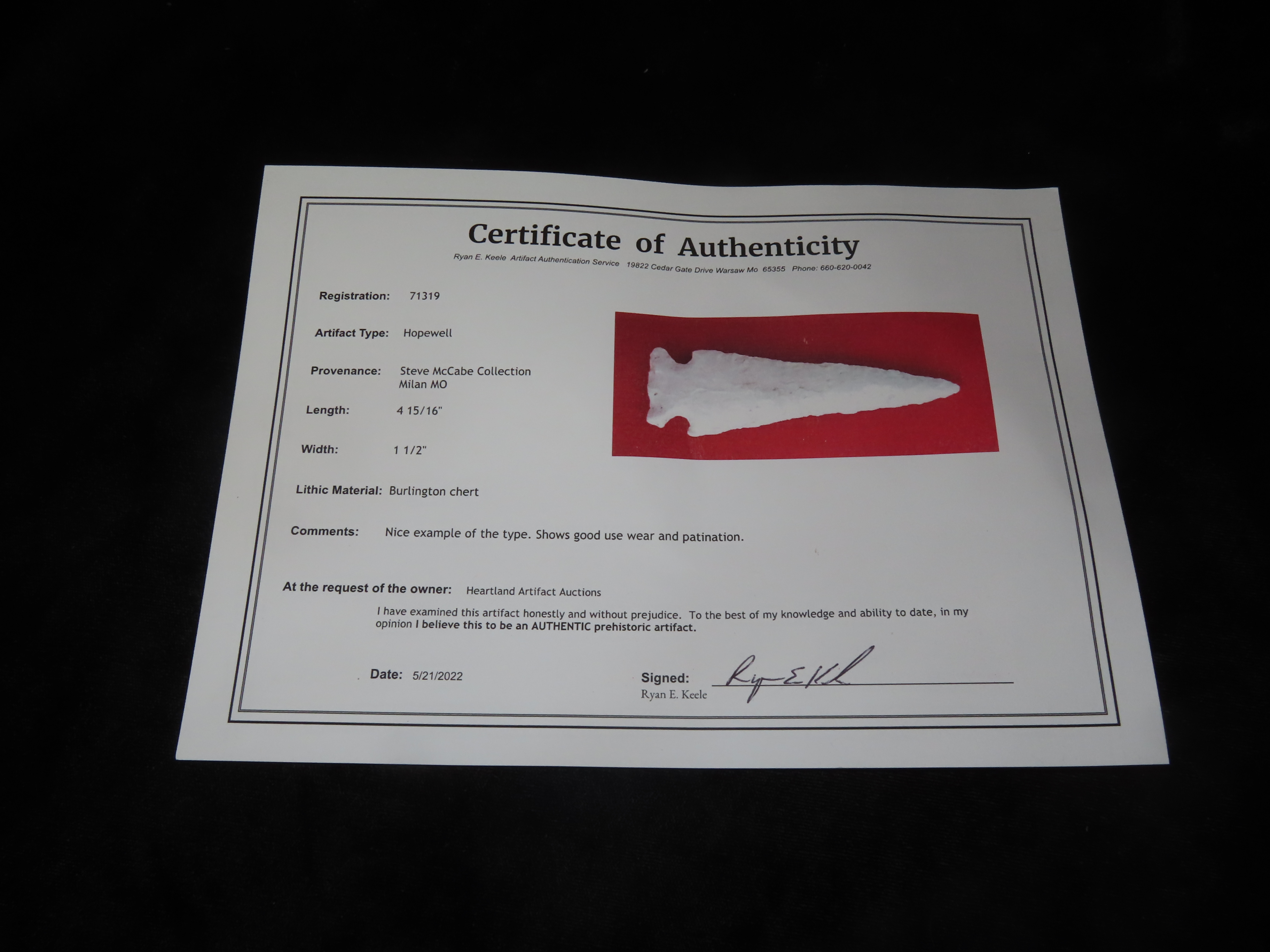 4 15/16" Burlington Chert Hopewell, Keele COA