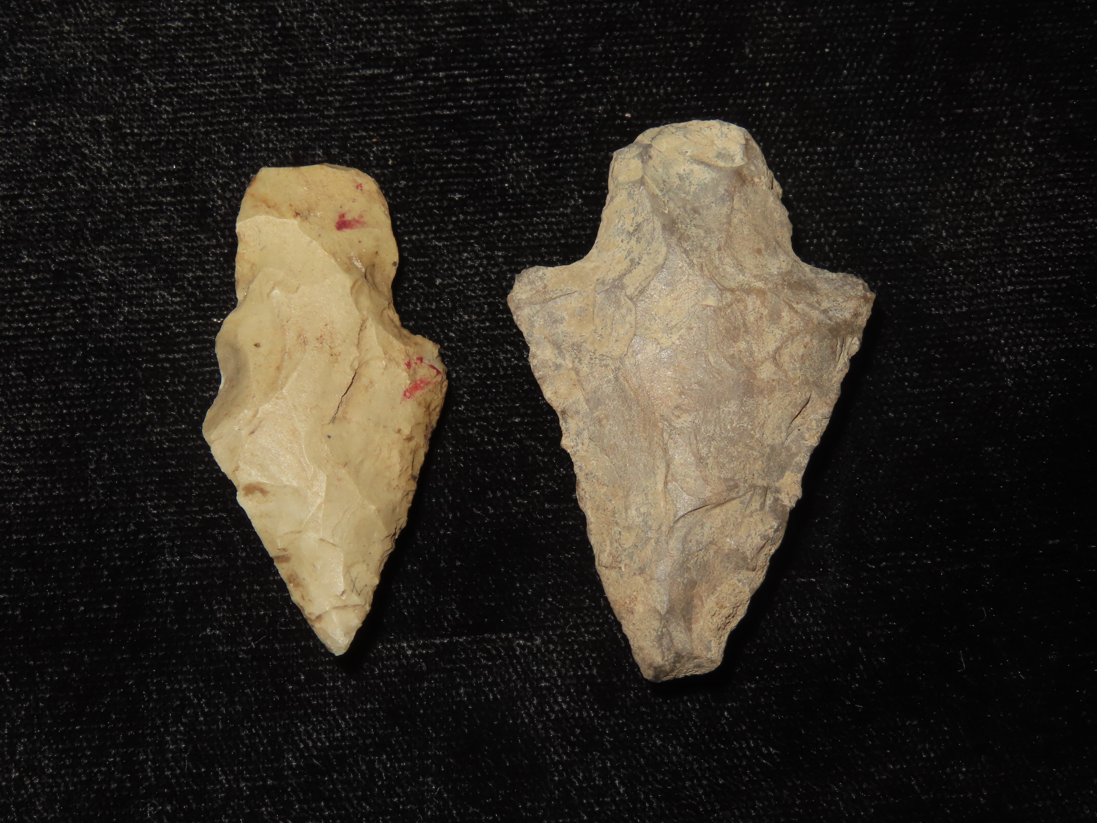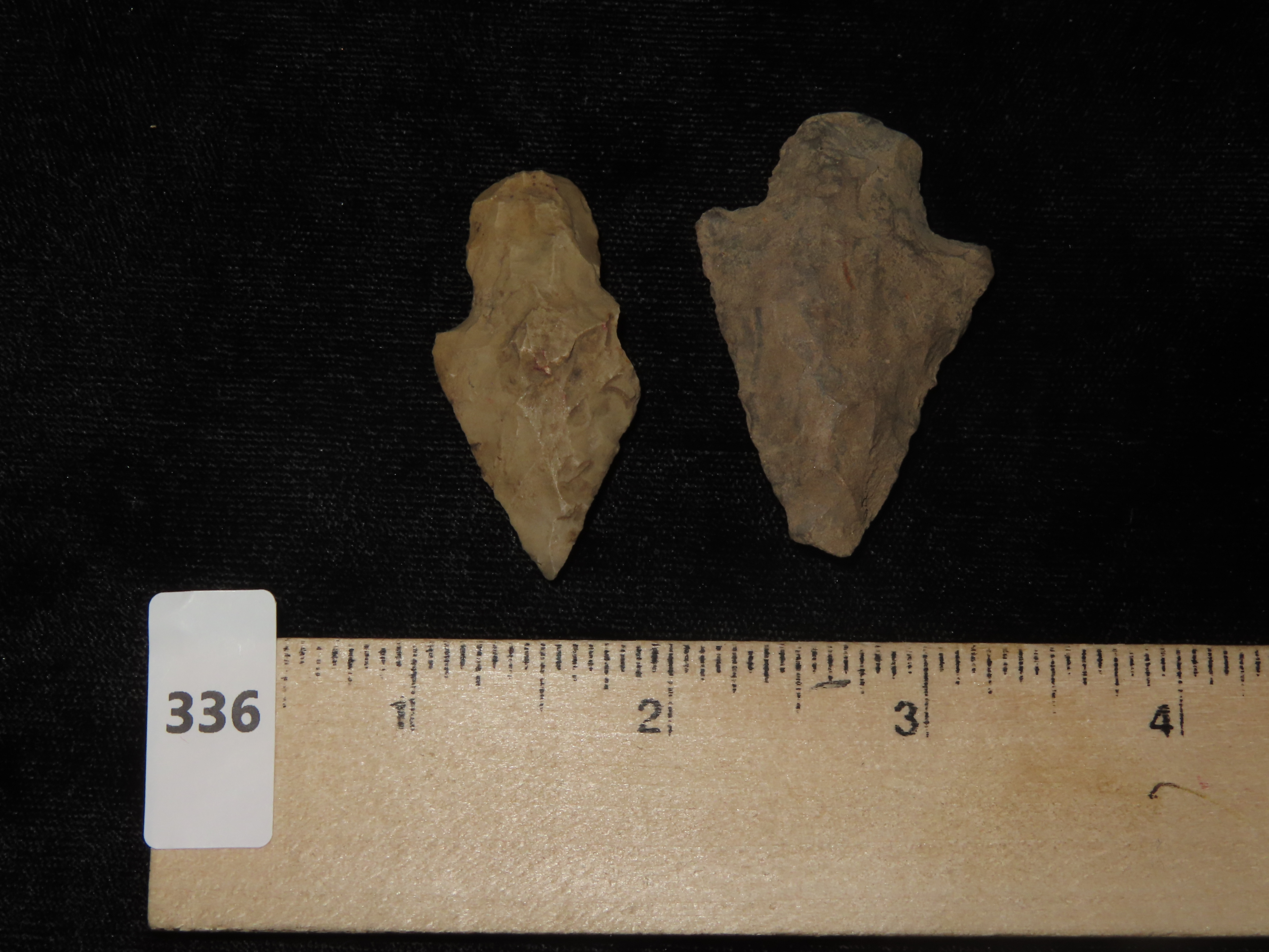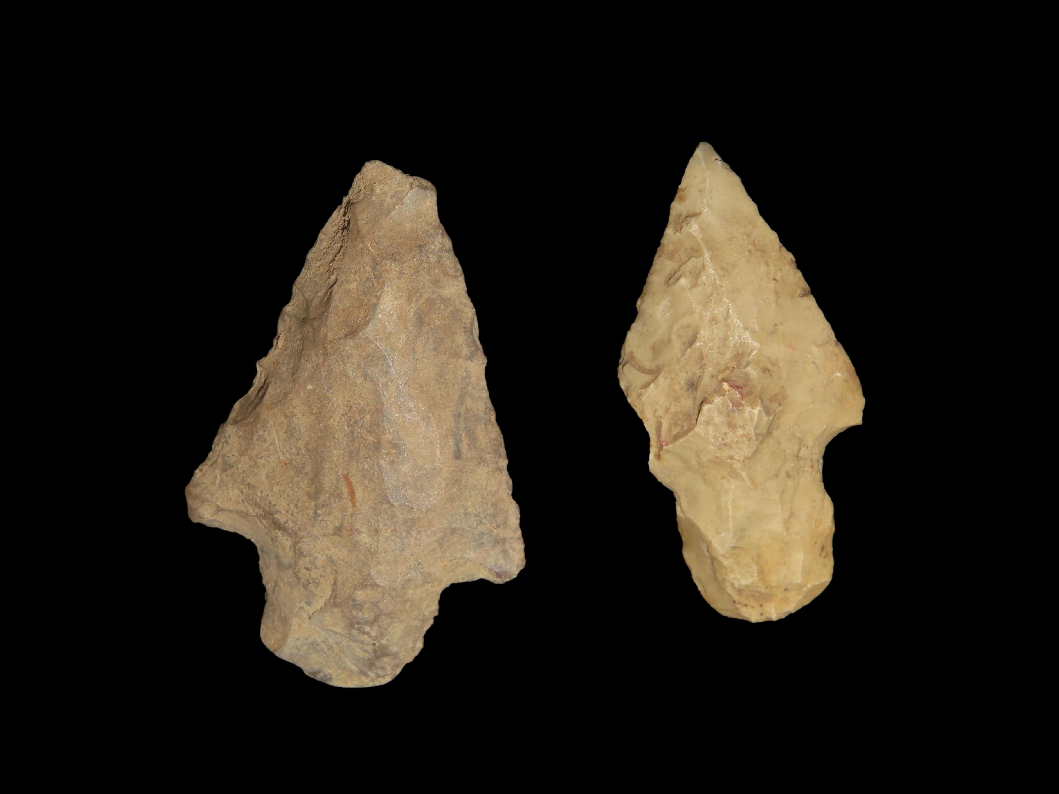 Set of 2 Arrowheads, Mixed between Illinois, St. Clair Co. MO, and Indiana, Ex Brad Hawking Lithics