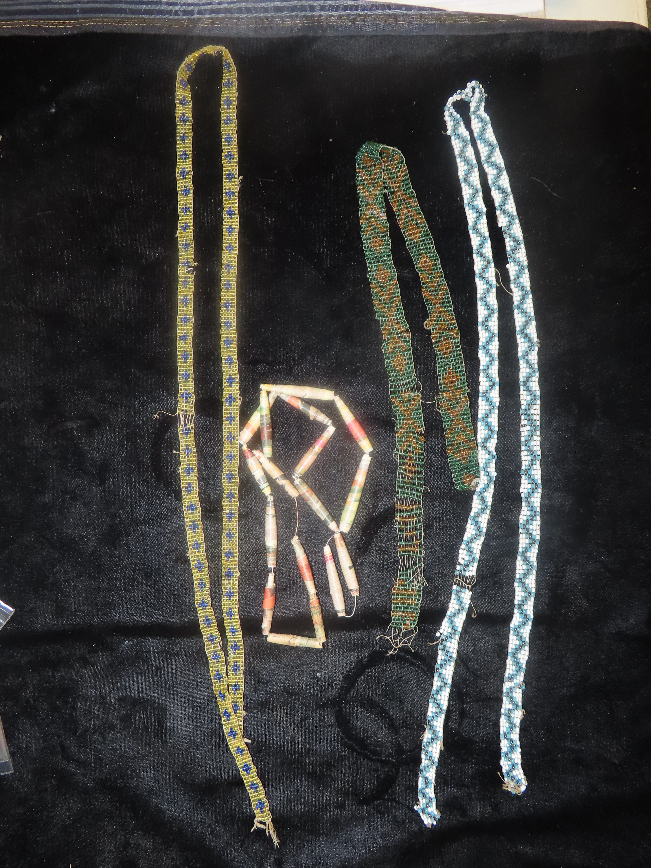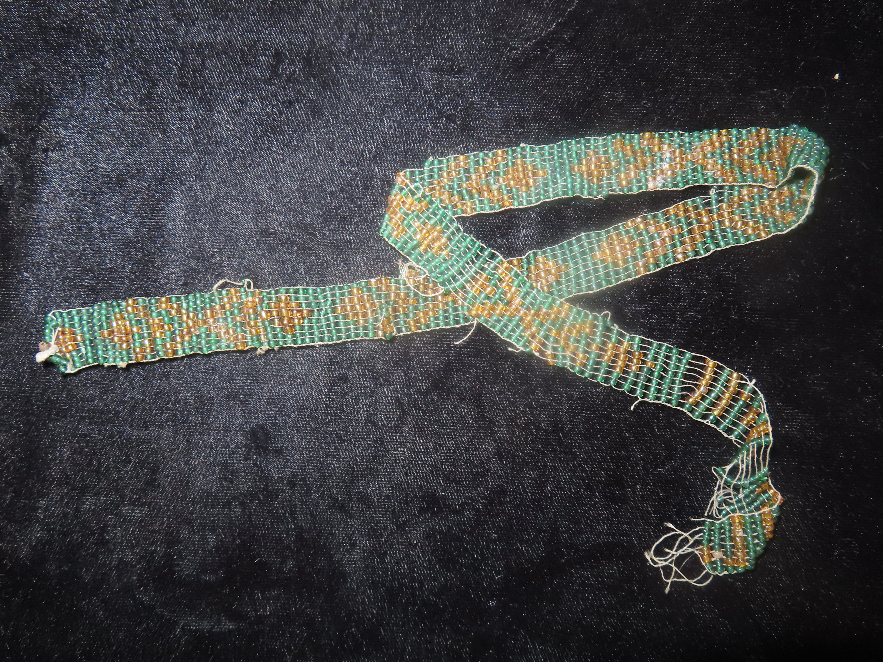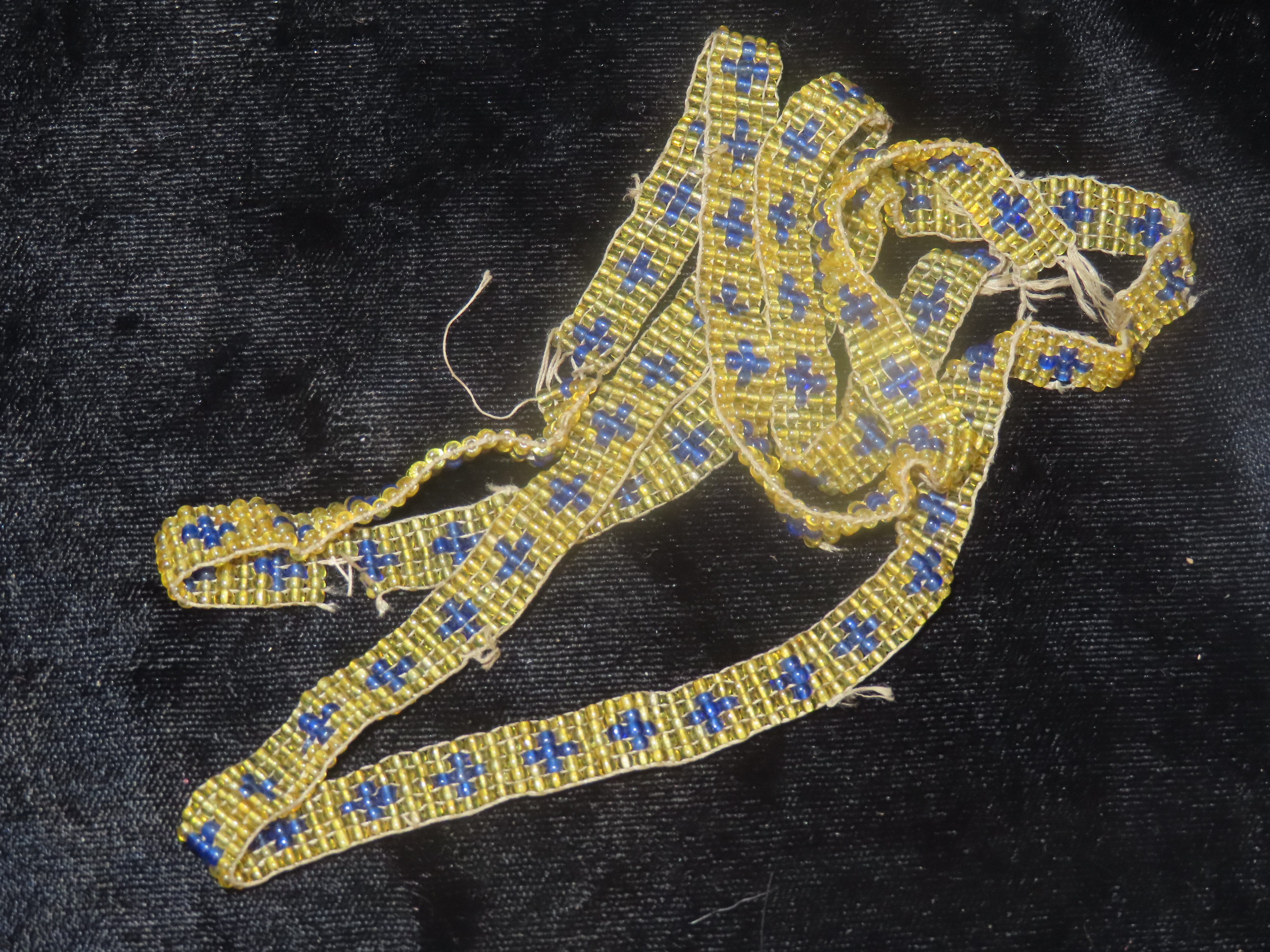 Small Jewelry Box Containing strand of Paper Beads, and Hand Beaded trim pcs, and several metal(maybe sterling silver?) beads