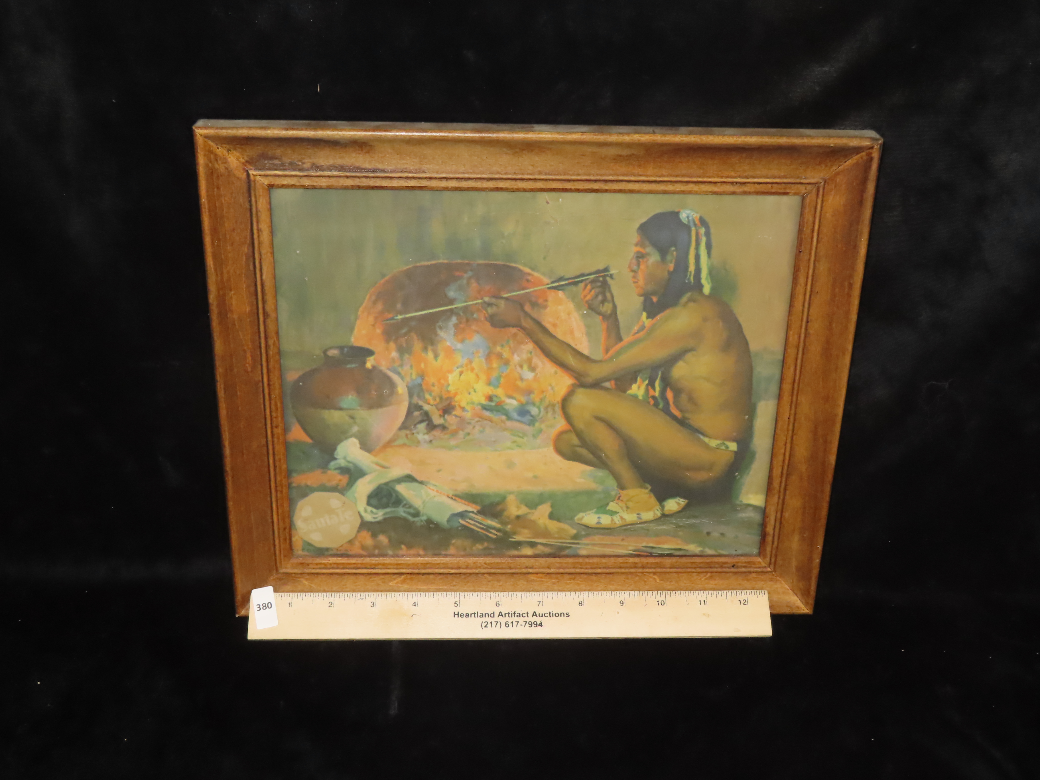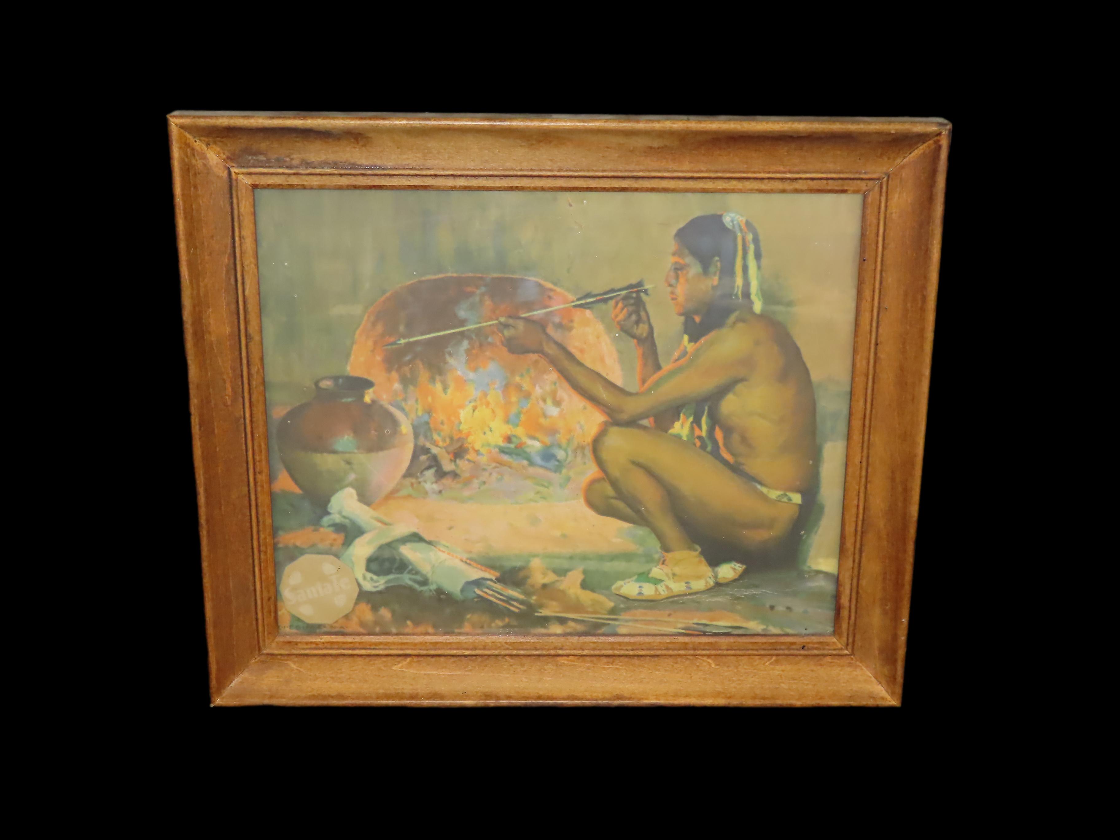 Eanger Irving Couse (1866–1936) “The Arrow Maker” framed print-Sante Fe RR Advertising-14 1/4″ x 12″