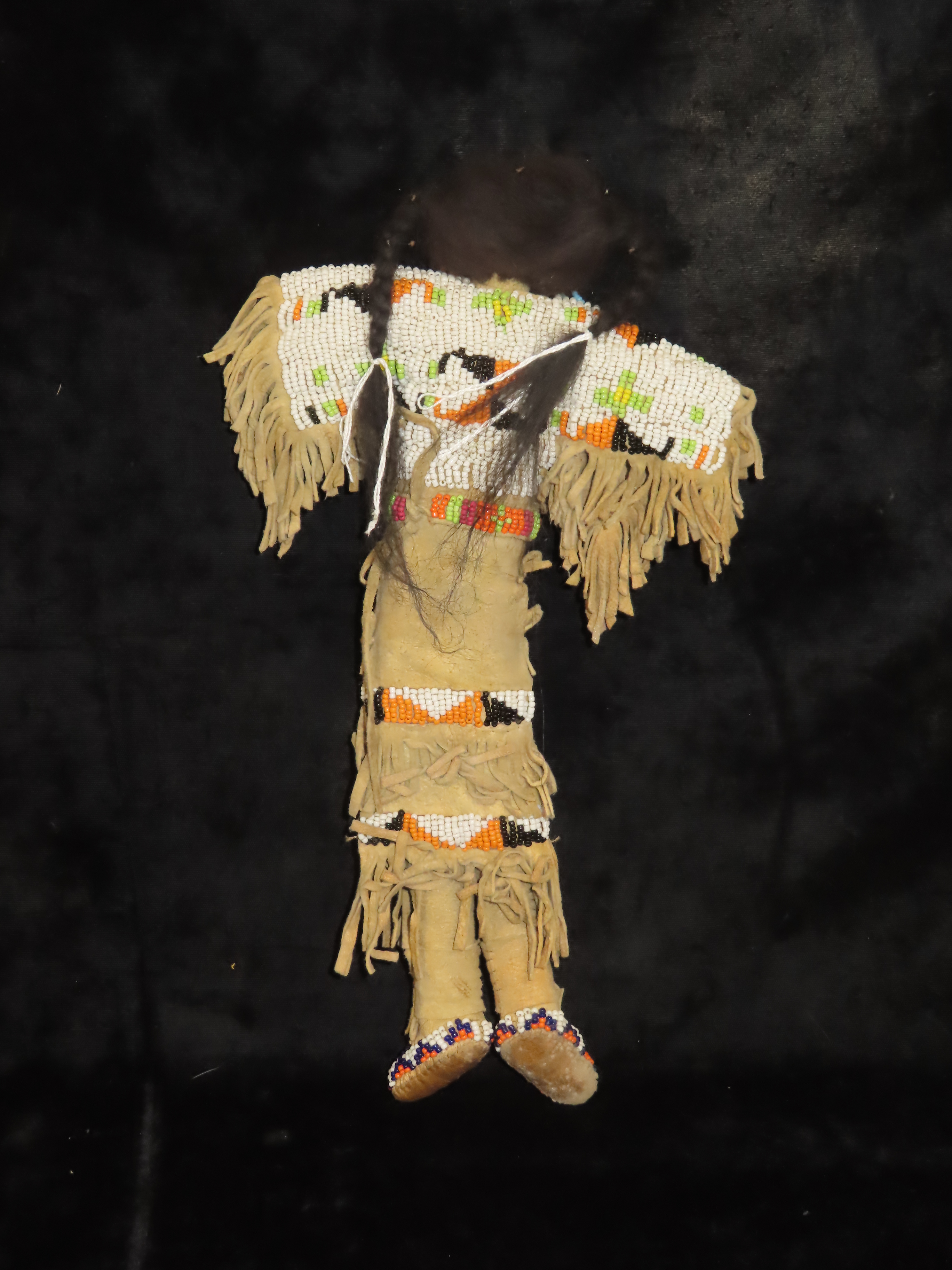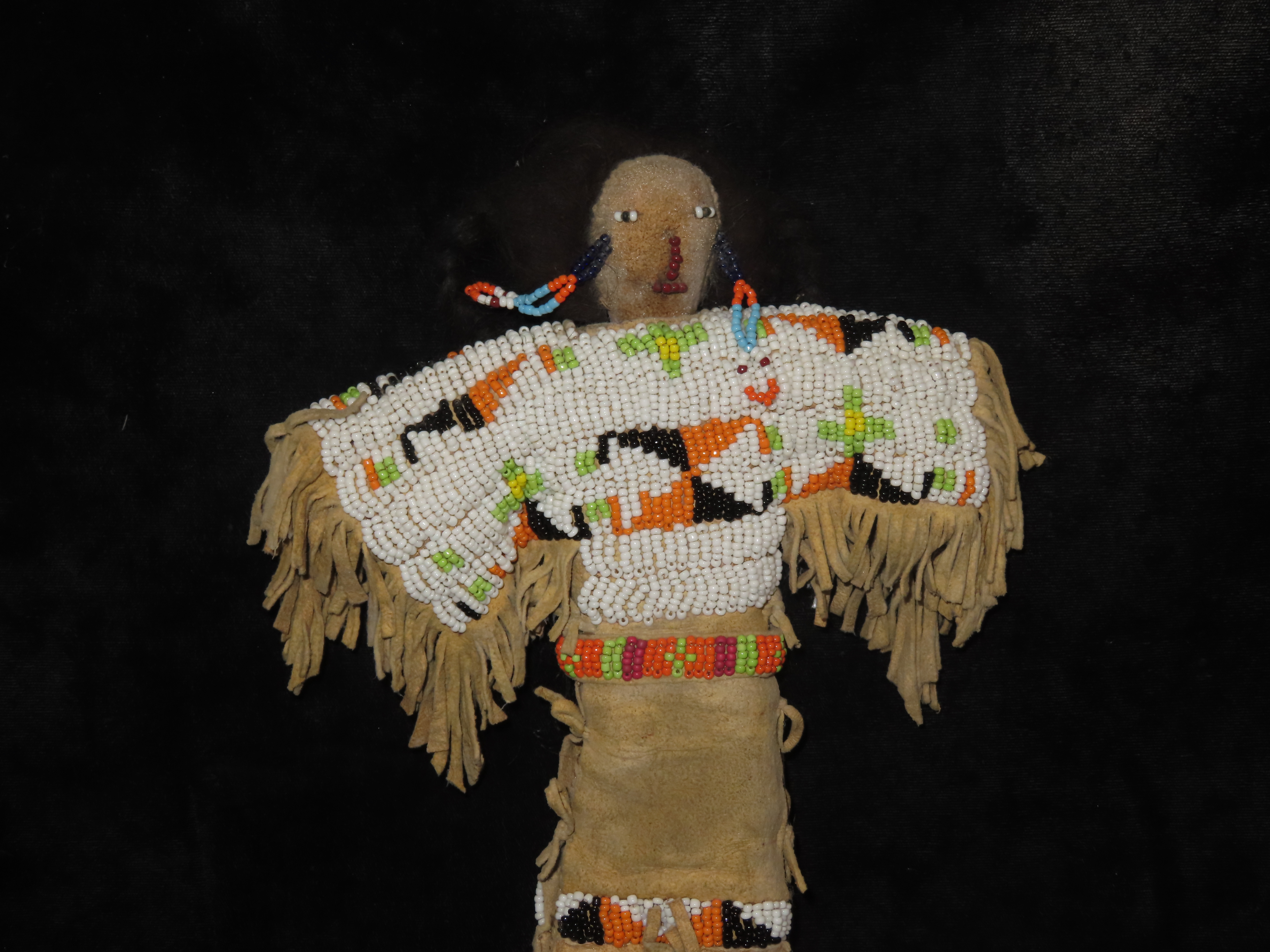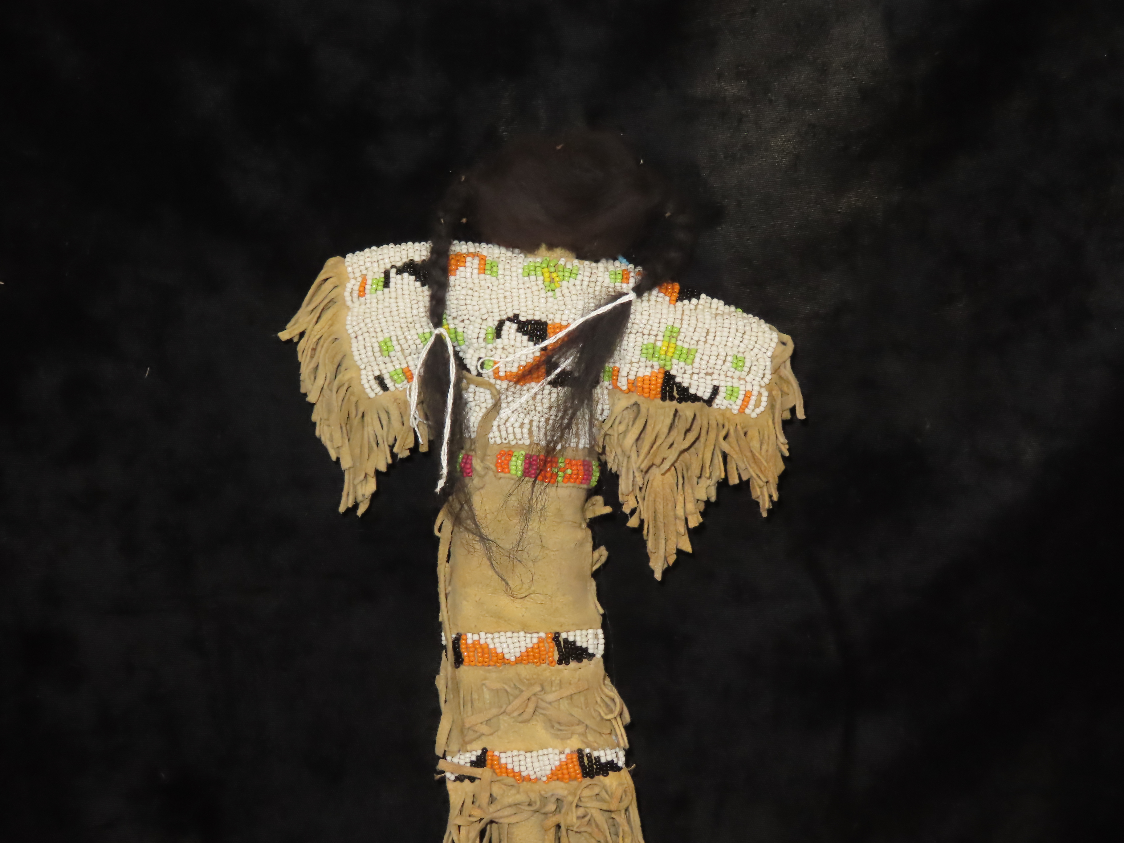 13″ Antique Native American Sioux Indian Beaded Leather Doll c. 1920 or Earlier-hand made, real hair