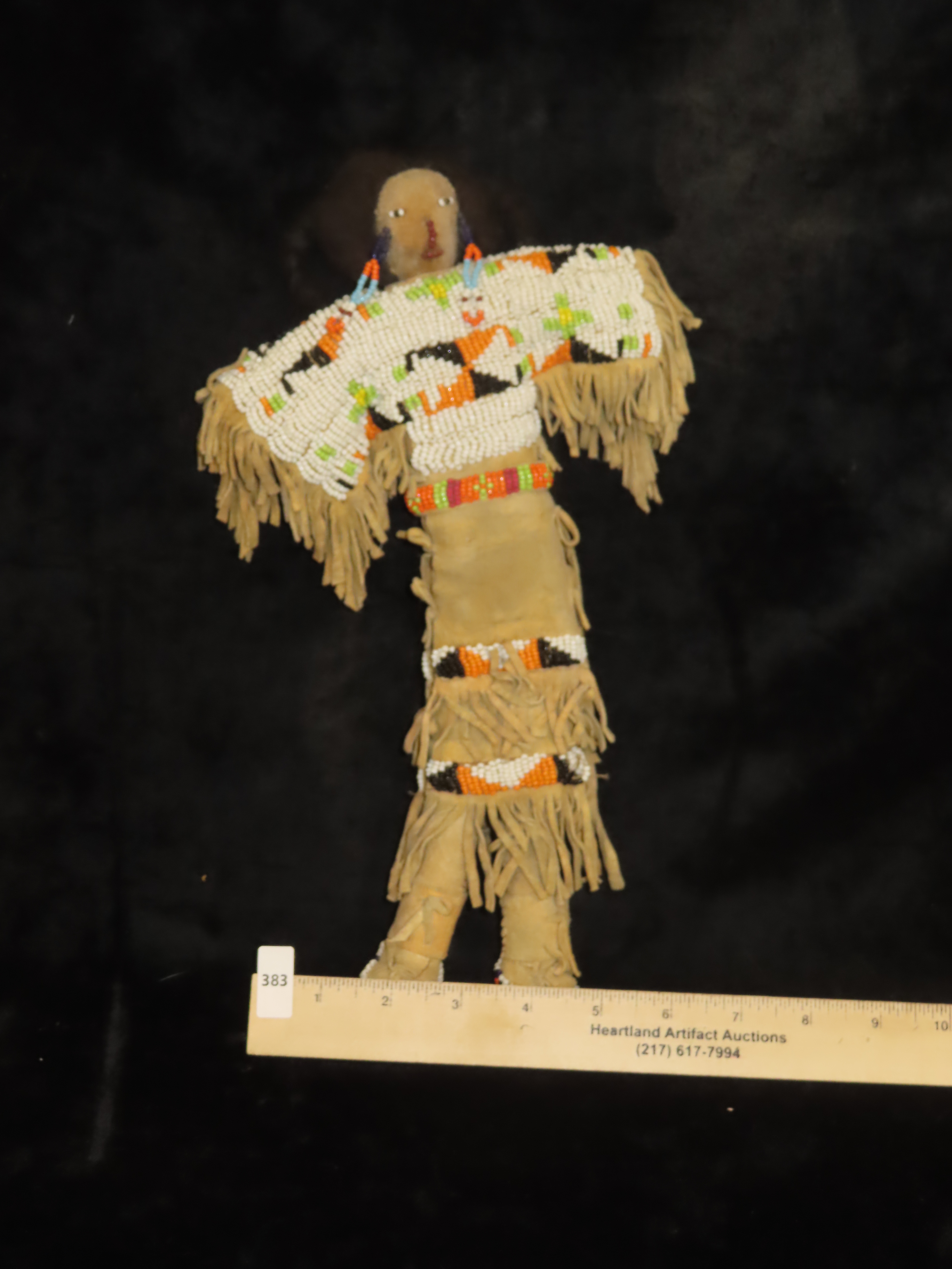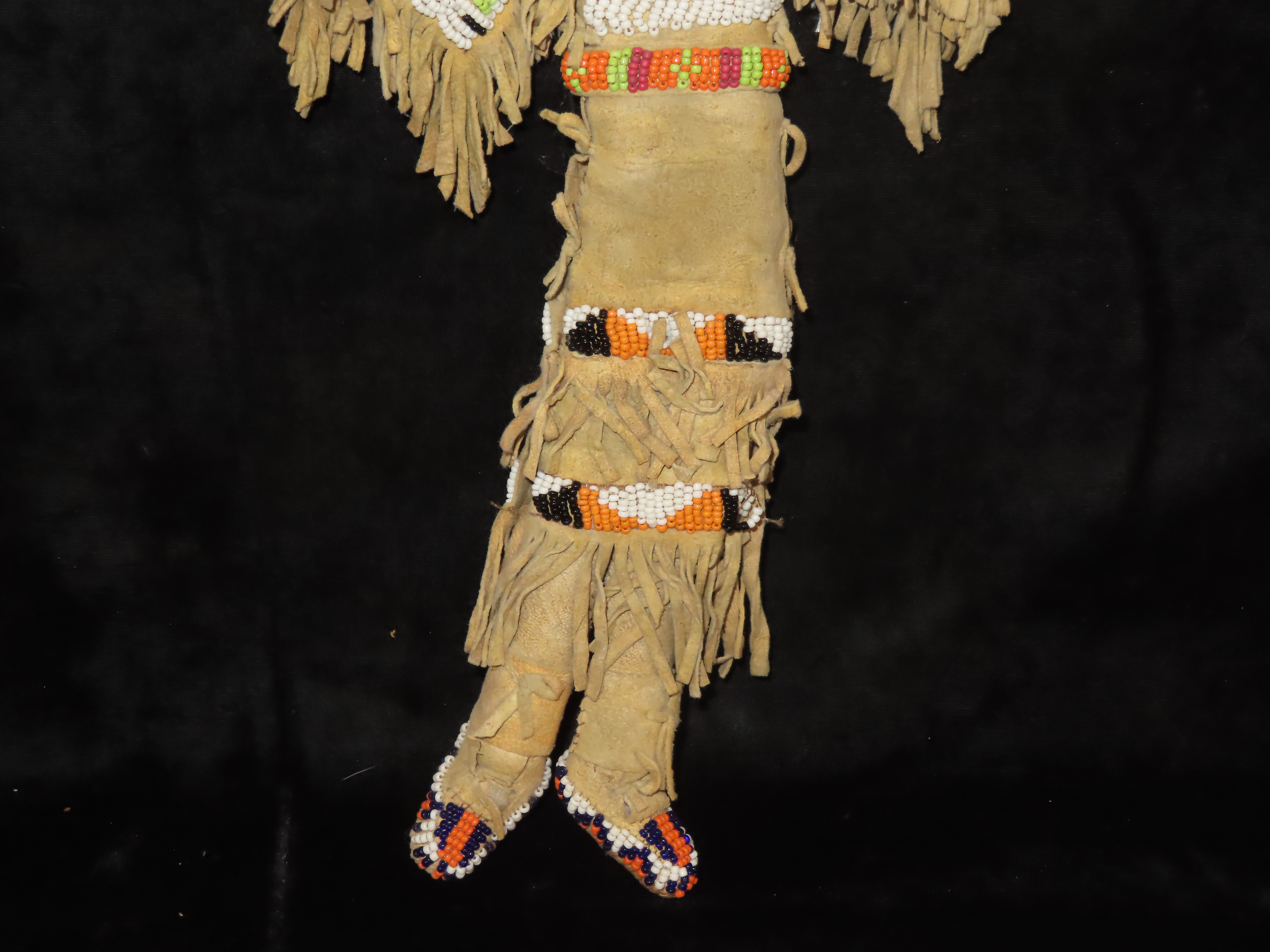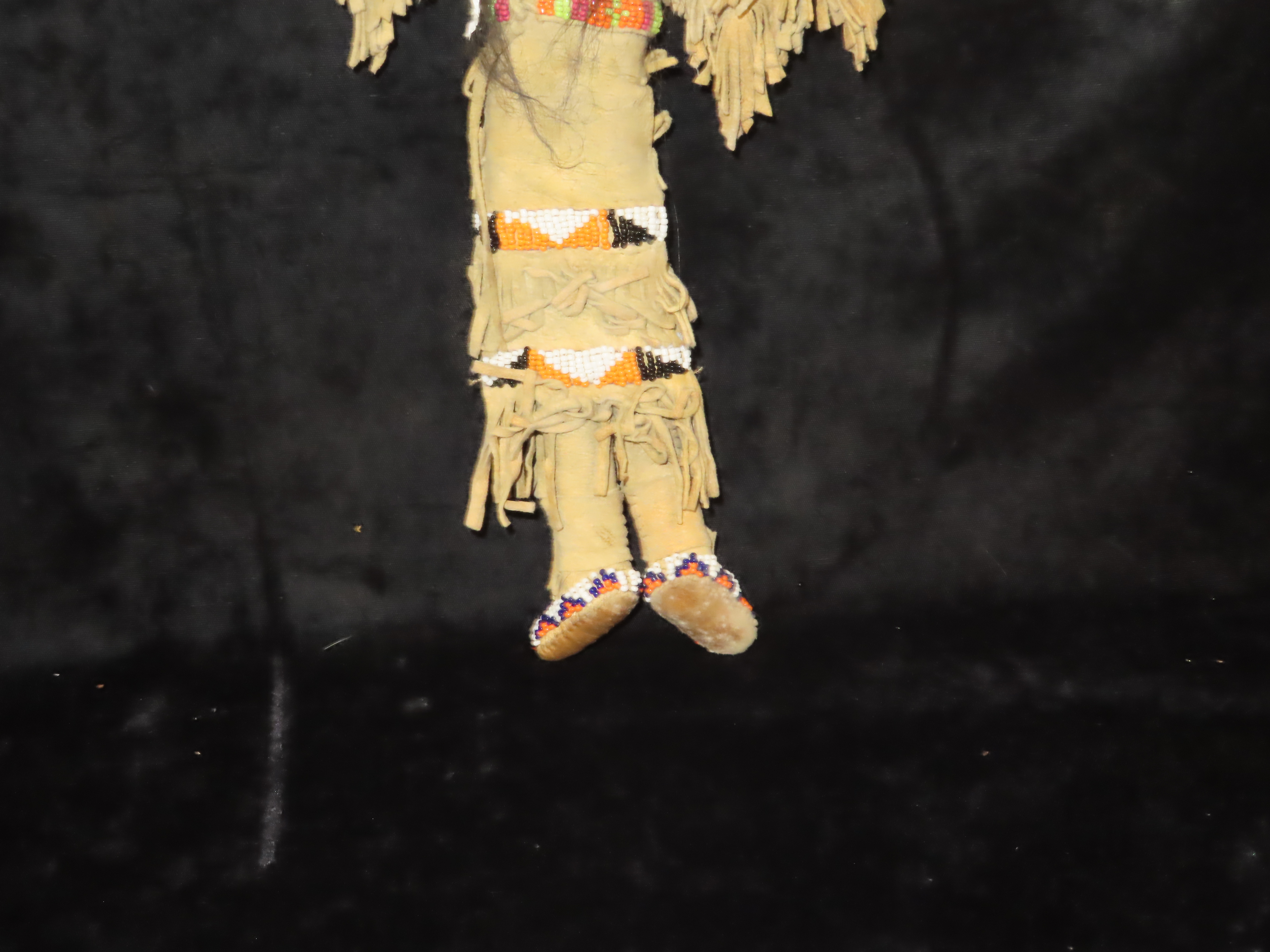 13″ Antique Native American Sioux Indian Beaded Leather Doll c. 1920 or Earlier-hand made, real hair