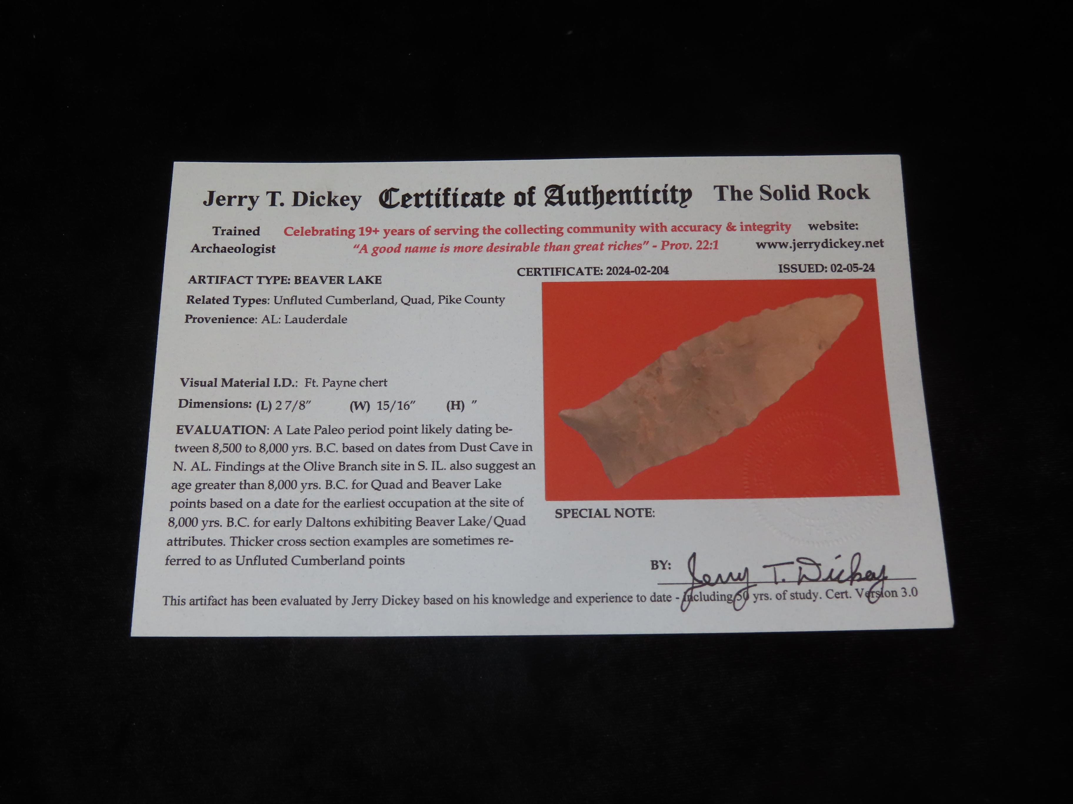 2 7/8″ Beaver Lake, Dickey COA, Alabama, Lauderdale
